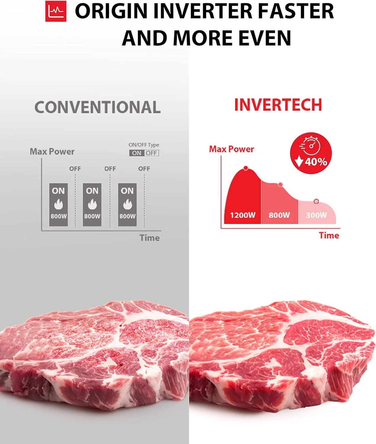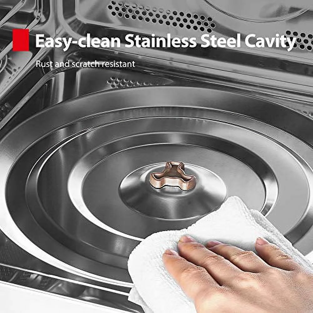 - 【Stylish Appearance with Large Interior, fitting a 12inch Pizza】Stainless Steel exterior (color of door frame is stainless steel, enclosure is black), 20.51 x 17.14 x 12.83 inch (w x d x h); large 1. 2 cubic feet capacity, cavity 13.07 x 15 x 9.5 inch (w x d x h), removable turntable 12.4 inch (diameter)
