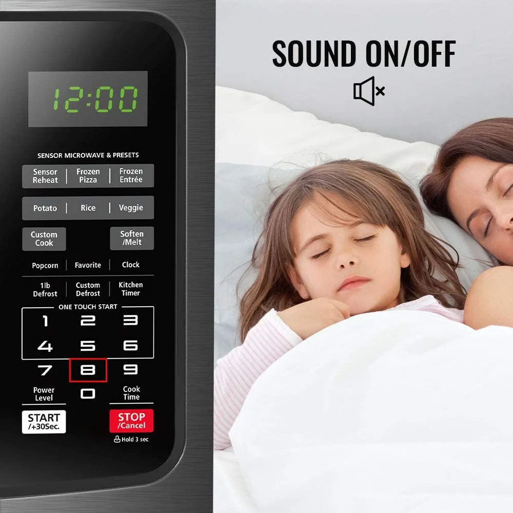 - 【Mute Function】If you wish to mute the buzzer of the microwave, please long press the button "8" for 3-5 seconds. The buzzer is automatically switched off after a long beep.