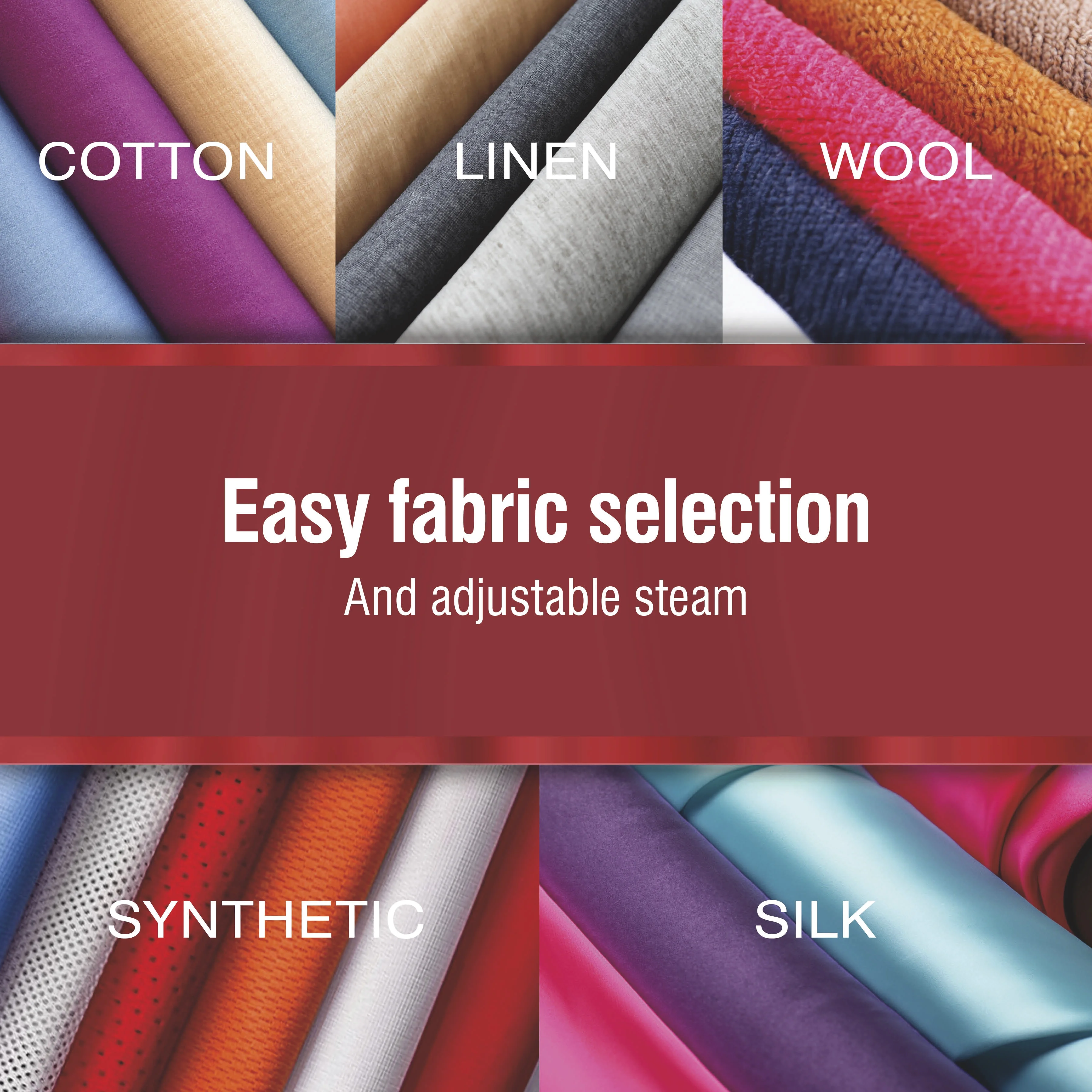 - EASY FABRIC SELECTION AND ADJUSTABLE STEAM: The temperature control dial lets you quickly choose your fabric and sets the temperature accordingly, eliminating guesswork. The adjustable steam lever goes from no steam to full power with just a quick slide.