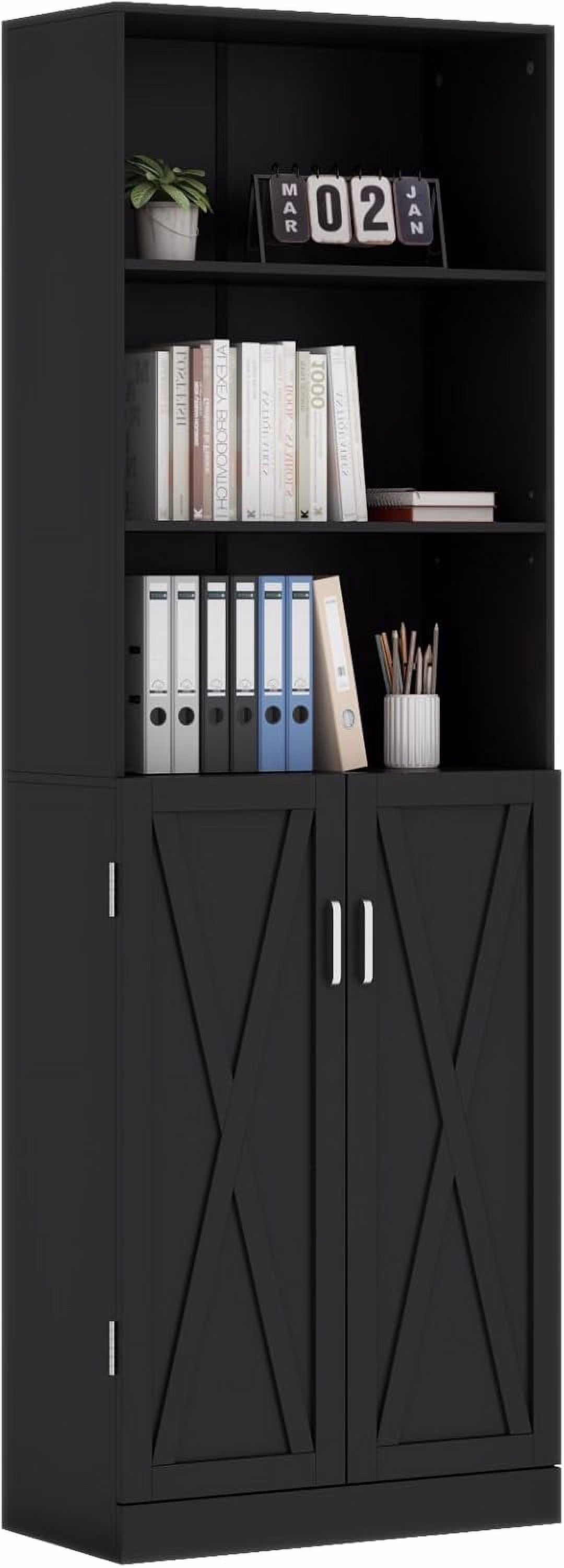 Loomie 6 Tier Black Industrial Farmhouse Boolshelf with Door