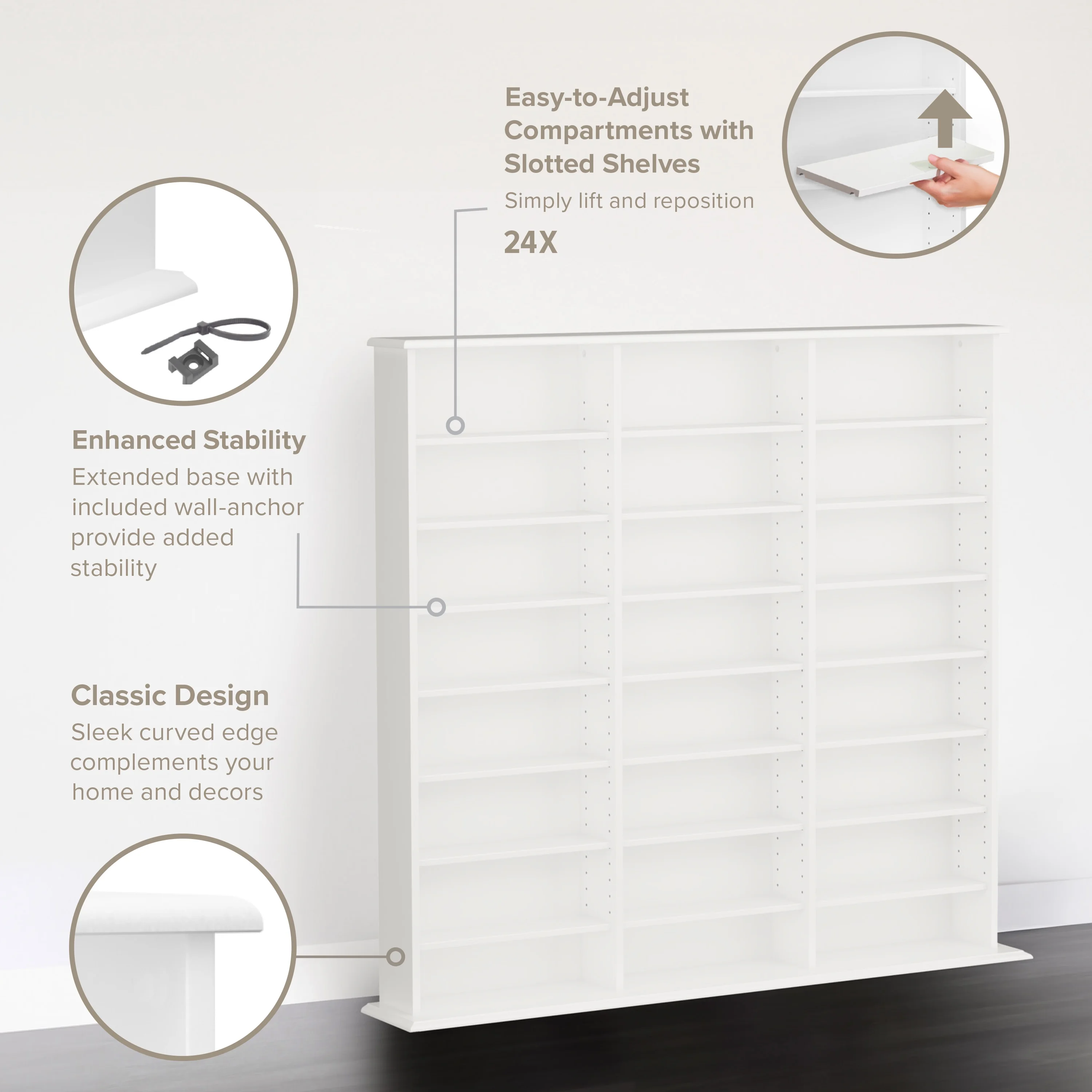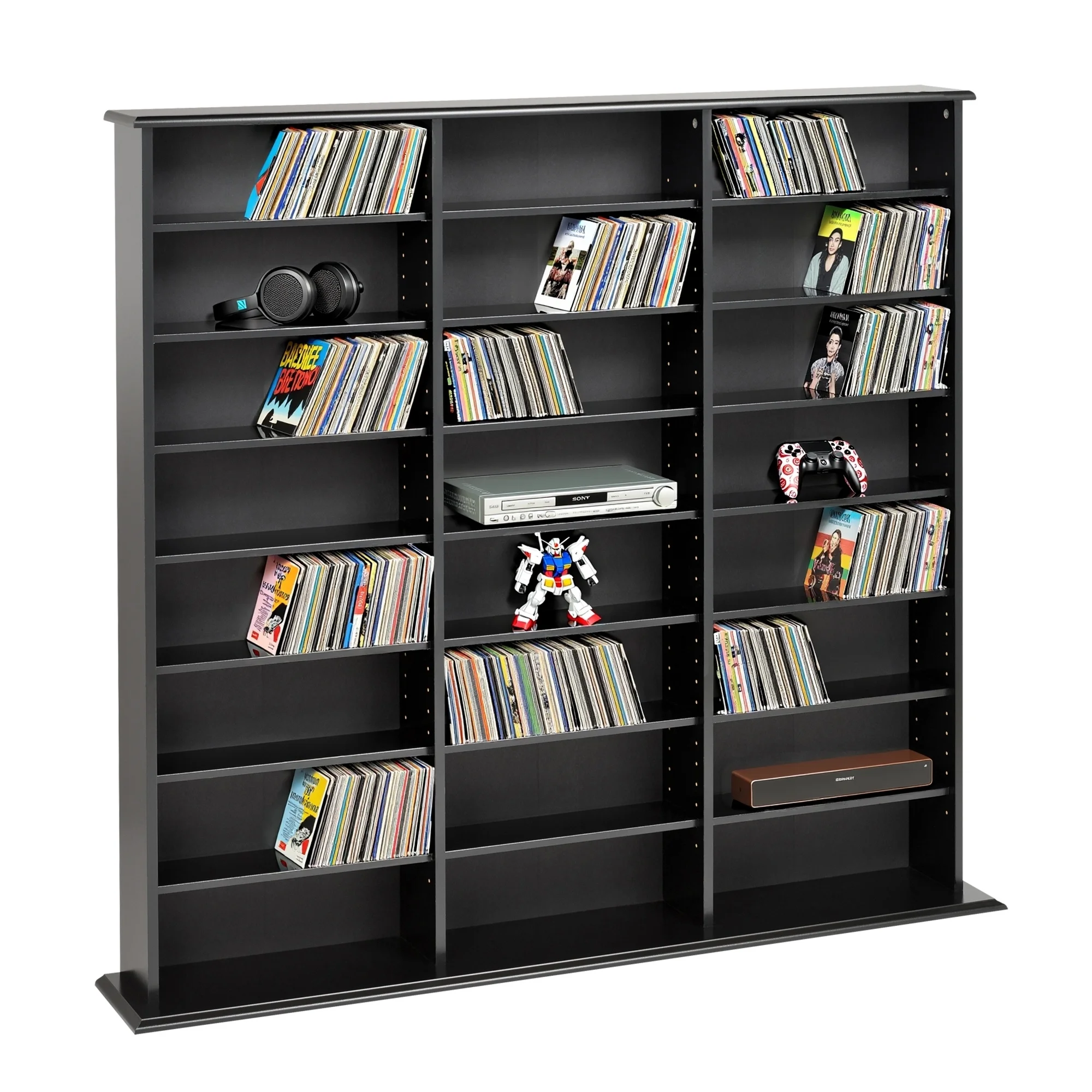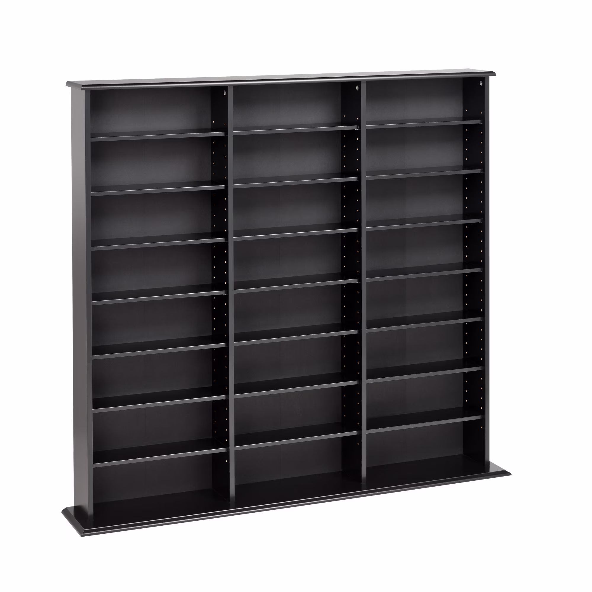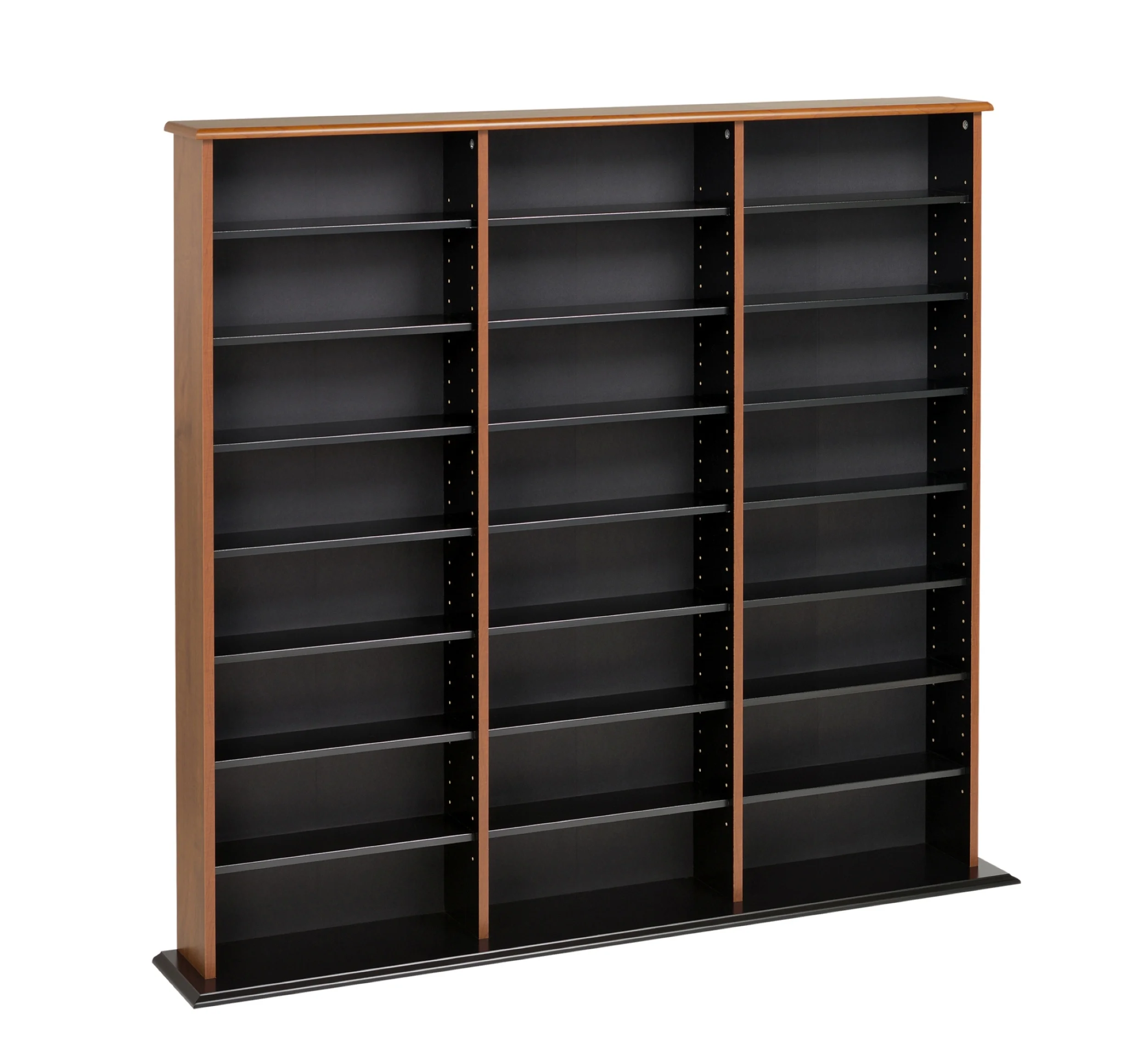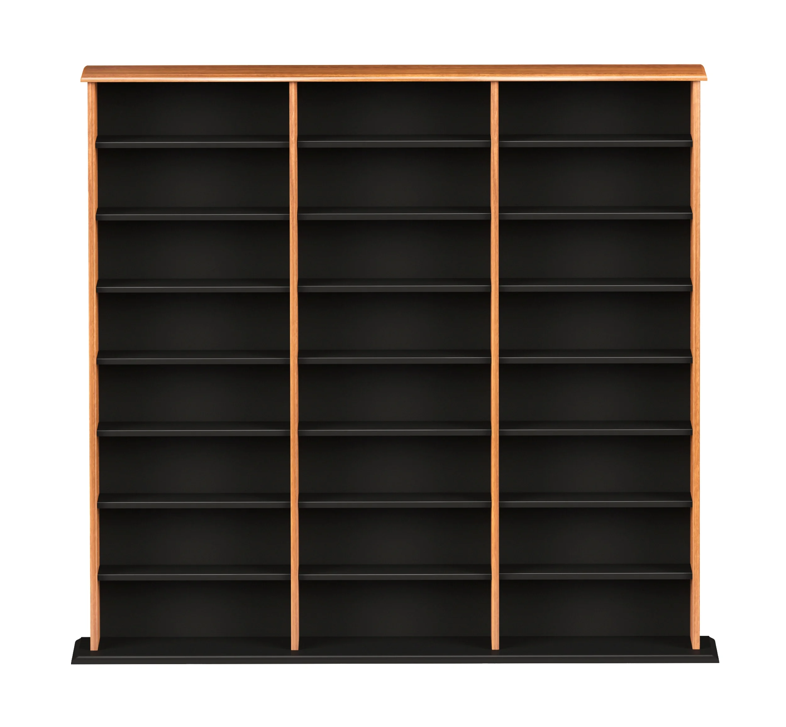 This very popular library style media storage unit with three separate compartments is designed to accommodate any combination of media. Fully adjustable shelves and horizontal media storage allow for easy sorting, filing and re-filing of your collection as it grows.
