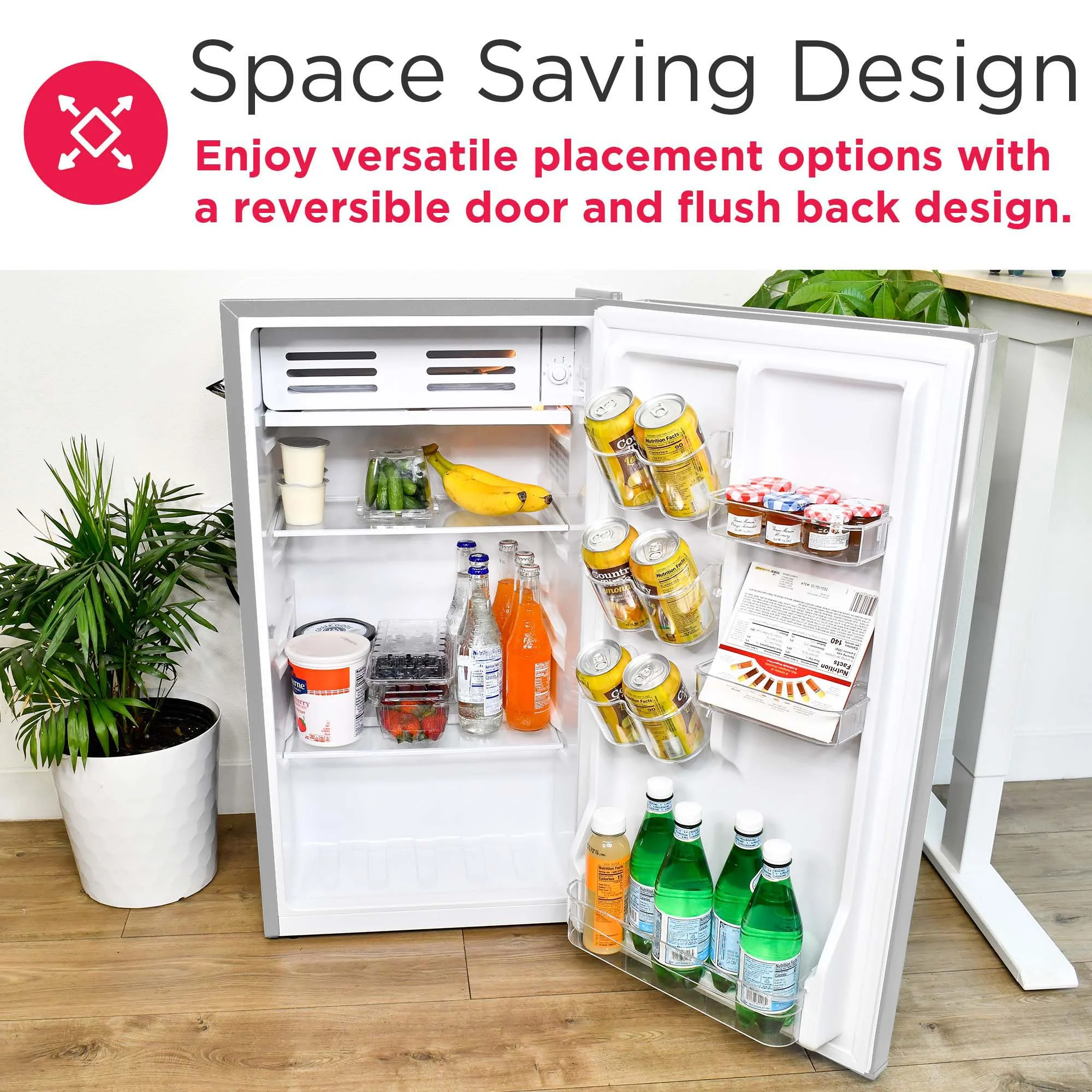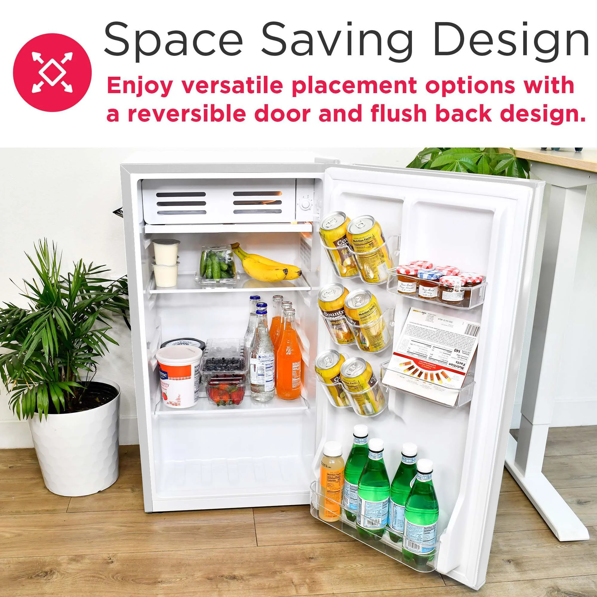 - Spacious Design - Featuring a 3.2 cu. ft. capacity, this compact fridge offers plenty of storage for bottles, cans, snacks, and more. The space-saving flush back design allows for seamless placement against walls, making it perfect for smaller spaces.