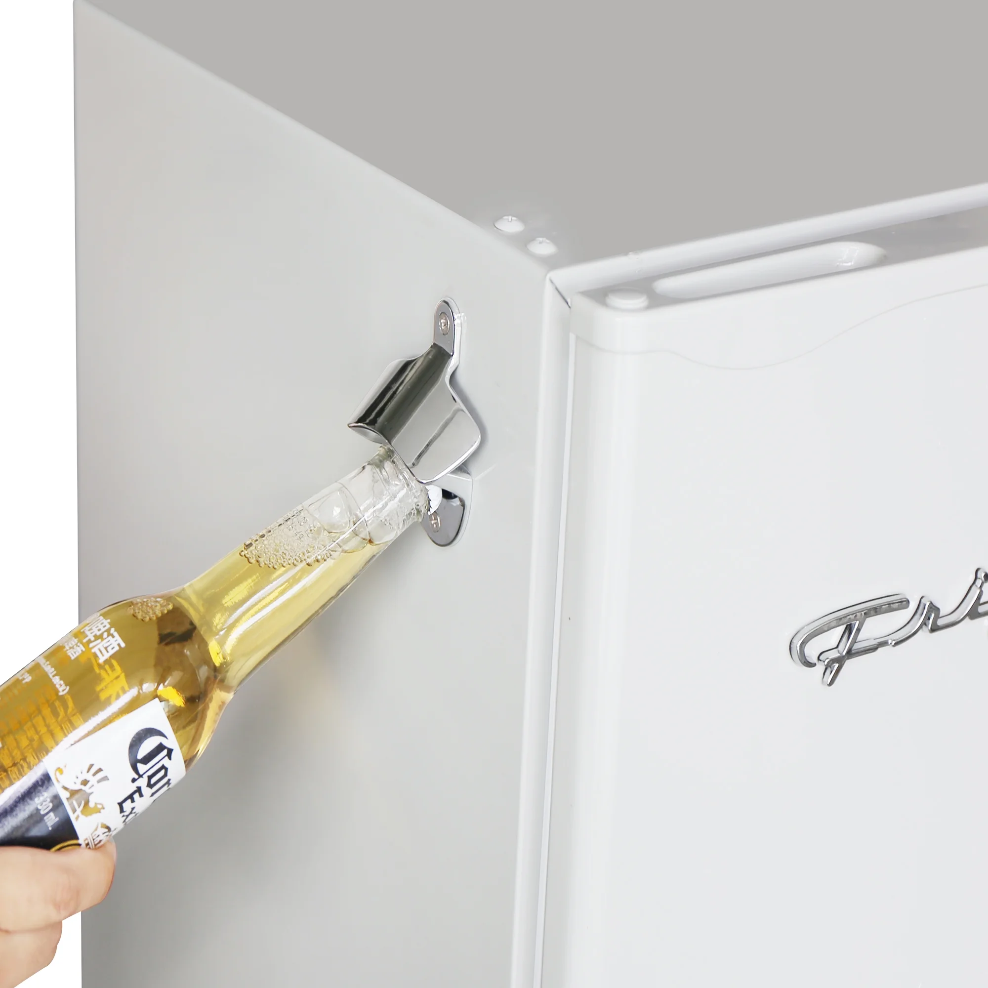 - Practical Style - Perfect for entertaining, this small retro refrigerator comes with a built-in bottle opener on the side for quick and easy access to your favorite beverages. The easy-open pull handle adds to the retro vibe, reminiscent of classic designs from the past.