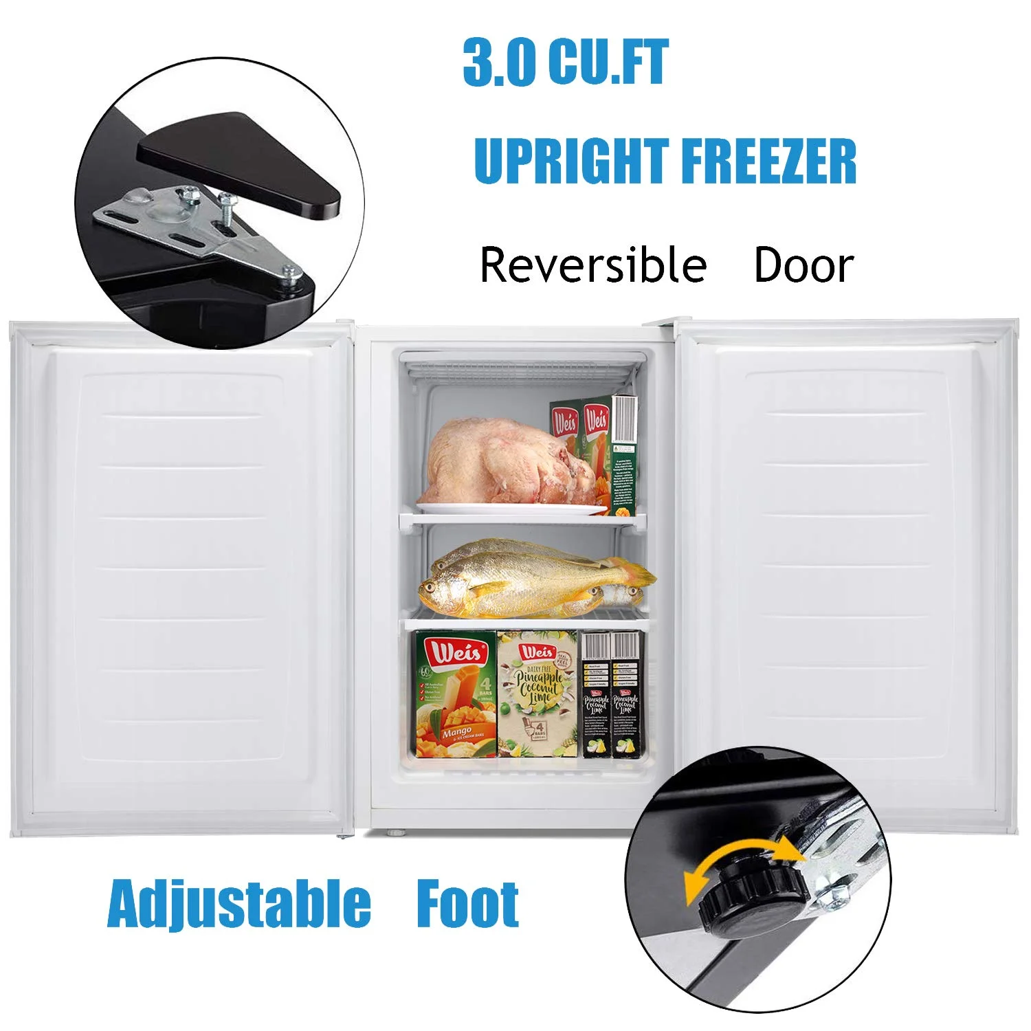 - 【❄️User-Friendly Design�?Reversible Door--The door opening direction can be switched left and right to meet different habits of use, without space constraints. Adjustable Feet - You can adjust the height of the freezer according to the demand, more suitable for your room. Built-in Handle on Top - More aesthetic and ergonomic, no need to bend down to open the door