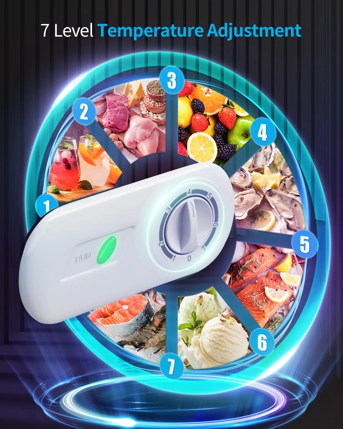 【Temperature adjustable control】Adjustable 7-level temperature control to choose the temperature you want. It can be controlled from - 7.6 ° F to 6.8 ° F (- 14 ° C to - 22 ° C). The higher the water level, the lower the temperature.