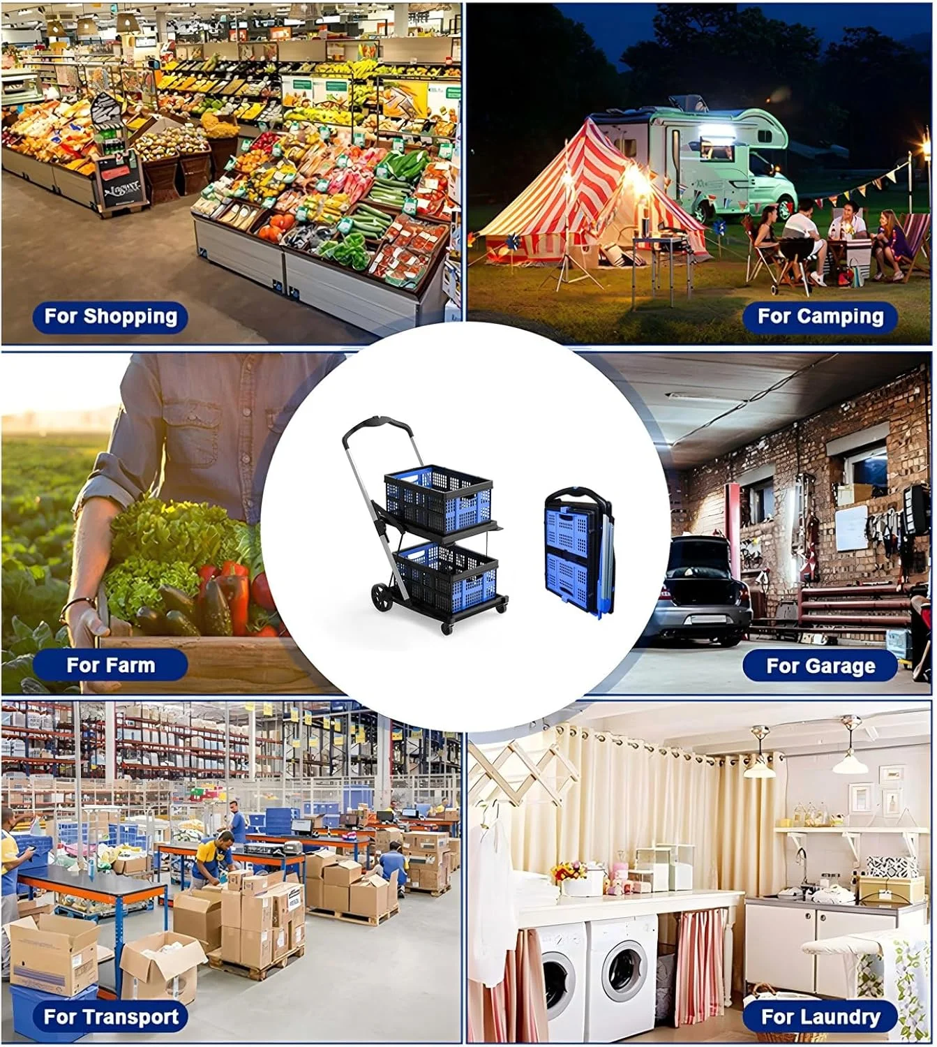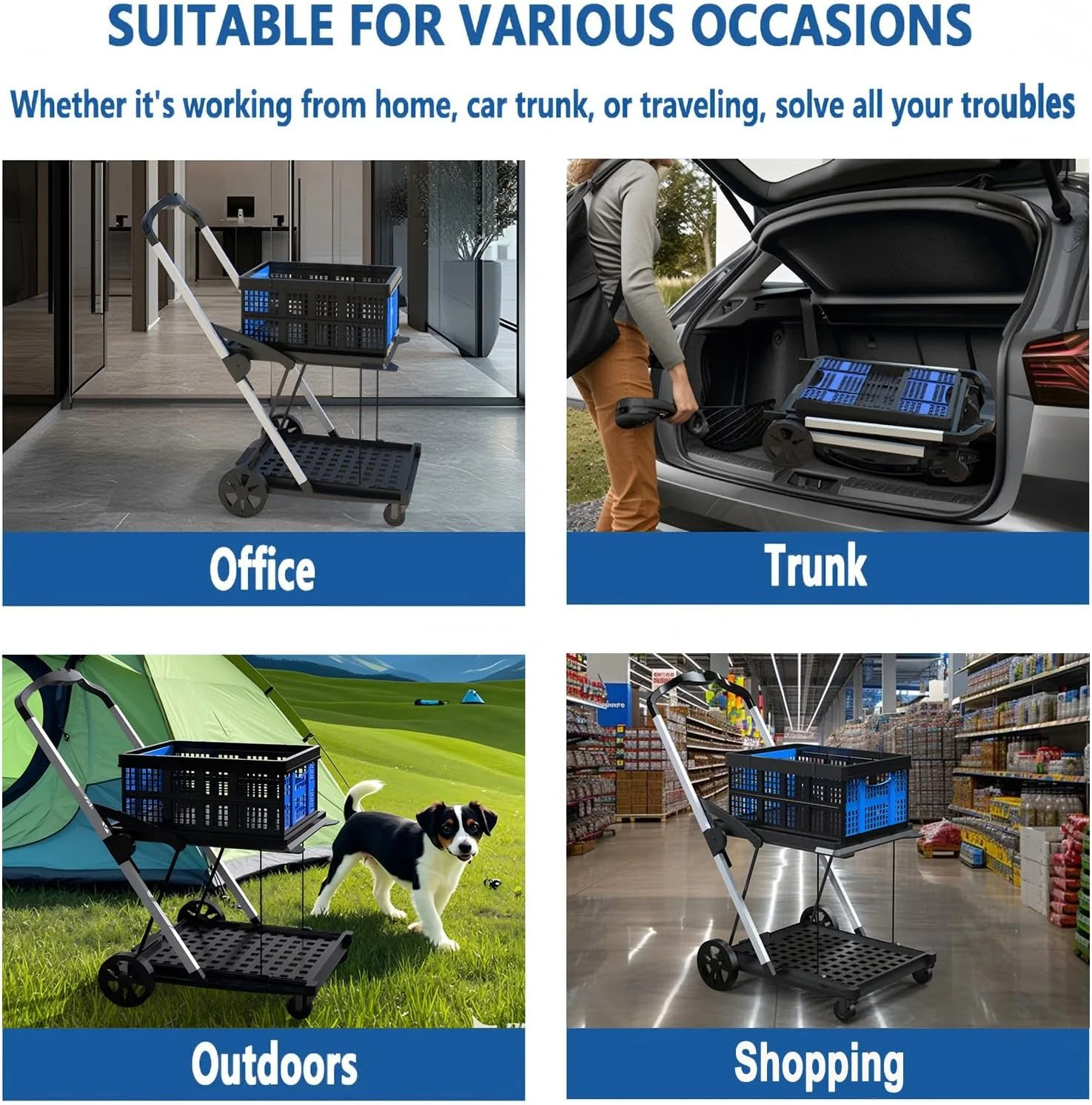 - DURABLE CONSTRUCTION: This foldable shopping cart with wheels is made of high-quality metal and PP material, which is both lightweight and sturdy, and has waterproof performance. Aluminum support rods provide additional stability to ensure long-term use
