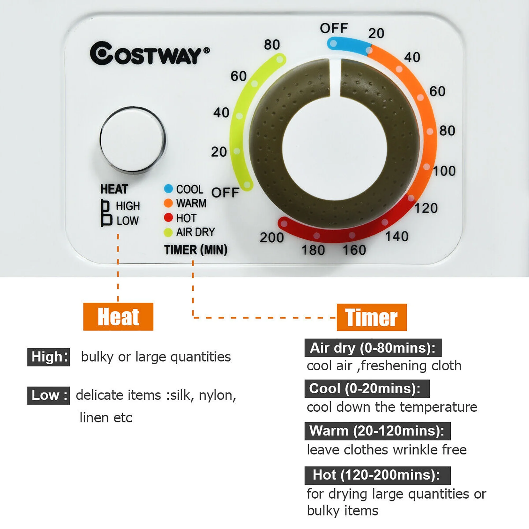 - Warm(30-120mins):dry and cool cloth ,Anti-wrinkle