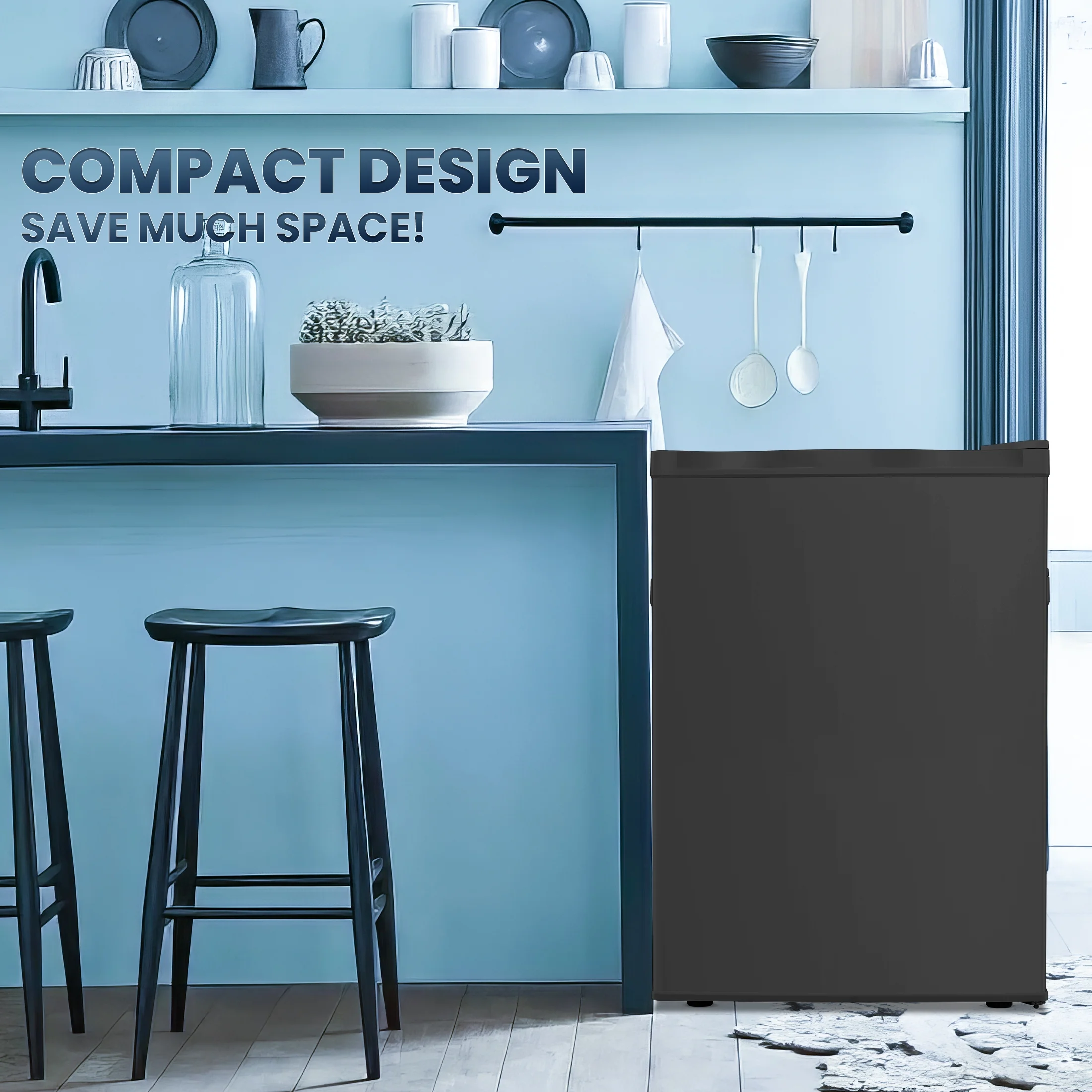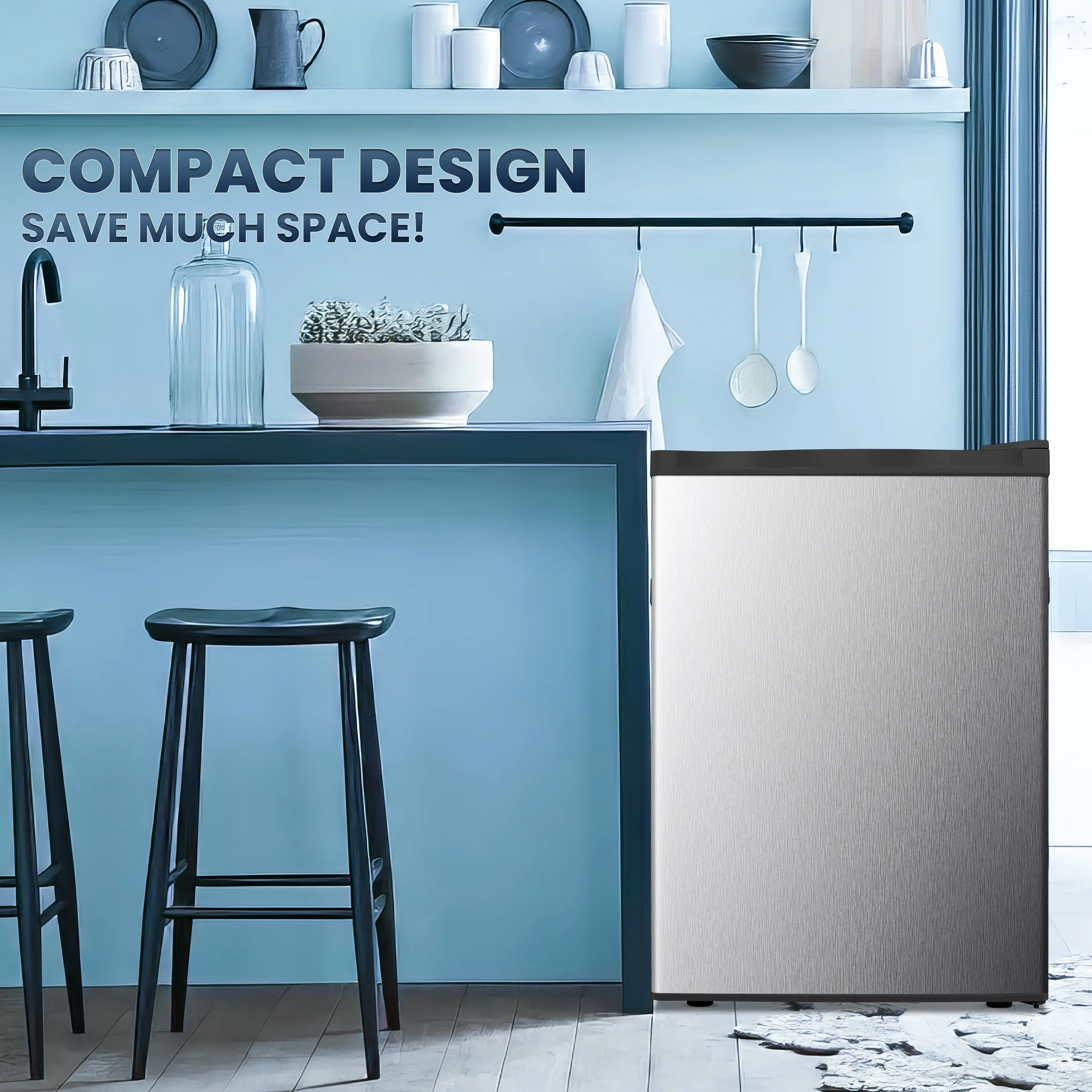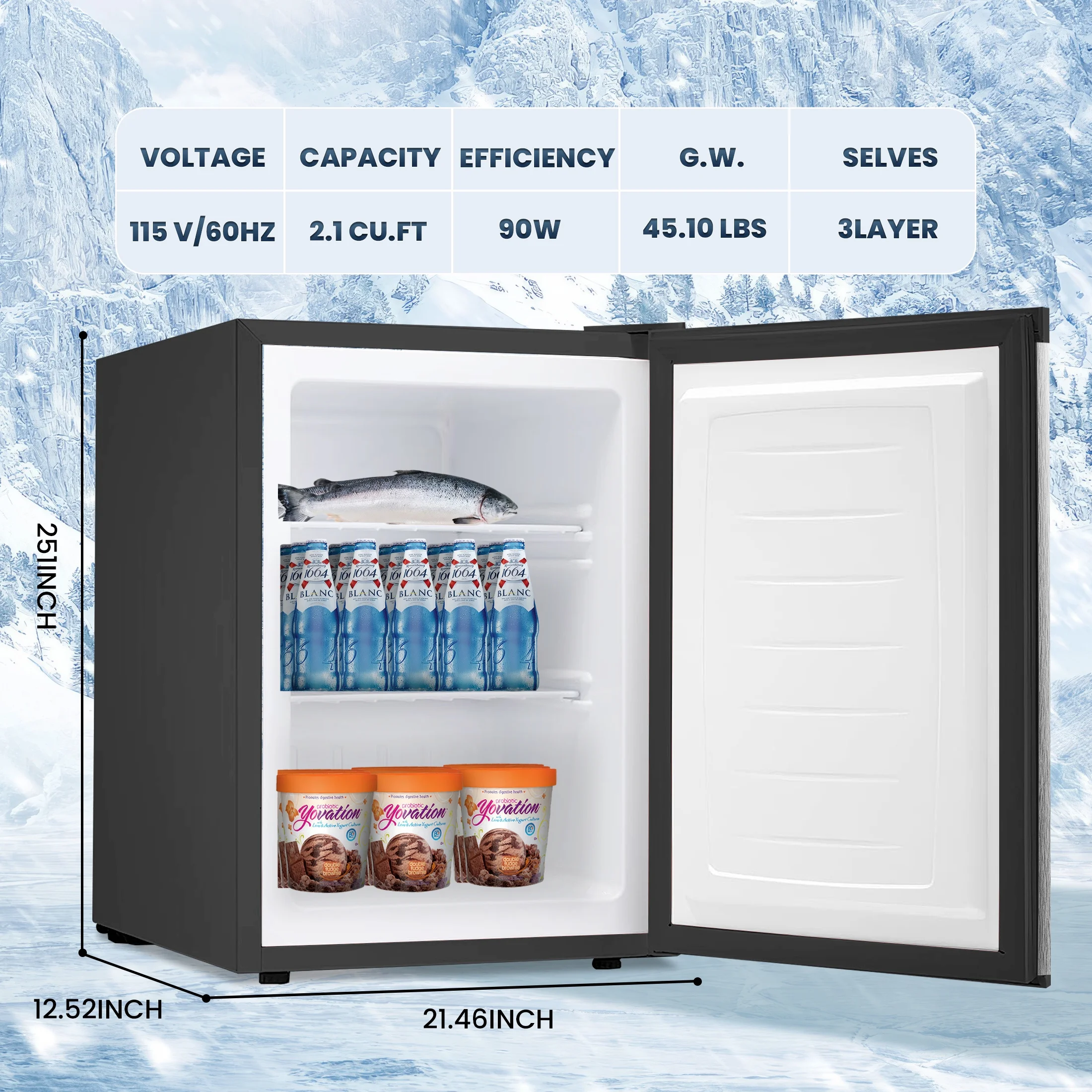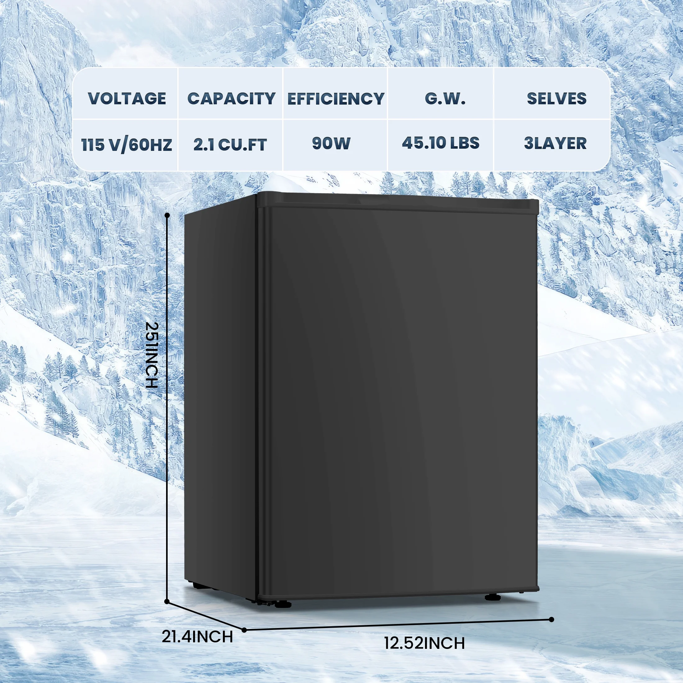 - ??Compact & Elegant Design��The Upright Freezer mini upright With 2 removable shelves and 2.1 cubic feet of capacity, the built-in three floors allow kitchen space, allowing you to keep all your frozen food nearby. Size: 17.5 L x 21.5 W x 25 H inches.