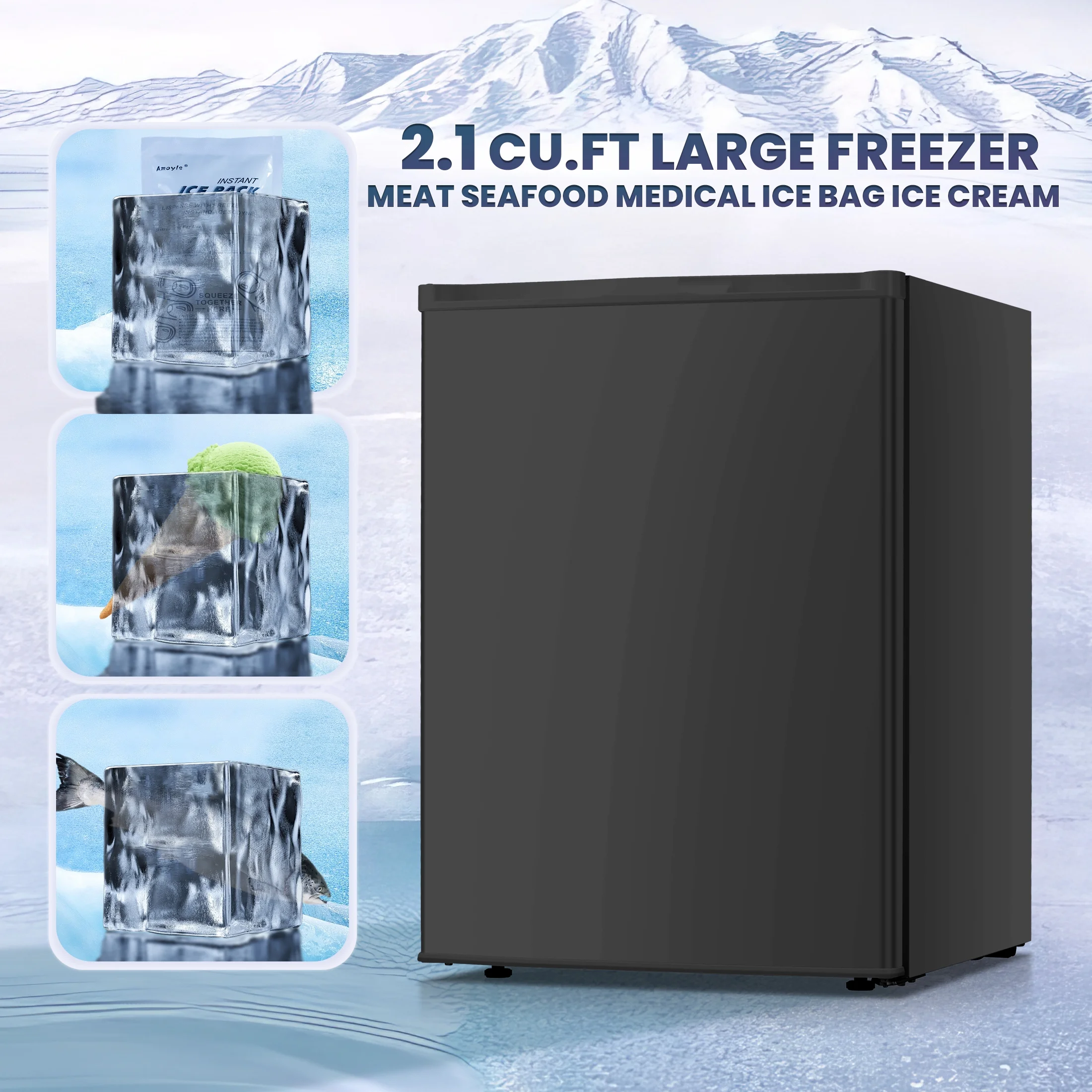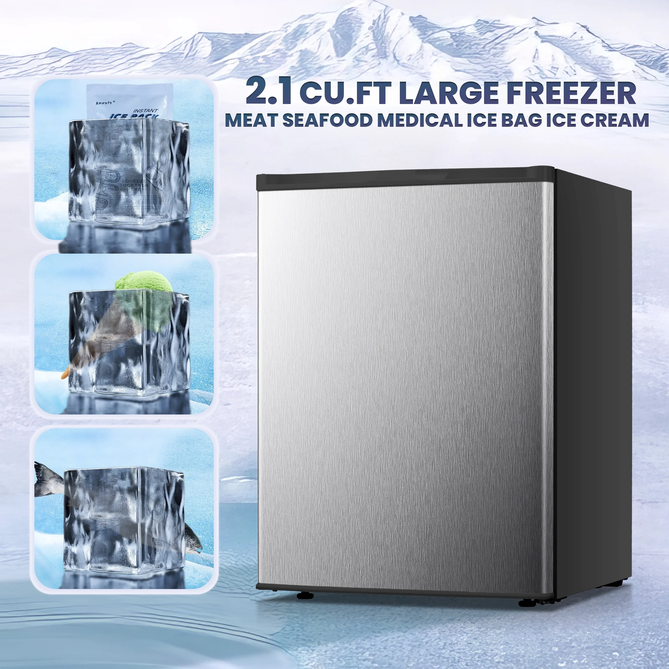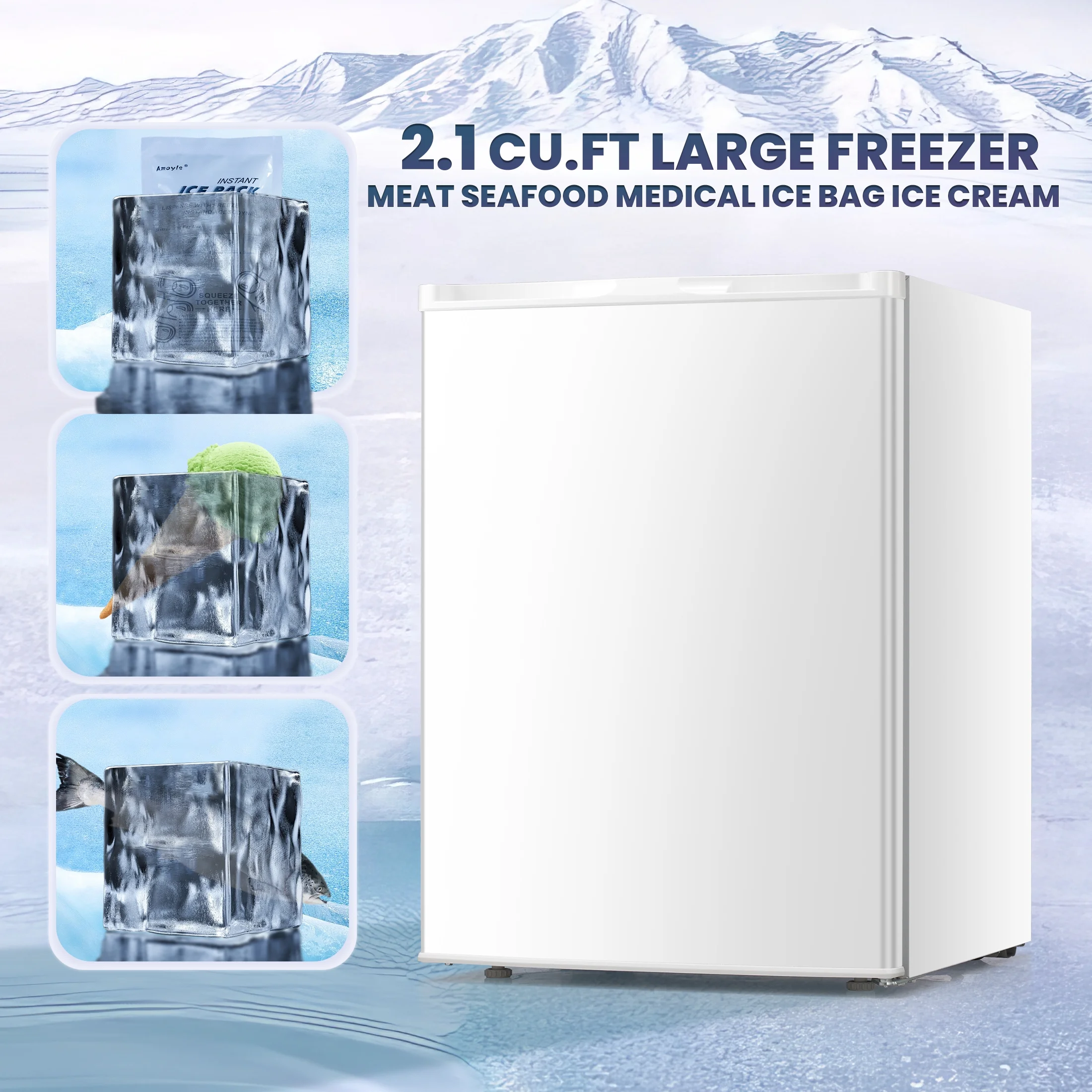 - ??Multi-Purpose and Mini Upright Freezer: freezes fruit and candy quickly to make fruit ice creams that are healthy and tasty.You can also quickly freeze the mask, 1 minutes later take out the mask ice compress, in the hot day for the skin "cooling repair", can also be used to store ice cone, ice, chocolate, etc.