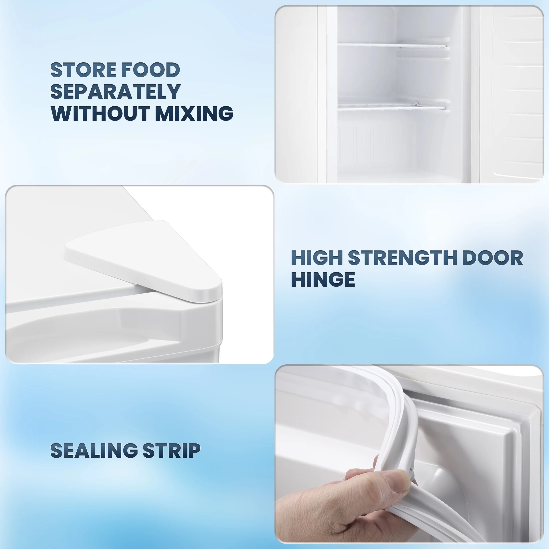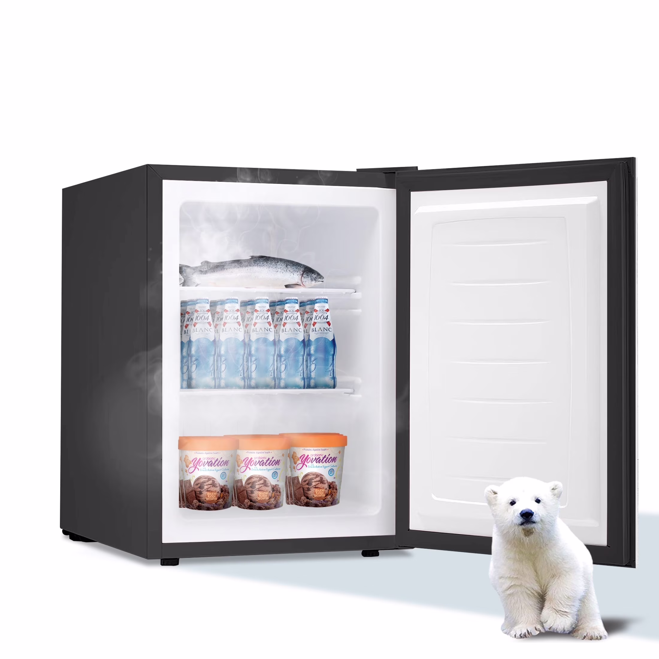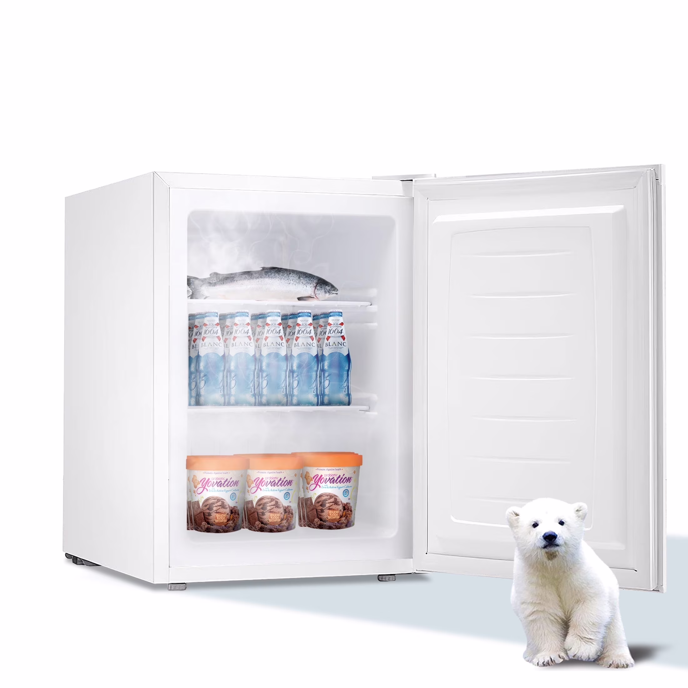 - ??Multi-Purpose and Mini Upright Freezer: freezes fruit and candy quickly to make fruit ice creams that are healthy and tasty.You can also quickly freeze the mask, 1 minutes later take out the mask ice compress, in the hot day for the skin "cooling repair", can also be used to store ice cone, ice, chocolate, etc.