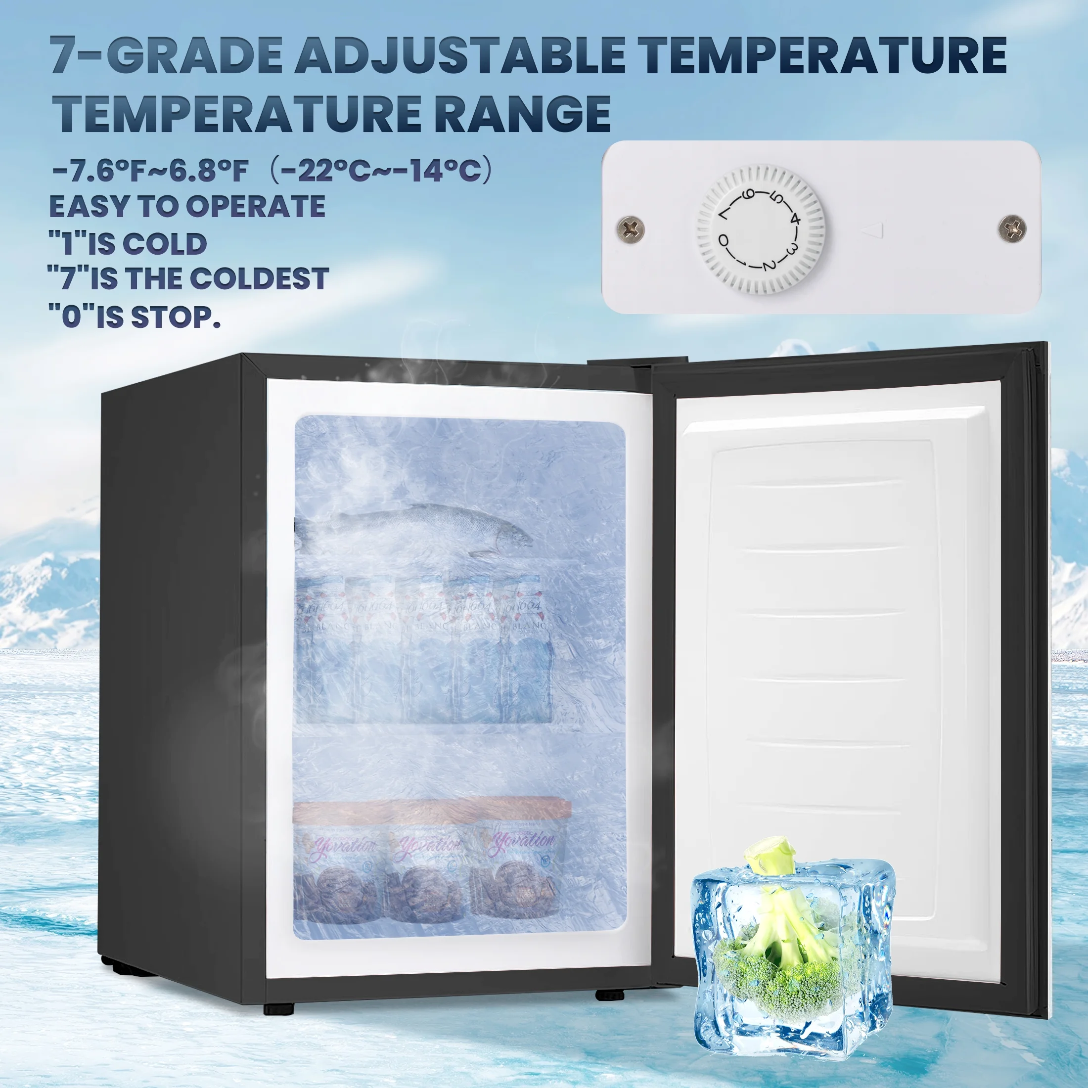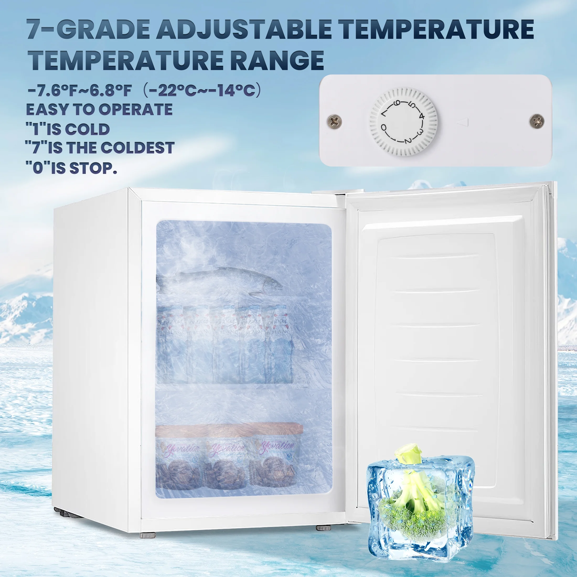 - ??Temperature Control�� Adjustable 7-grade temperature control on the back of Freezer to select your desired temperature.��1�� being the warmest and ��7�� being the coldest. Initially set the temperature on ��4��. Temperature can be controlled from -7.6�H to 6.8�H��- 14�� to - 22�棩