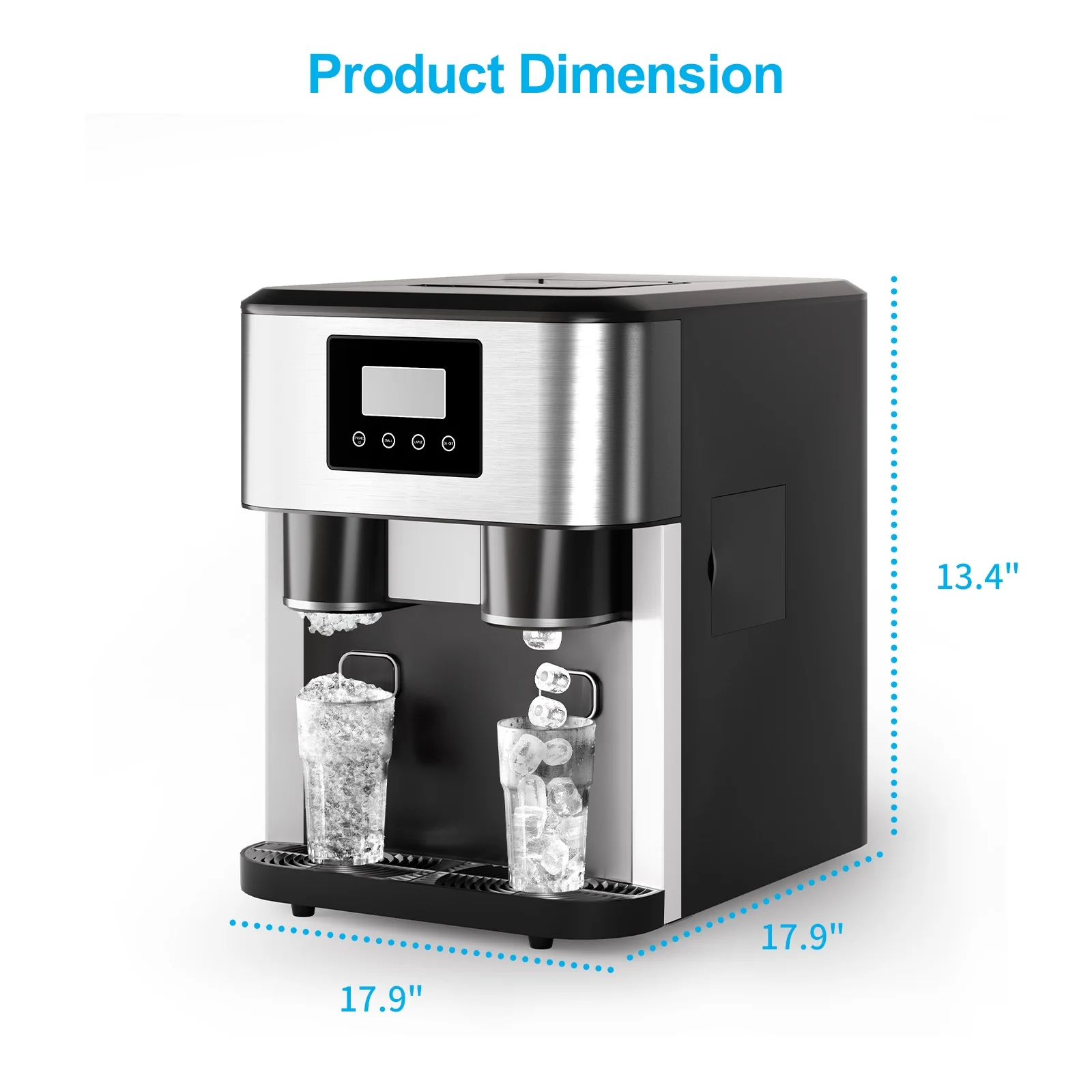 ��3-in-1 Ice Maker and Water Dispenser��TABU 3 in 1 ice maker and water dispenser has two temperature settings for cold water and ice making. This unit can be used as a water dispenser as well as an ice maker. This ice maker also has an ice crushing function to meet your unused needs while saving costs and interior space.