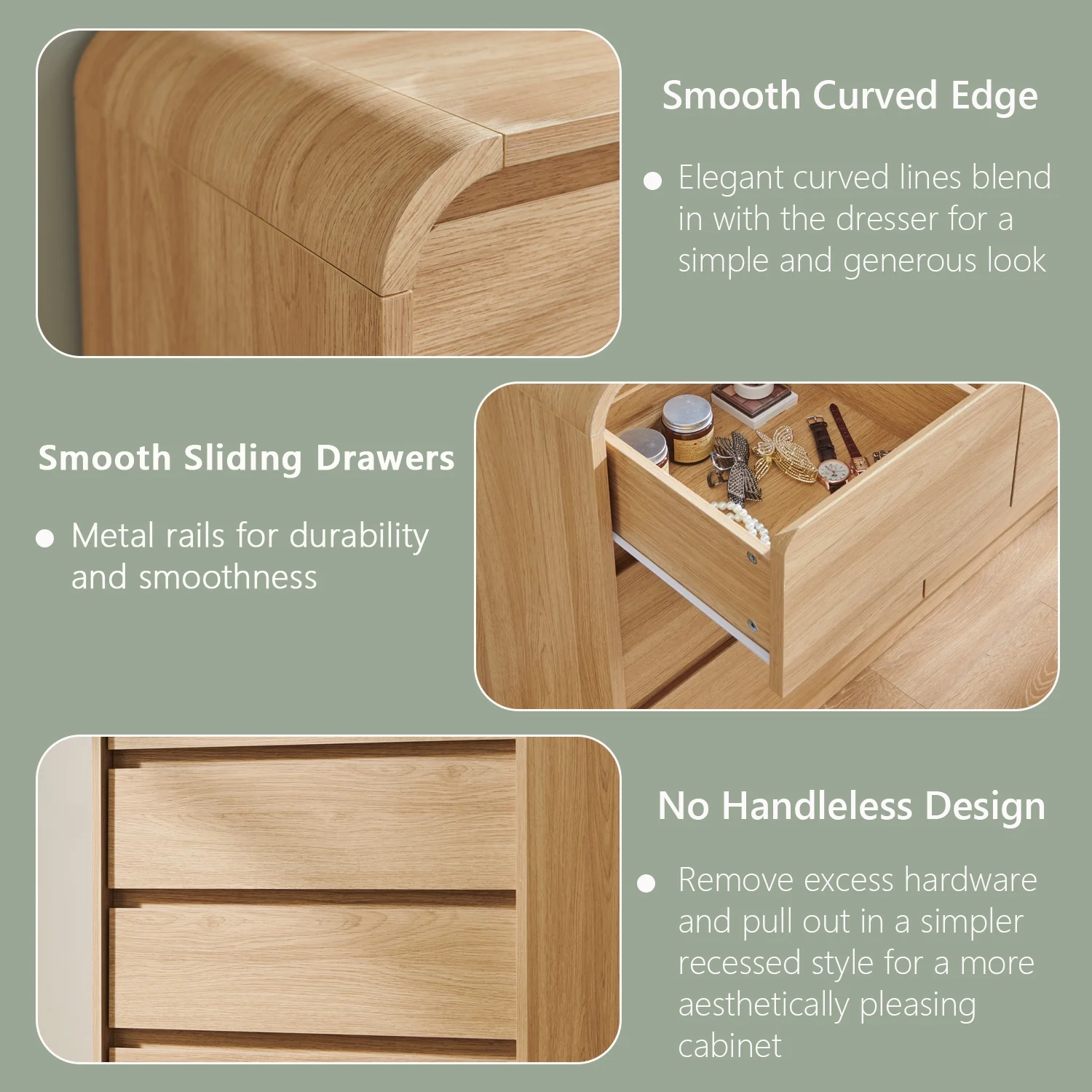 The dresser's modern curved design is not just visually appealing but also functional. The smooth, rounded corners and the sleek, handle-less drawers contribute to a minimalist aesthetic that is both contemporary and timeless. This design enhances the overall look of your space, providing a warm and inviting atmosphere.