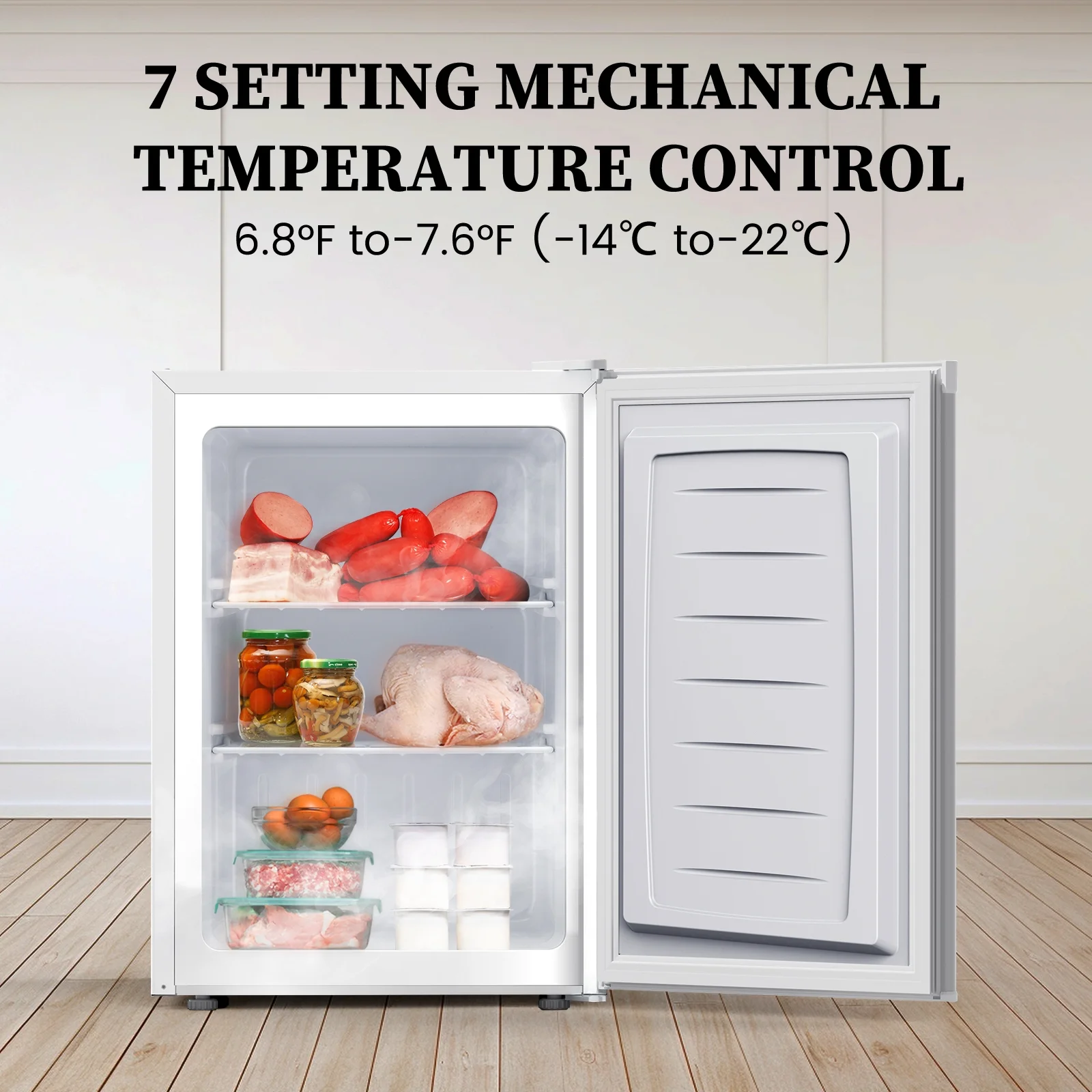 - ��7-Speed Thermostat Design��:Built-in temperature control knob, you can easily adjust the desired temperature level. "1" means the hottest, "7" means the coldest, the temperature adjustment range is -7.6�H to 6.8�H.One-piece design, upgraded sealing strip as well as thermal insulation, which can effectively reduce the generation of frost and easy to clean - Knob on the back of the freezer
