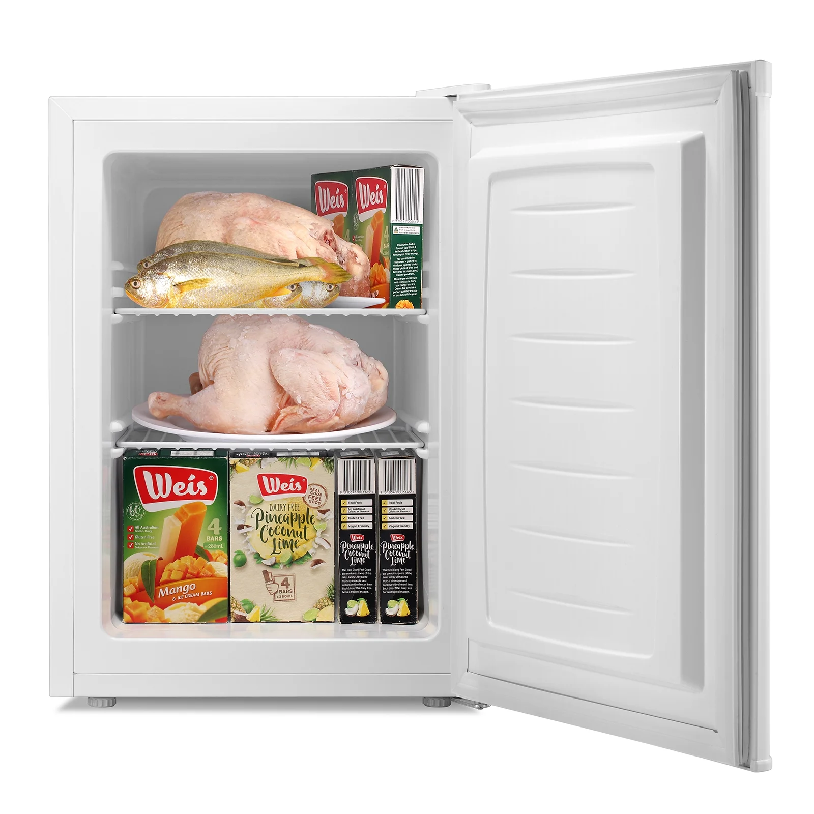 - ��Large Capacity for Protection��:Compact design, 2.6Cu.ft large internal capacity, including two removable shelves, flexible storage space can reasonably include a variety of food. Suitable for meat, seafood, ice cream, breast milk, and other quick-frozen products. Just this small freezer can satisfy the whole family's freshness needs! Measures: 17.52��(W)*21.46��(D)*25��(H)