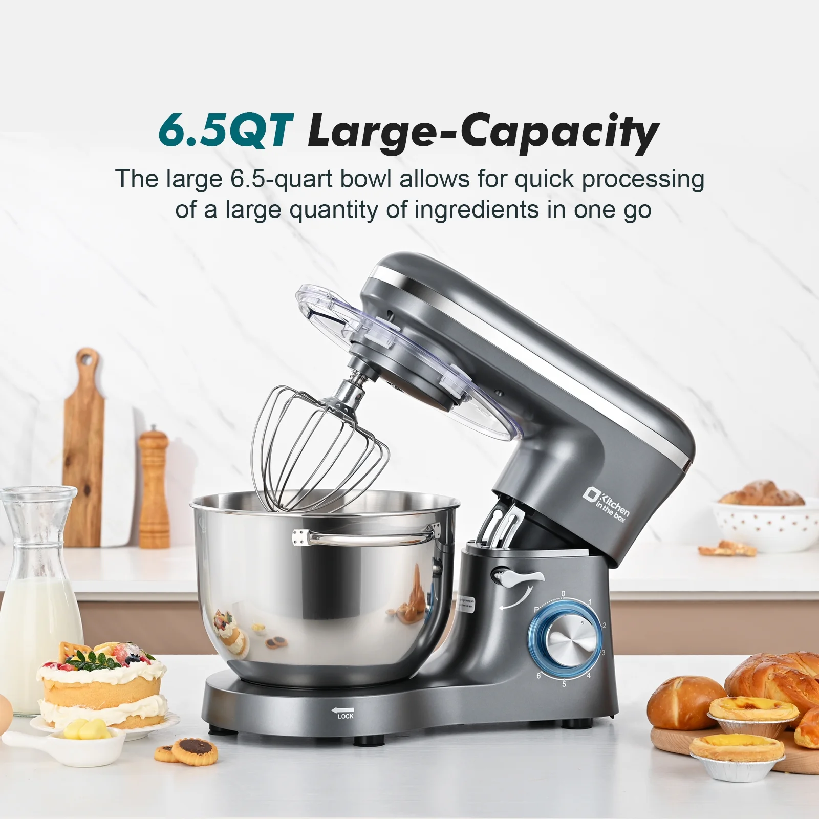Kitchen in the Box Tilt - Head Stand Mixer, Electric Kitchen Mixer with 6.5QT Stainless Steel Bowl, 660W Food Mixer with 6 - Speed, Black