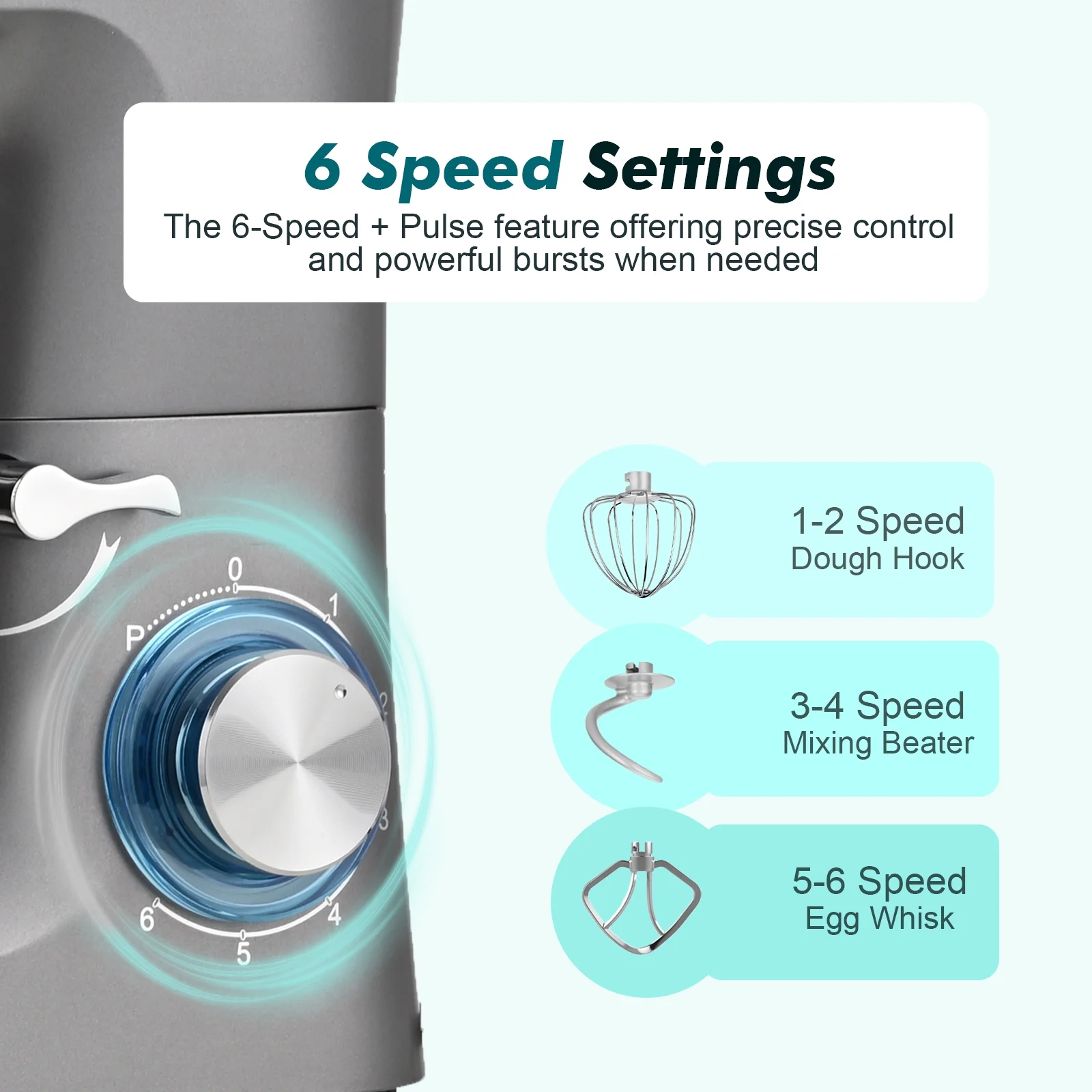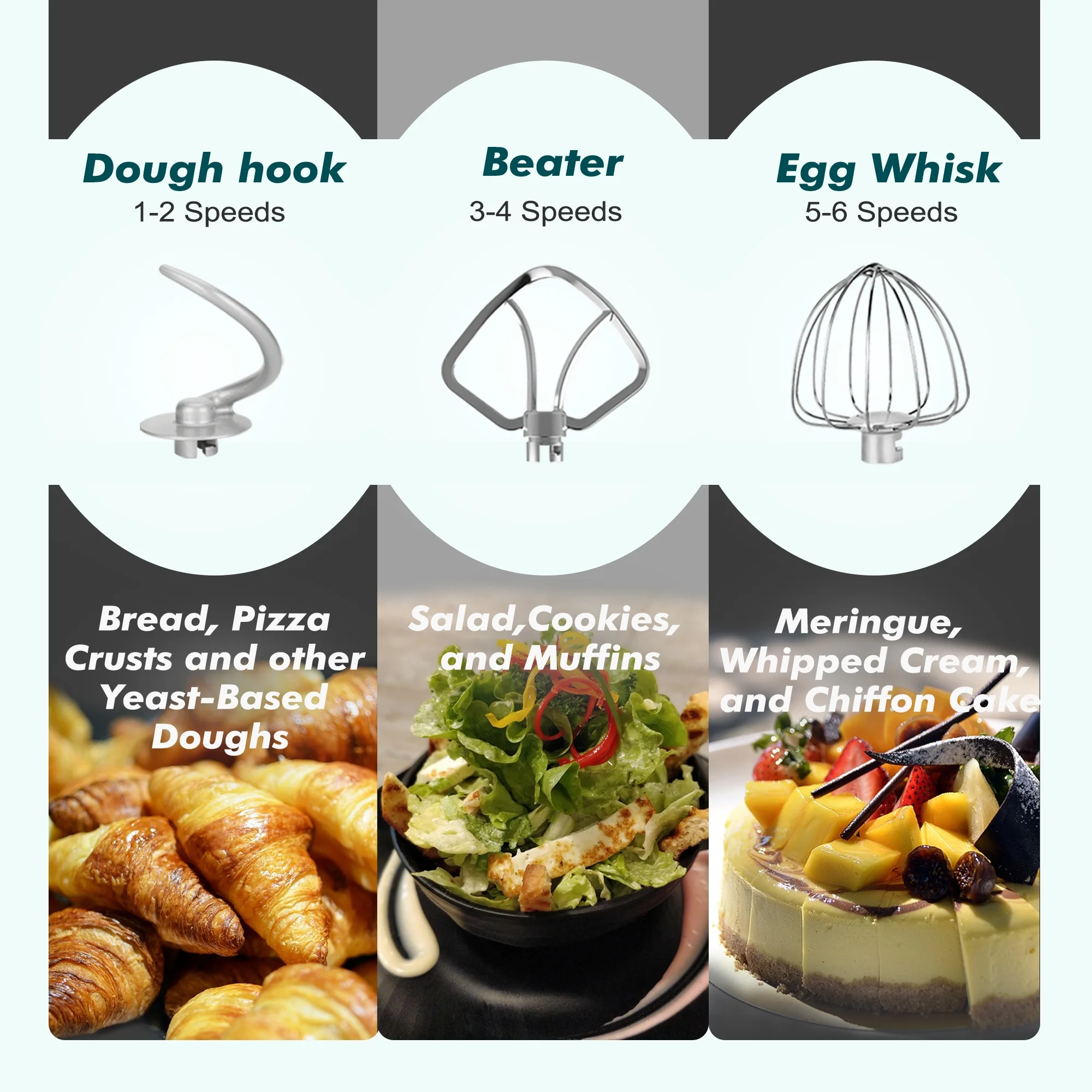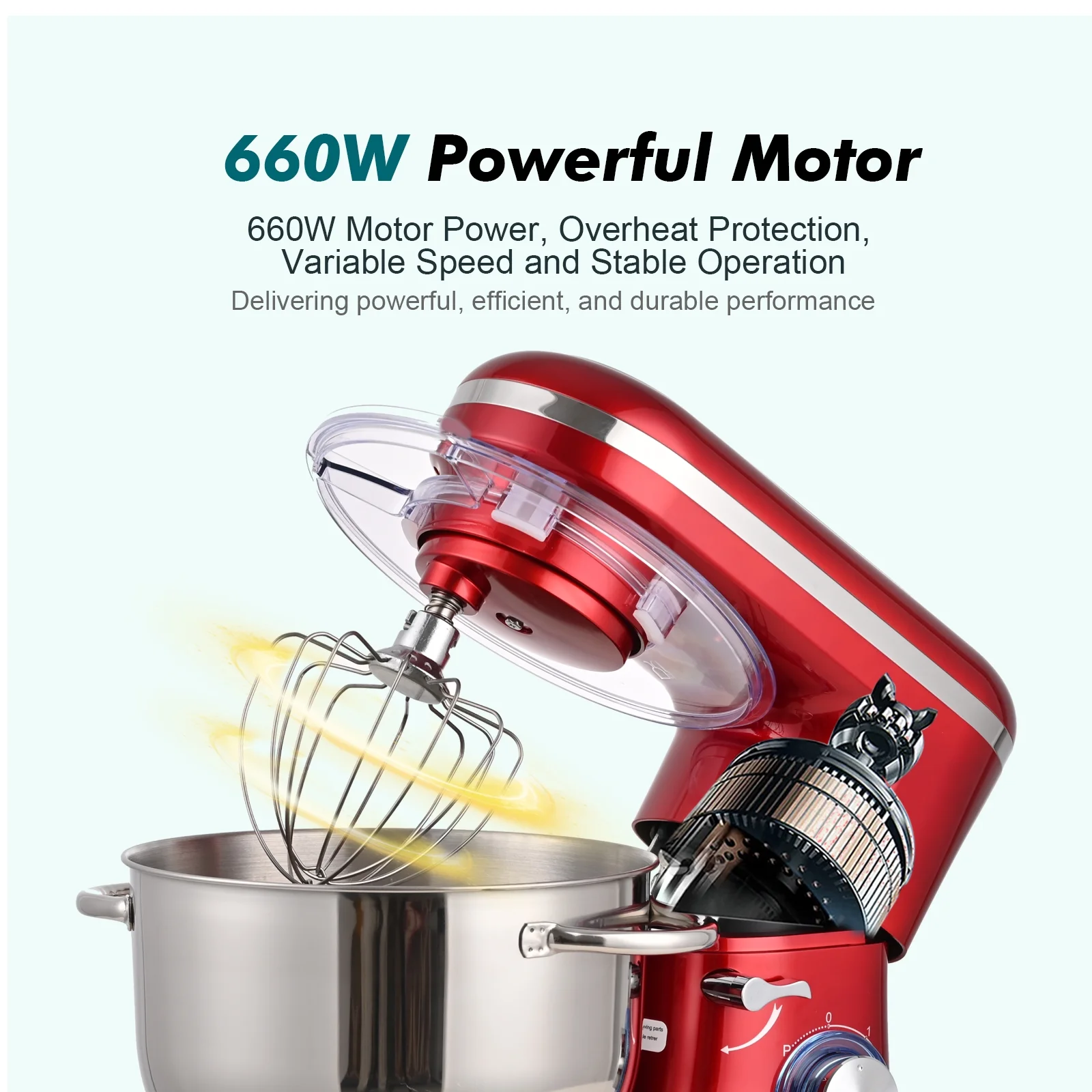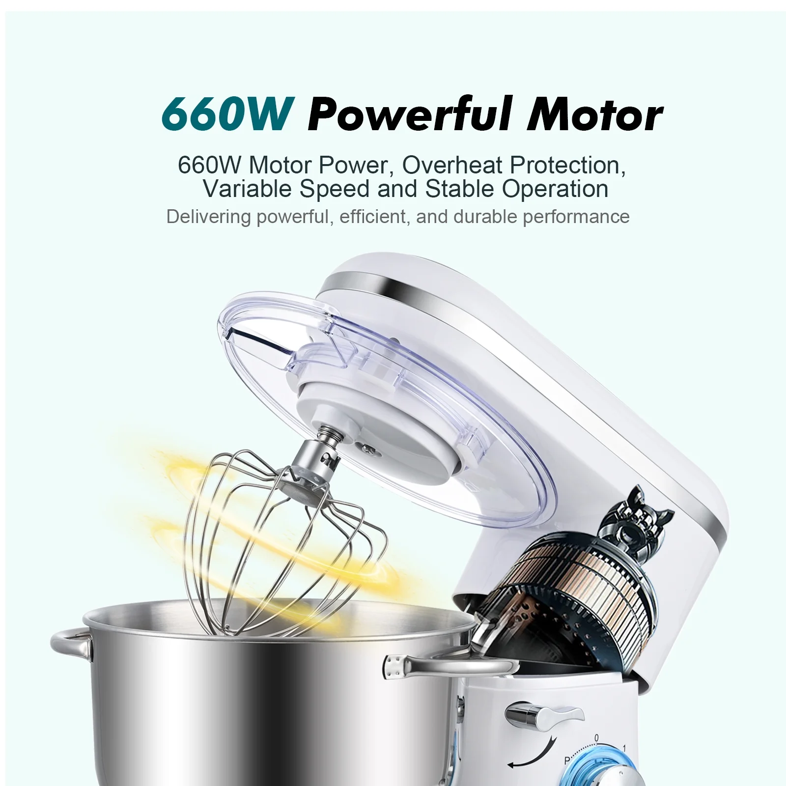 The Kitchen in the box Stand Mixer is a powerful, space-saving solution for home chefs. This mixer comes with a 6.5QT stainless steel bowl, capable of handling large batches of food��from up to 4 loaves of bread to 100 cookies��making it perfect for family gatherings and special occasions. The 660W motor provides ample power for mixing, kneading, and whipping, while the 6-speed settings and pulse function offer precise control for any recipe. Its unique square design saves counter space, and all attachments (including a whisk, dough hook, and beater) are dishwasher-safe for easy cleanup. This mixer is ideal for effortless cooking and baking, handling a variety of tasks with ease. Not only does it perform well, but it also serves as a beautiful decoration for your kitchen. It's the perfect gift choice!��6.5QT Large Capacity Bowl�� Our stand mixer comes with a 6.5QT food-grade stainless steel bowl, perfect for handling large quantities of food, reducing the need for multiple batches. The mixer features dual handles and an integrated splash guard, making it easy to hold and clean. ��660W Powerful Motor�� Equipped with a 660W high-performance pure copper motor and a sturdy ABS shell, the mixer can process ingredients quickly and thoroughly. The built-in chip sensor automatically shuts off the mixer when overheating, ensuring safety and reliability. With 6 optimized speeds and a pulse function, the mixer is versatile enough for various recipes and uses. ��6+Pulse Speed and Tilt-Head Design�� This kitchen mixer offers 6-speed control, allowing for everything from slow stirring to fast mixing, ensuring precise results for any recipe. The pulse function reaches maximum speed in just a second, perfect for whipping egg whites. The tilt-head design allows easy installation or removal of the bowl and attachments. ��Multiple Attachments and Anti-Slip Design�� The KITB baking mixer comes with three mixing attachments: a whisk, dough hook, and beater. The anti-slip suction feet keep the mixer stable and secure, even during operation. The stainless steel bowl, whisk, dough hook, and beater are all dishwasher-safe, reducing post-baking kitchen cleanup. ��Ideal Gift and Professional Support�� The near-square body shape saves countertop space while still offering a 6.5QT large capacity, making it easy to store, especially in smaller kitchens, with a sleek, modern look. It makes the perfect Christmas gift for family and friends. If you encounter any issues, feel free to contact our support team, and we will be happy to assist you.