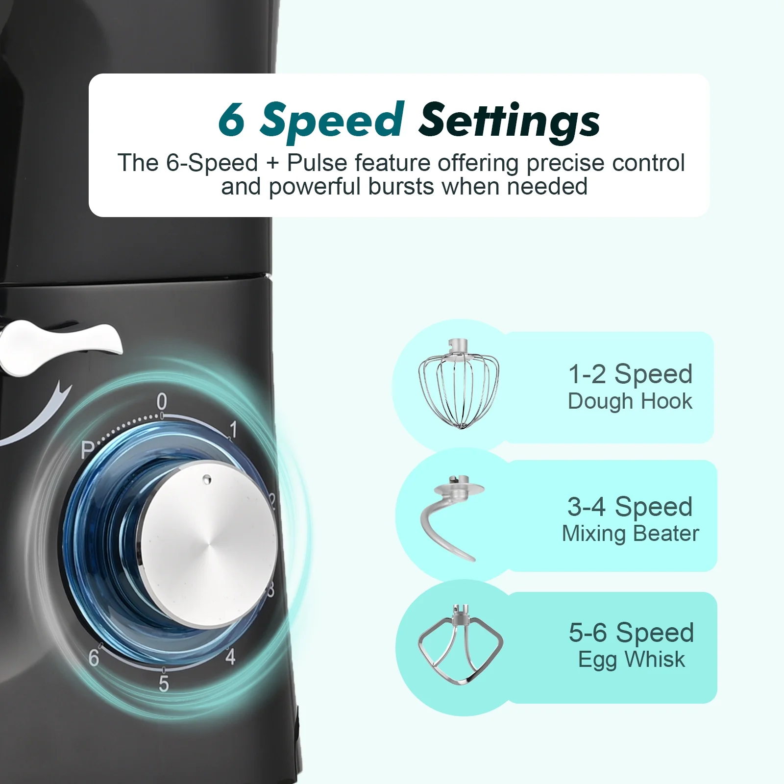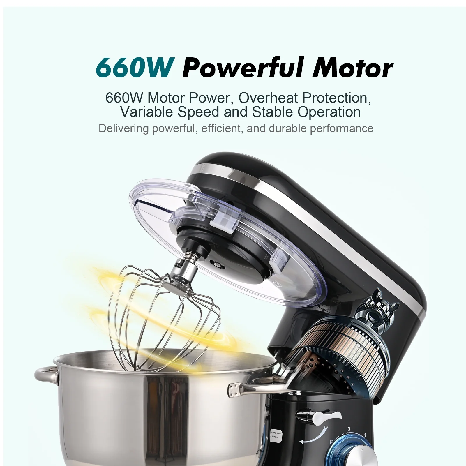 • Kitchen in the Box Tilt - Head Stand Mixer, Electric Kitchen Mixer with 6.5QT Stainless Steel Bowl, 660W Food Mixer with 6 - Speed, Black