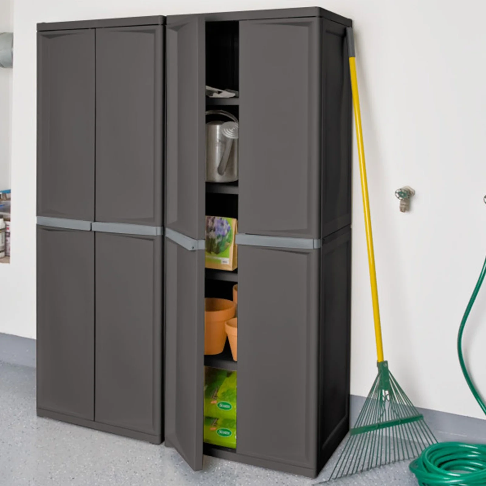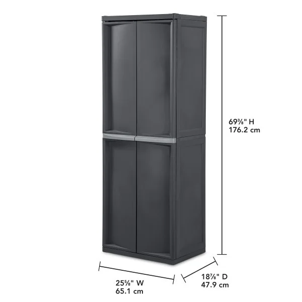 - Rugged design constructed of durable plastic with adjustable shelves, the cabinet will not dent, chip, peel, or rust for lasting use