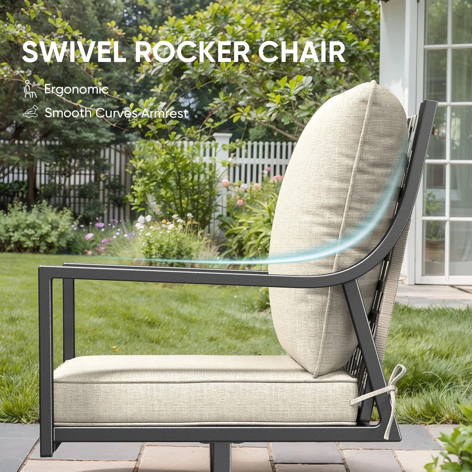 - ?��COMFORTABLE DINING HEIGHT SEATING��Designed with a standard dining height and ergonomic back support, these swivel rocker chairs offer both style and function. Each chair supports up to 300 lbs, making them perfect for daily use or entertaining guests outdoors.