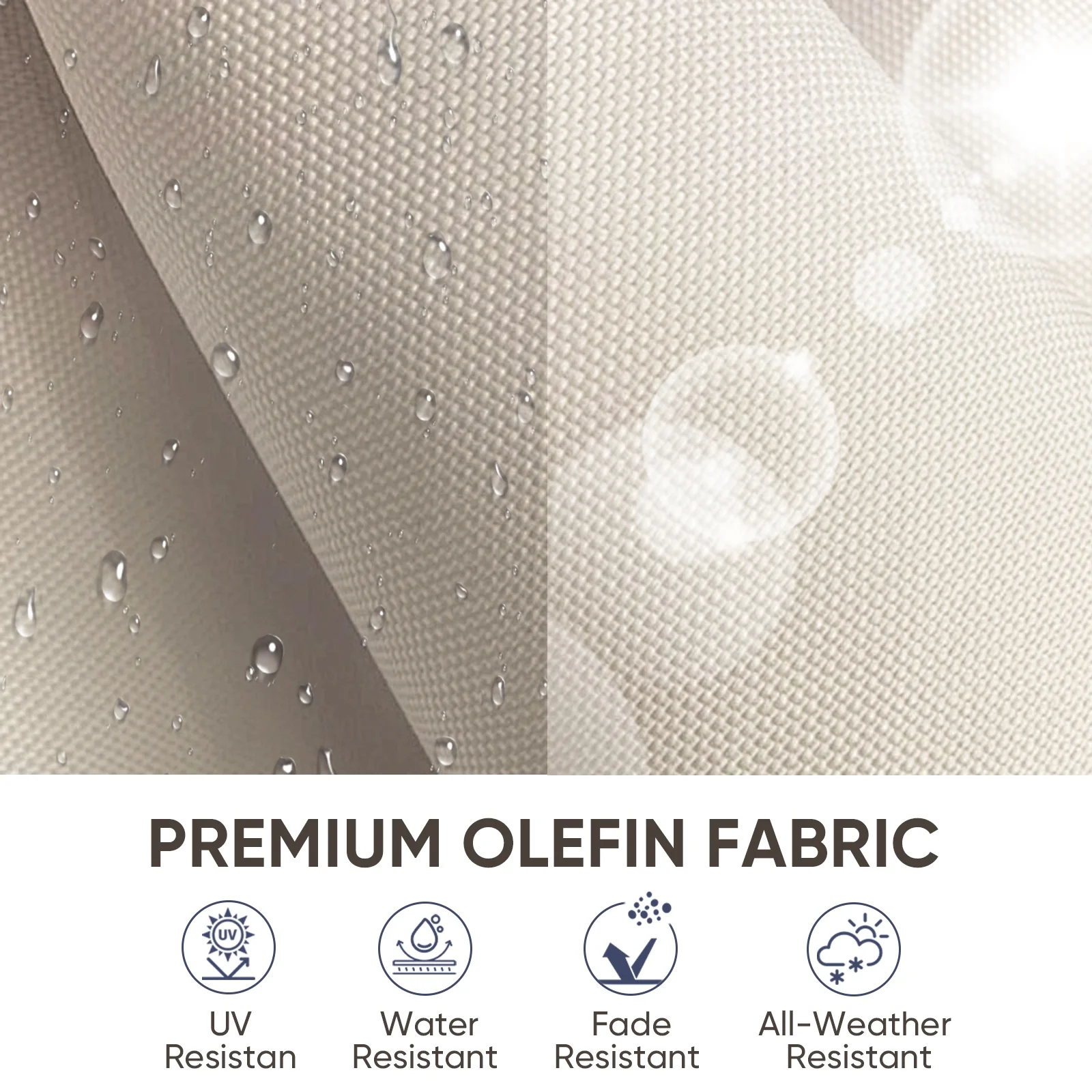 - ?��DURABLE OLEFIN CUSHIONS & SOFT FOAM��Each chair comes with thick beige cushions made from 100% Olefin fabric, known for its fade resistant, water repellent, and stain resistant properties. The high-resilience foam core with polyester fiber wrap ensures excellent support and long-lasting shape retention.