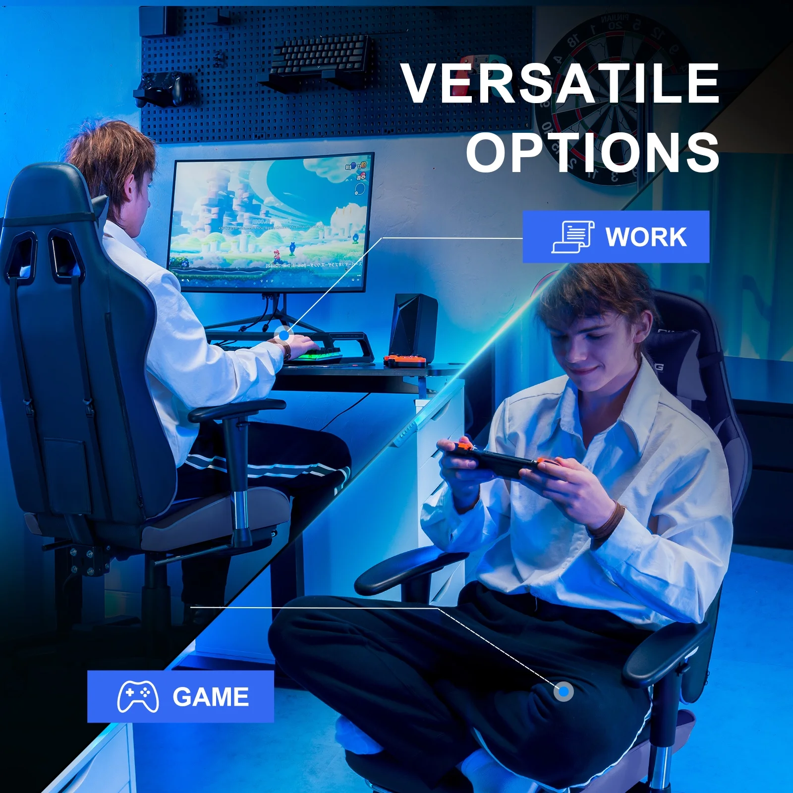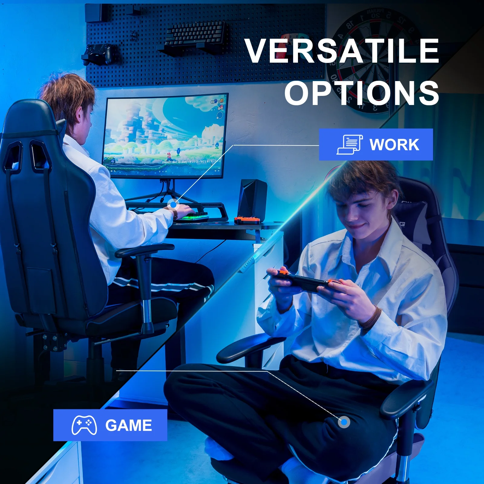 - Racing style gaming chair;