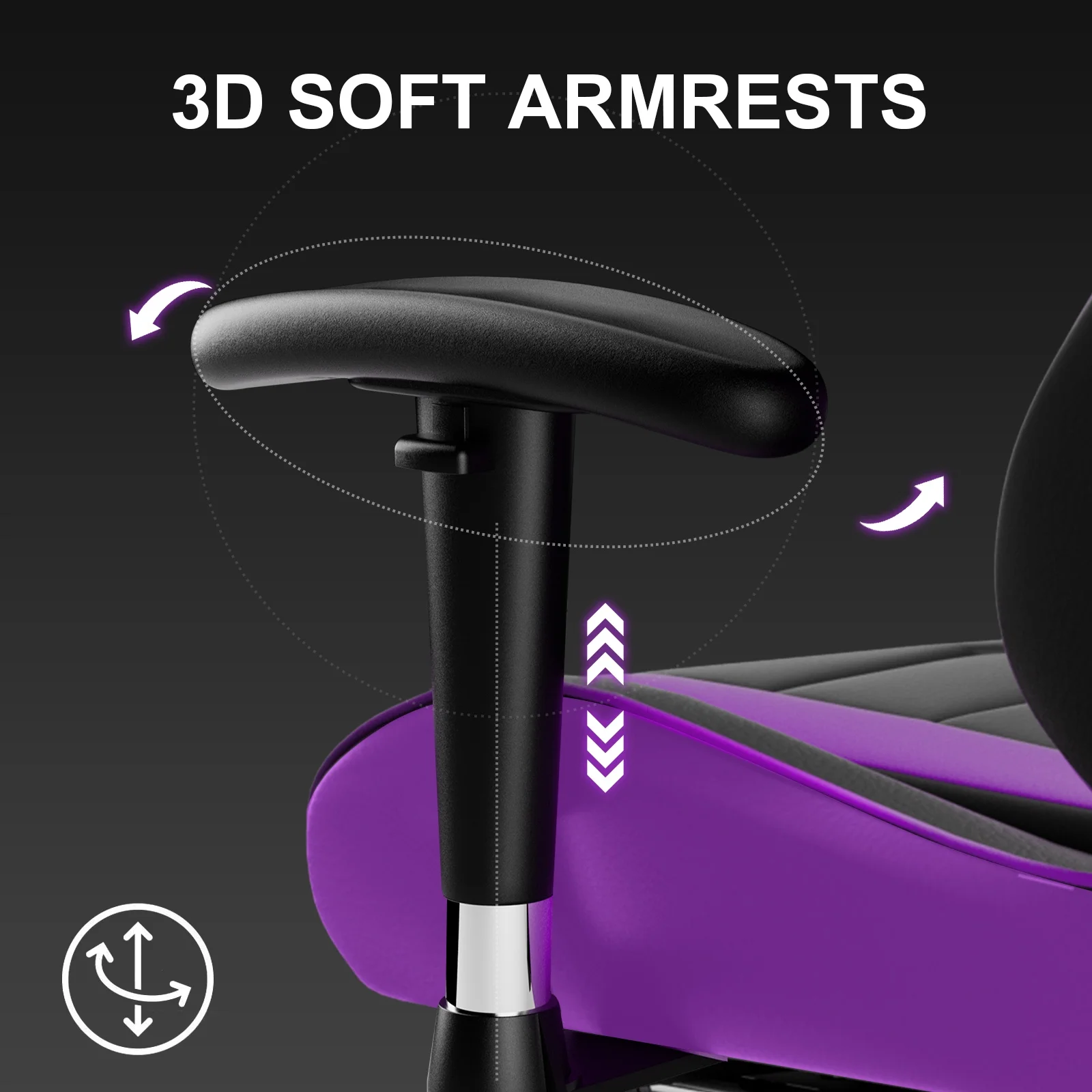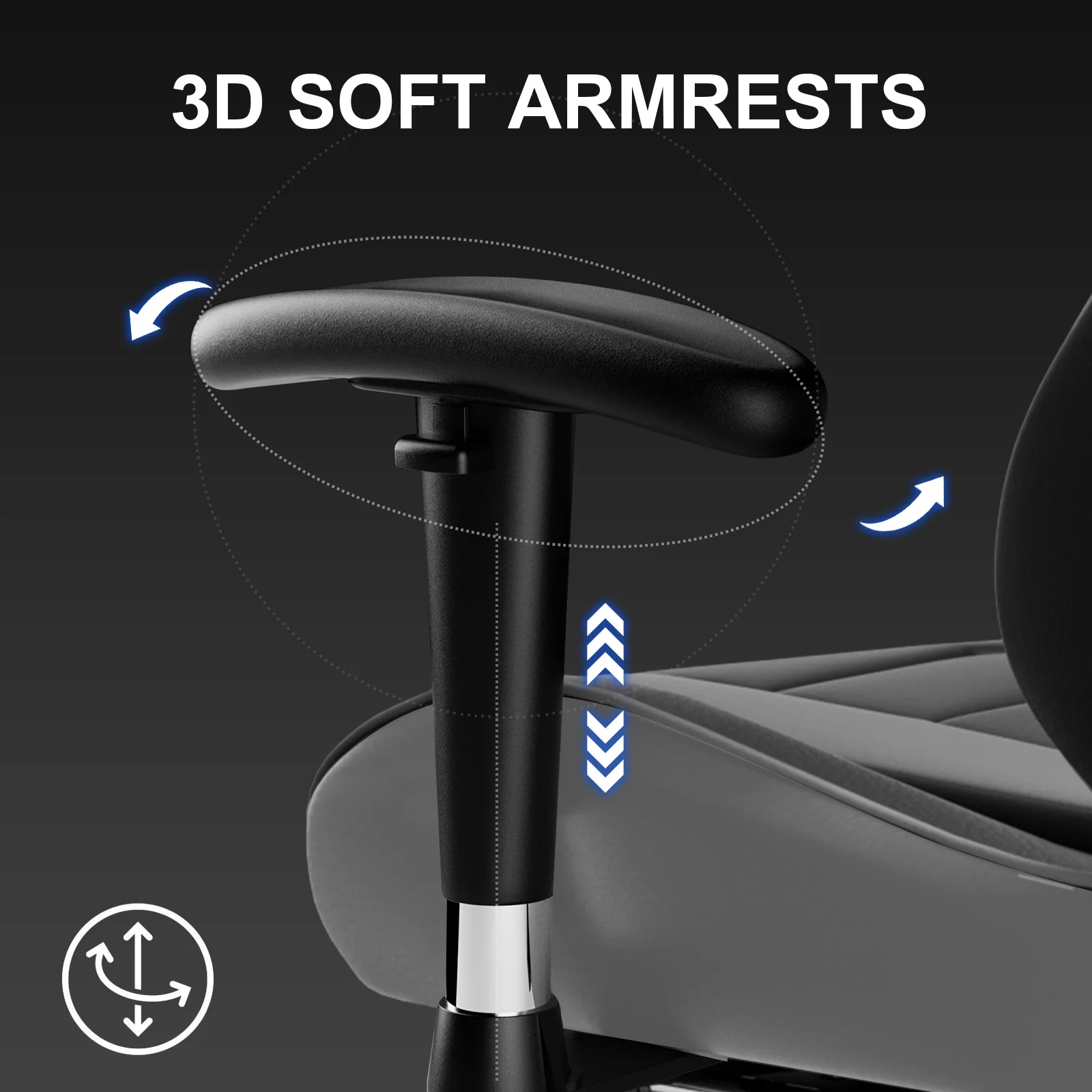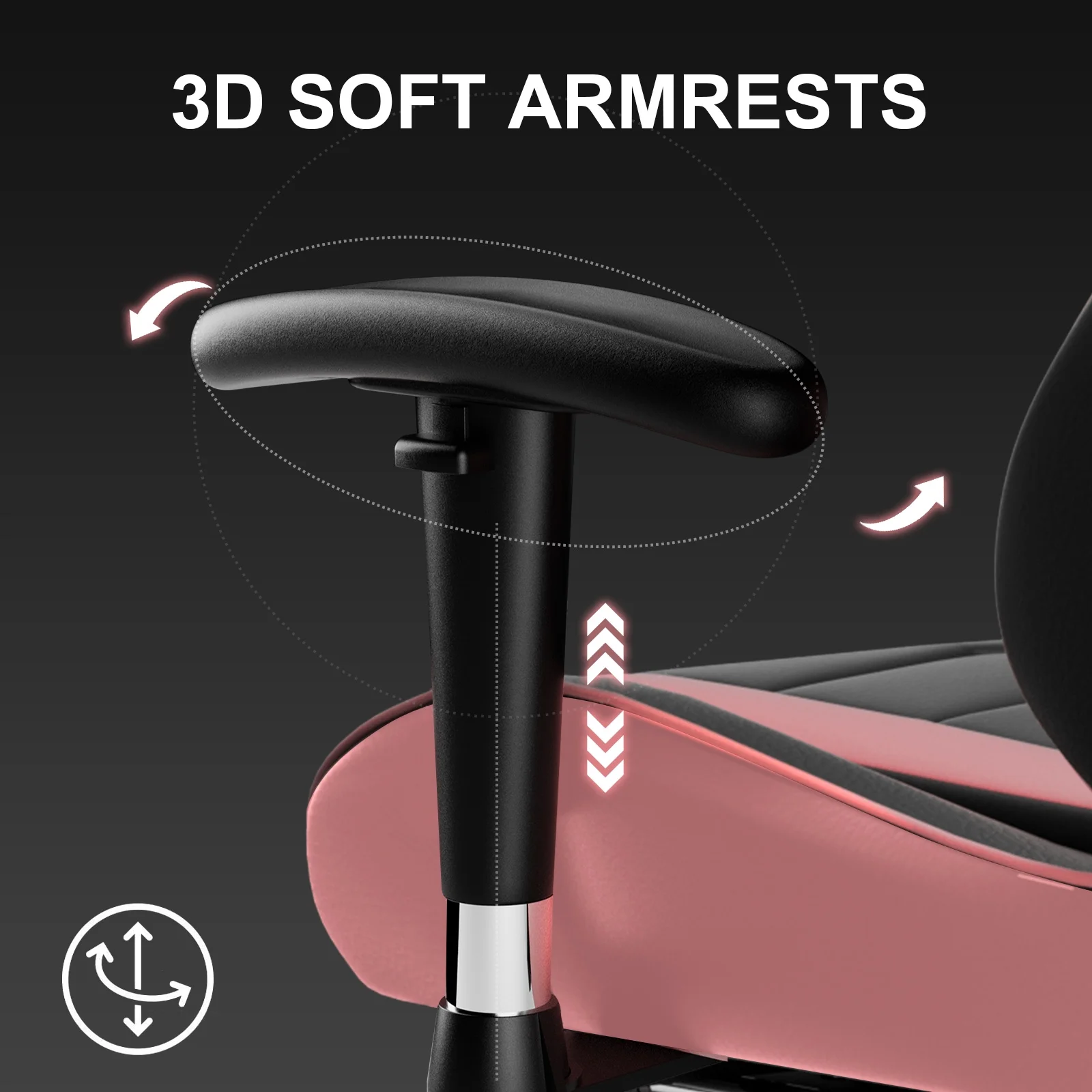 - Adjustable seat height, head&lumbar pillow, 3D armrests;
