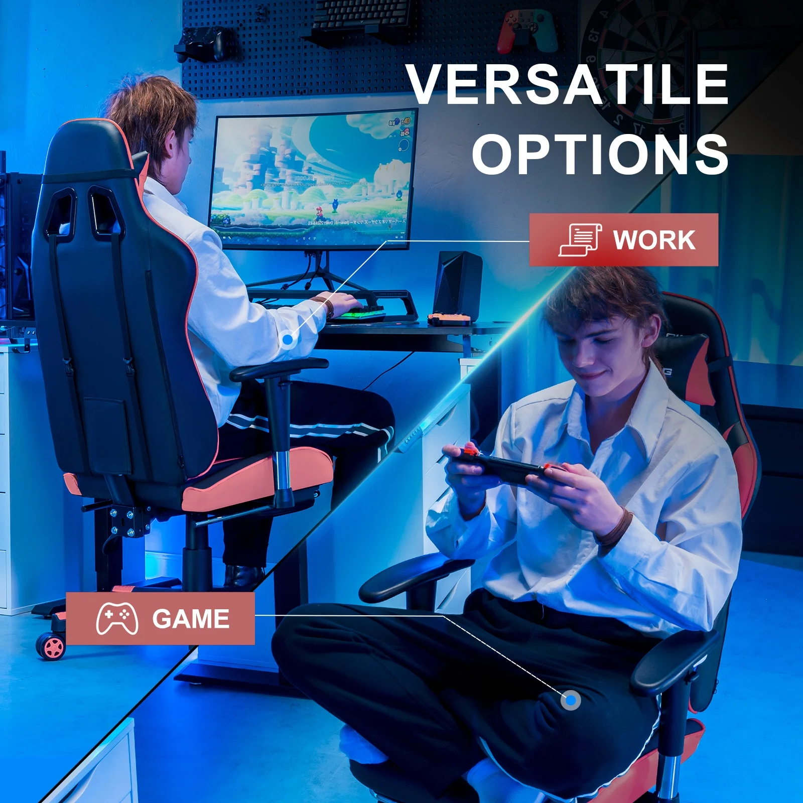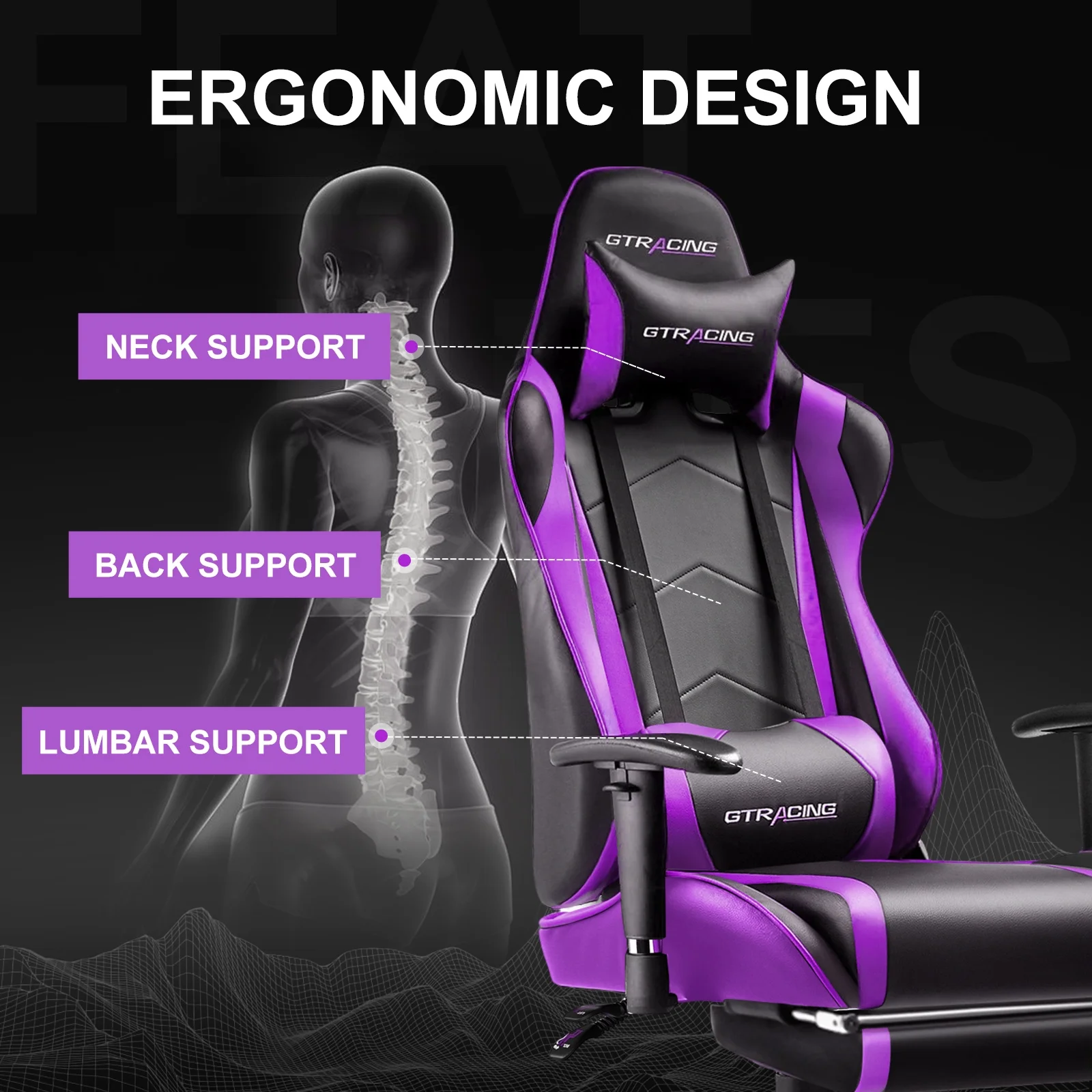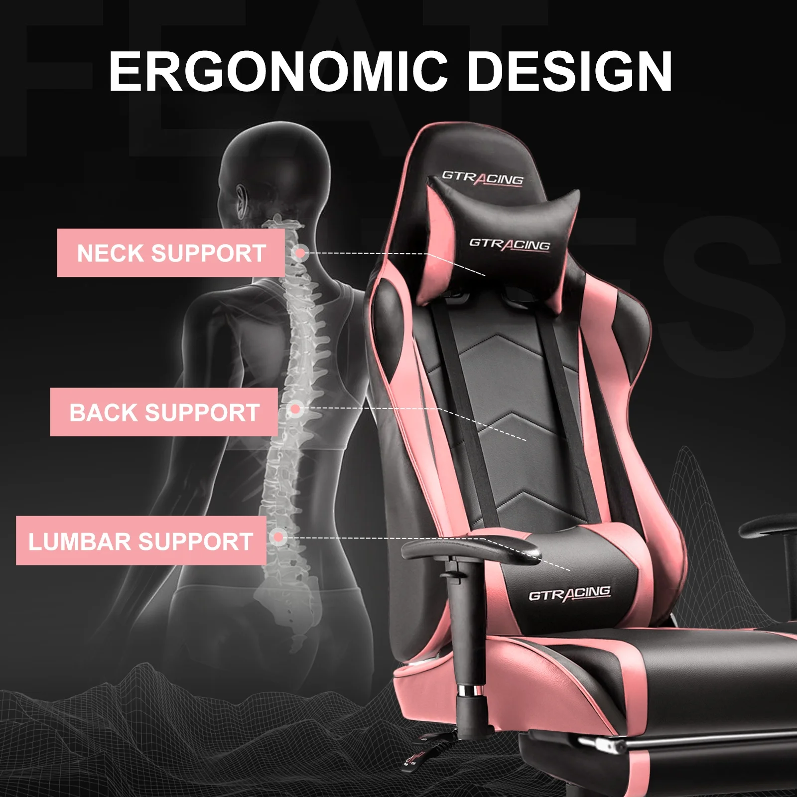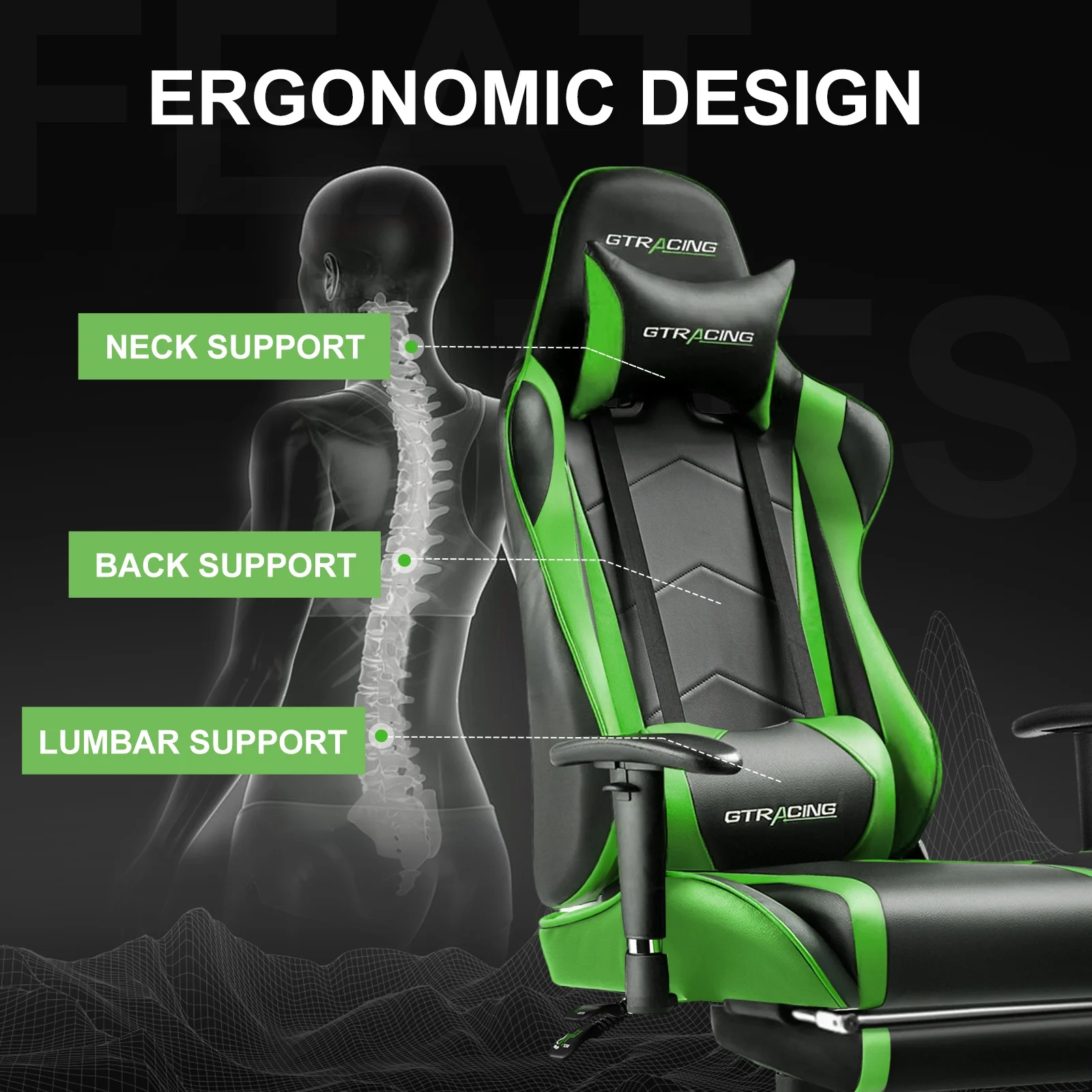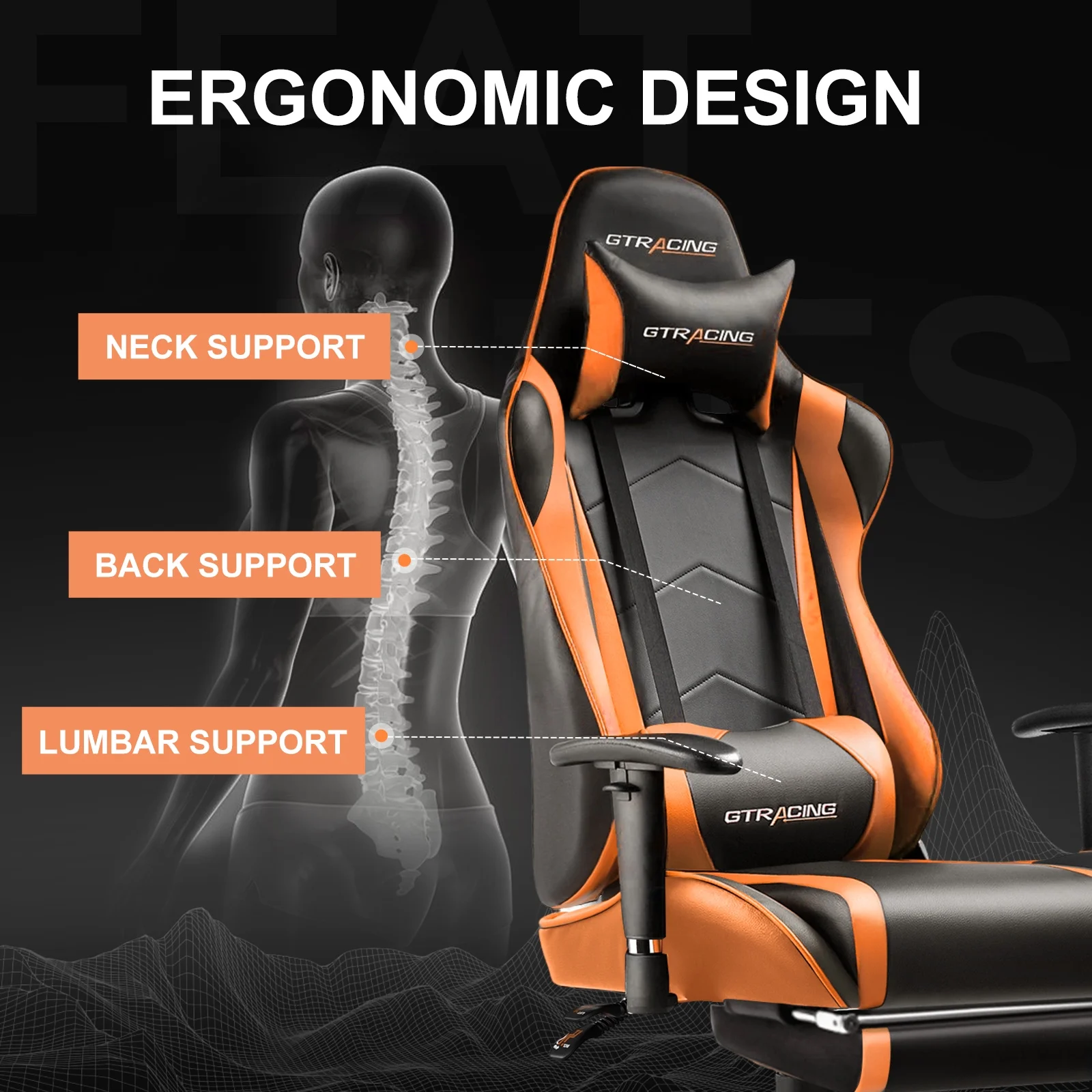 - Ergonomic racing style gaming chair;