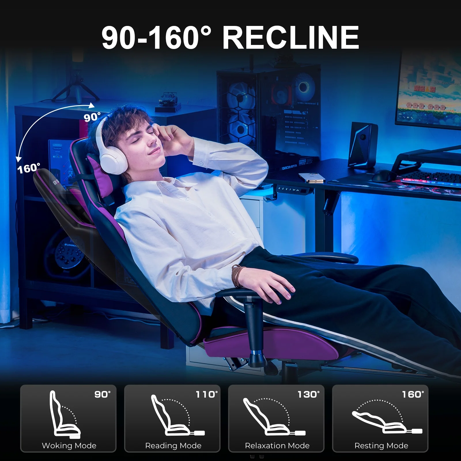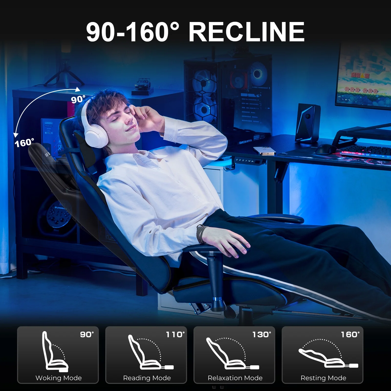 - Ergonomic design: Stable metal frame padded with upholstery seat&chair back and adjustable chair angle would provide your most comfortable posture and keep you relaxing after all day working or gaming.