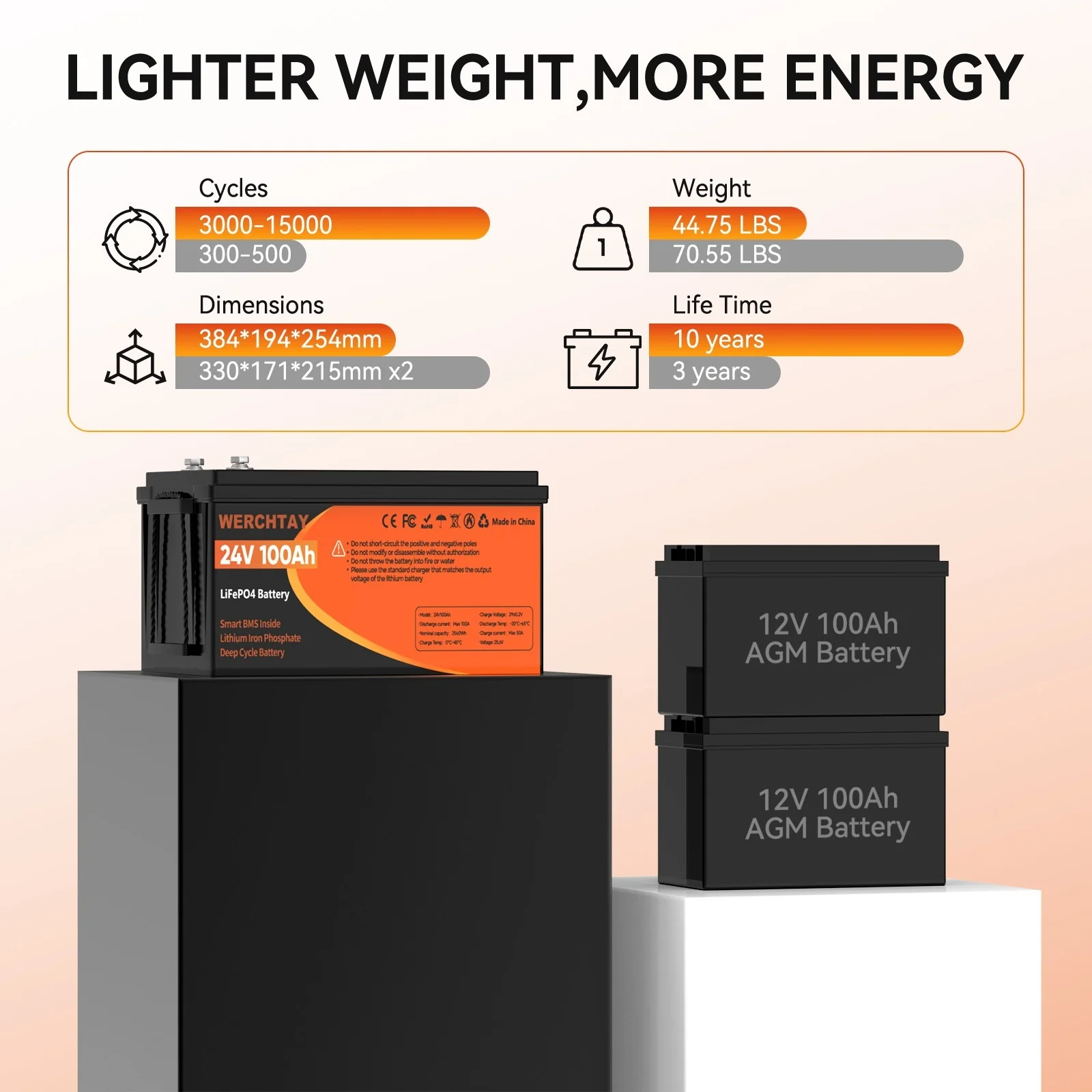 Rated Capacity: 100Ah/2560Wh
