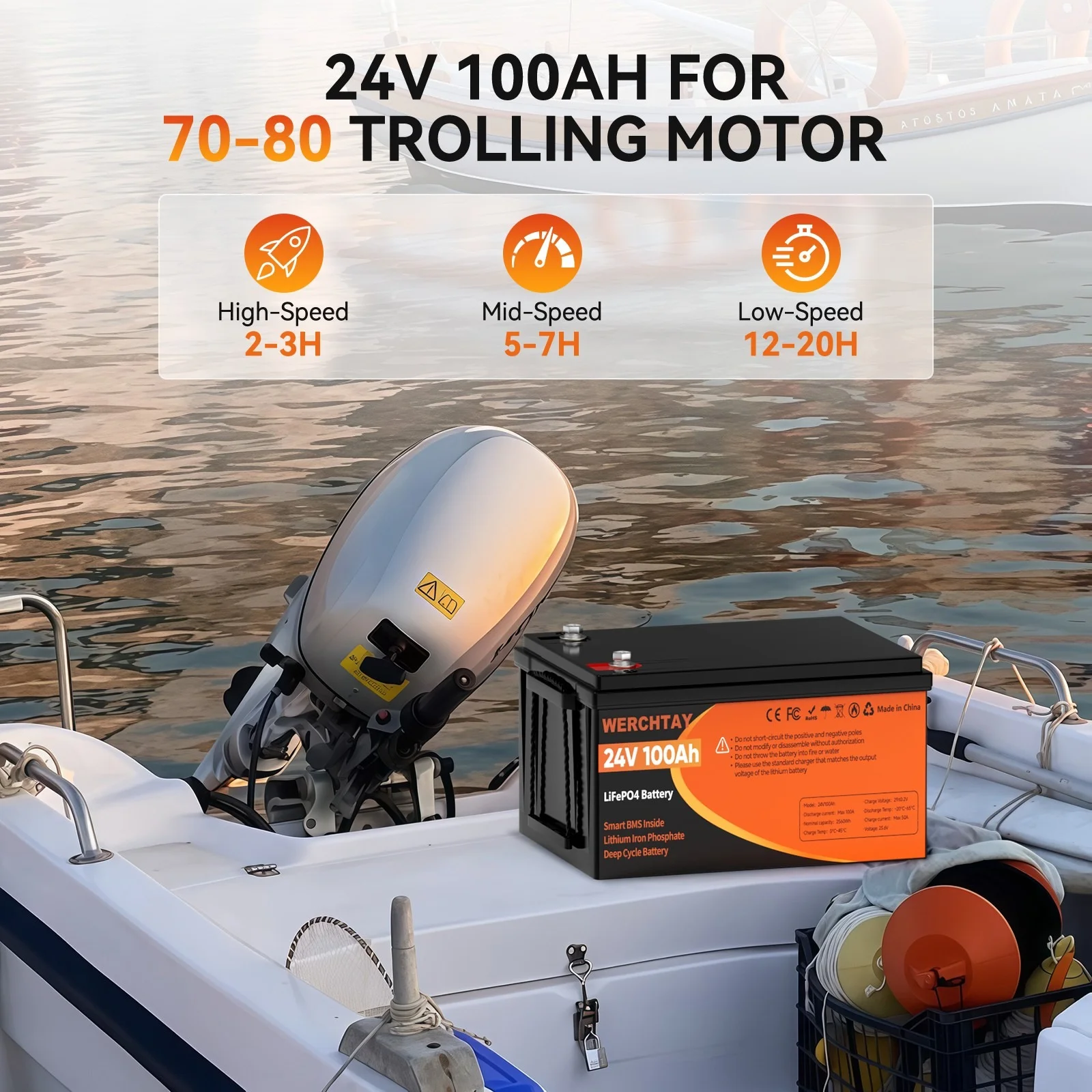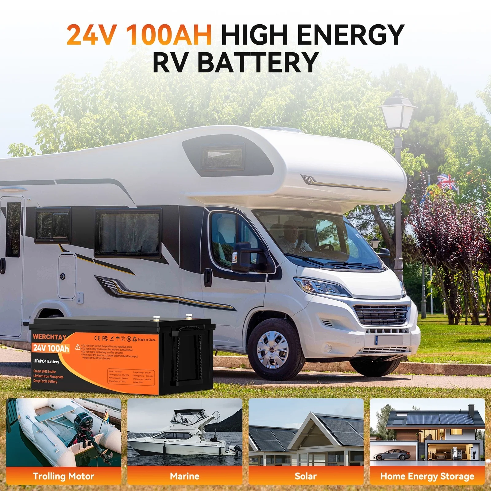 24V 100ah LiFePO4 Battery, Lithium Battery Built - in 100A BMS, 4000 Deep Cycles Rechargeable Battery, Max. 2560W Load Power, Perfect for RV, Solar, Marine, Overland/Van, Off - Grid