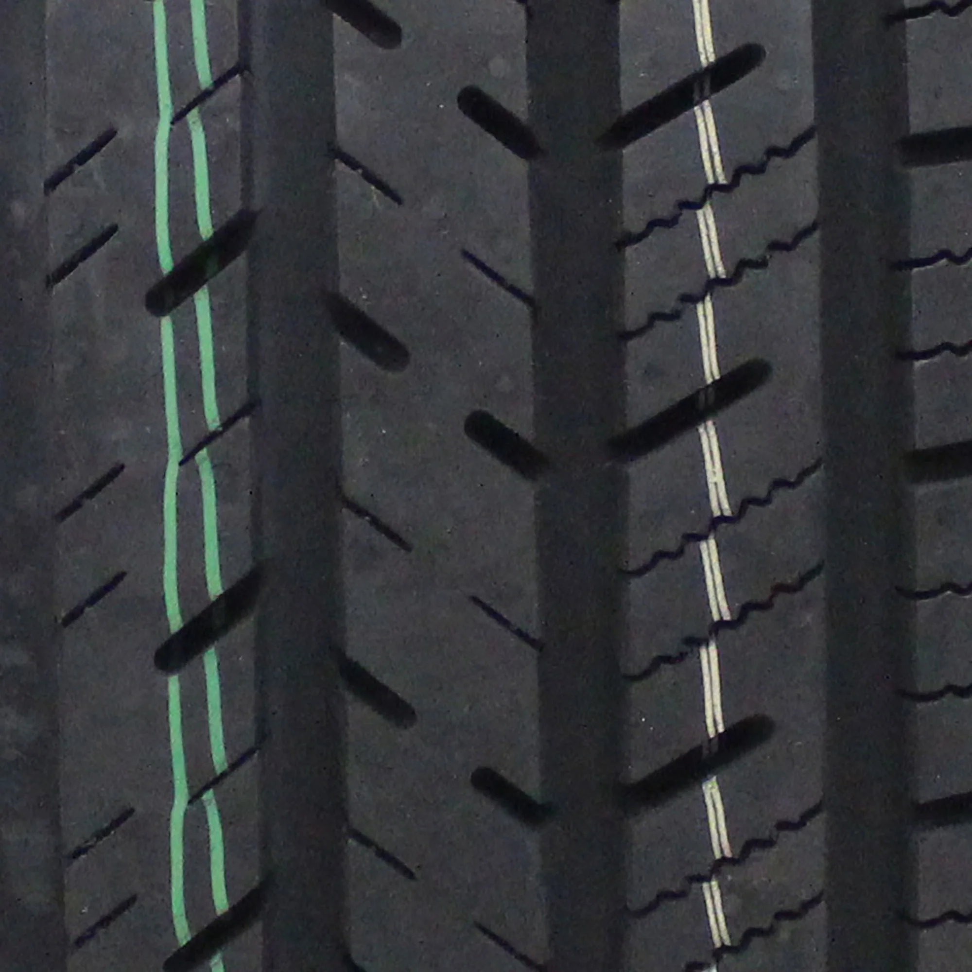 - Dual-zone tread pattern with wet-weather traction pattern at center and dry-weather design at edges allows for consistent performance in wet and dry conditions