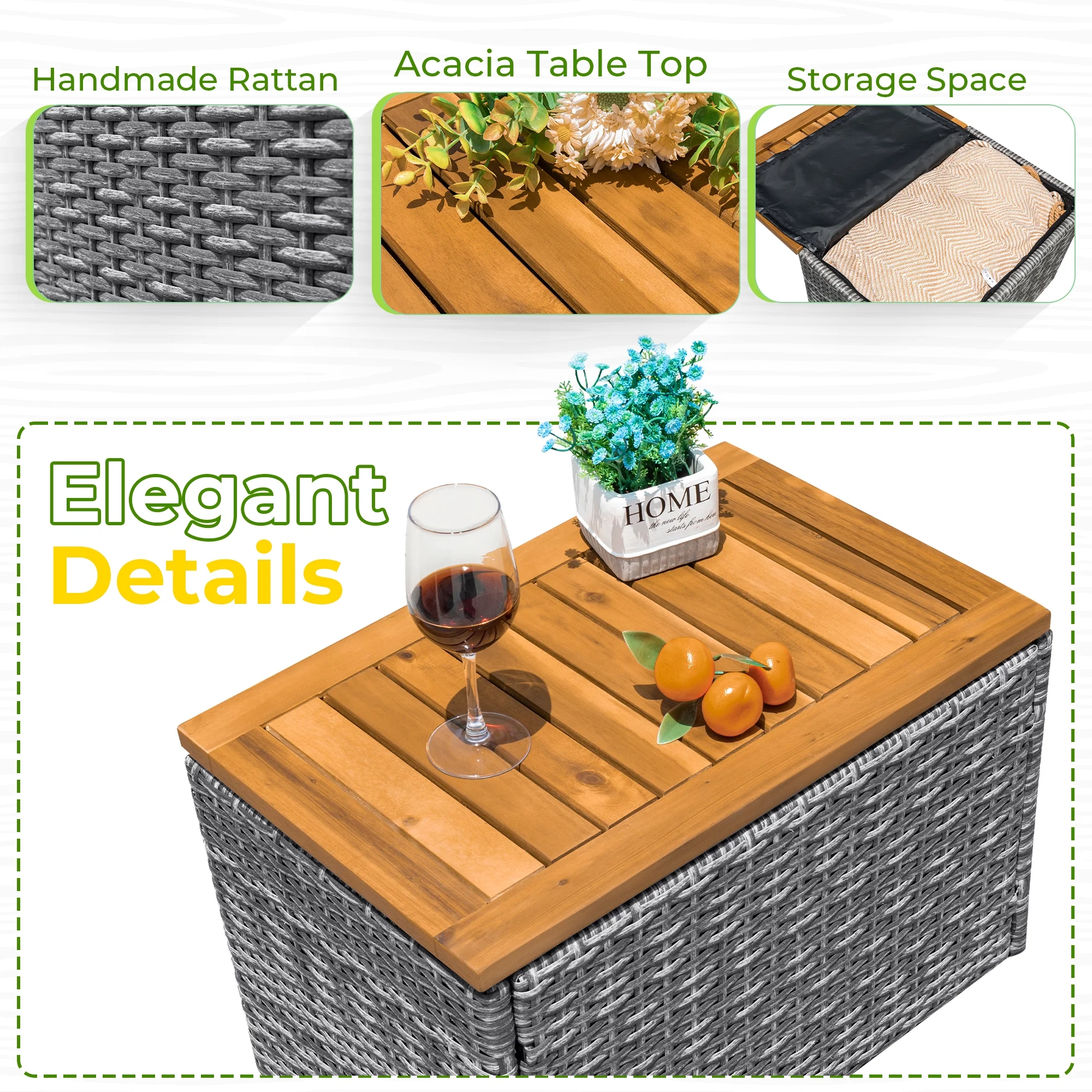 - Handmade rattan construction ensures durability and weather resistance