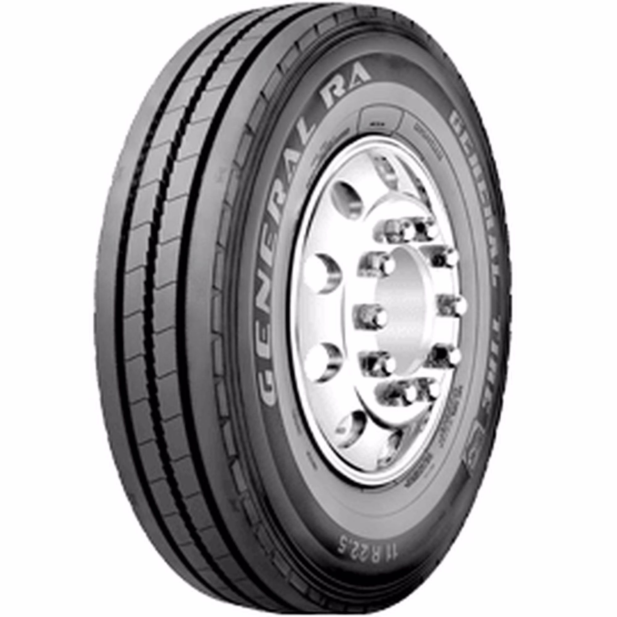 The General Grabber RA is an all-position commercial tire trucks and buses in urban and regional applications. The Grabber RA is designed for limited off-road service, with deep tread grooves for strong traction, noise reduction technology that improves ride comfort, stone ejectors to protect the casing from damage, and a patented groove pattern for all-season traction.