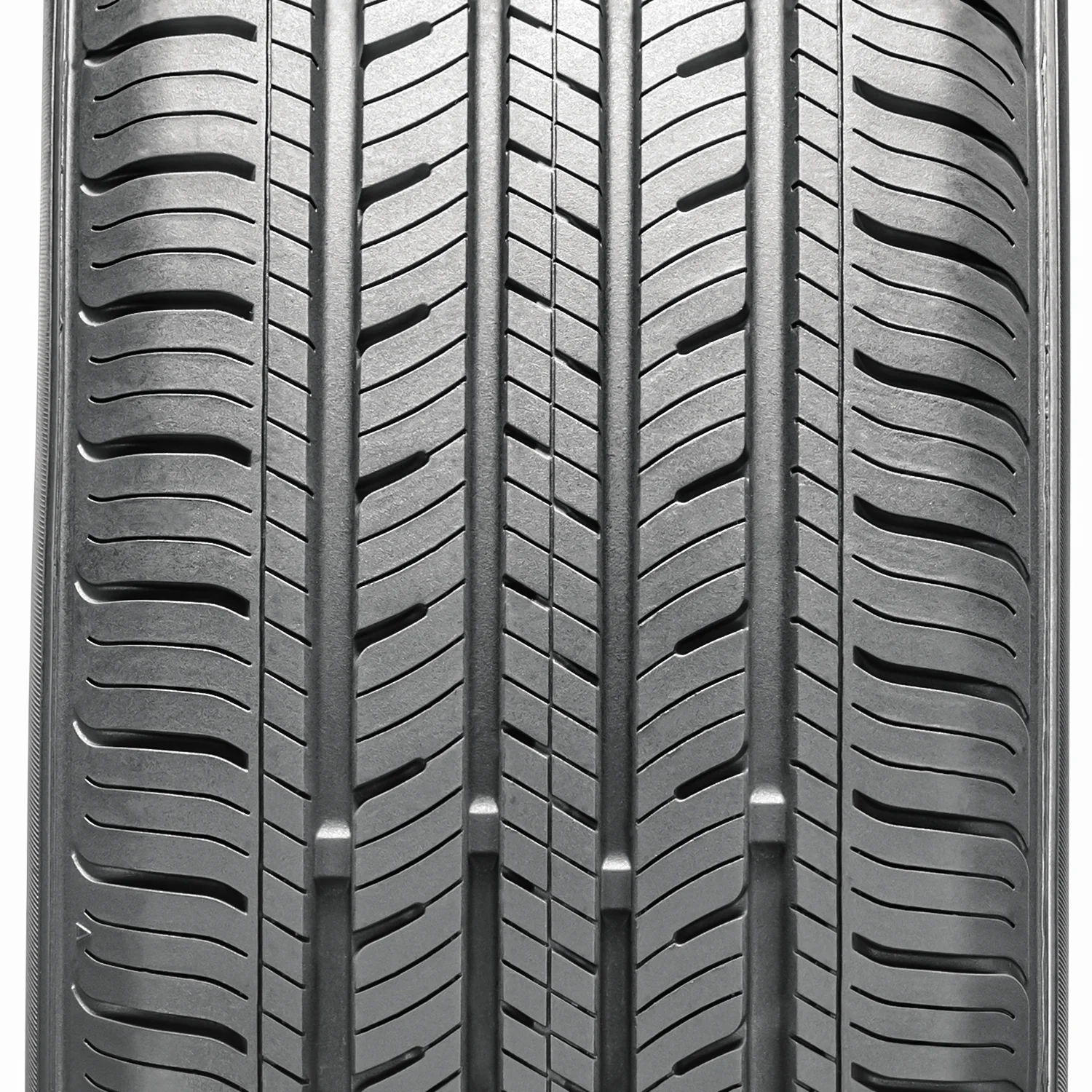 The tire guarantees superb all weather traction. The symmetric tread design and the all season tire compound work together to increase the dry, wet and winter weather traction. The enhanced all weather road gripping ability and driving safety are further improved with the tire's hydroplaning resistance. The main circumferential and numerous lateral grooves actively eliminate water and slush from below the tire's footprint, which upgrades the year round driving safety significantly.