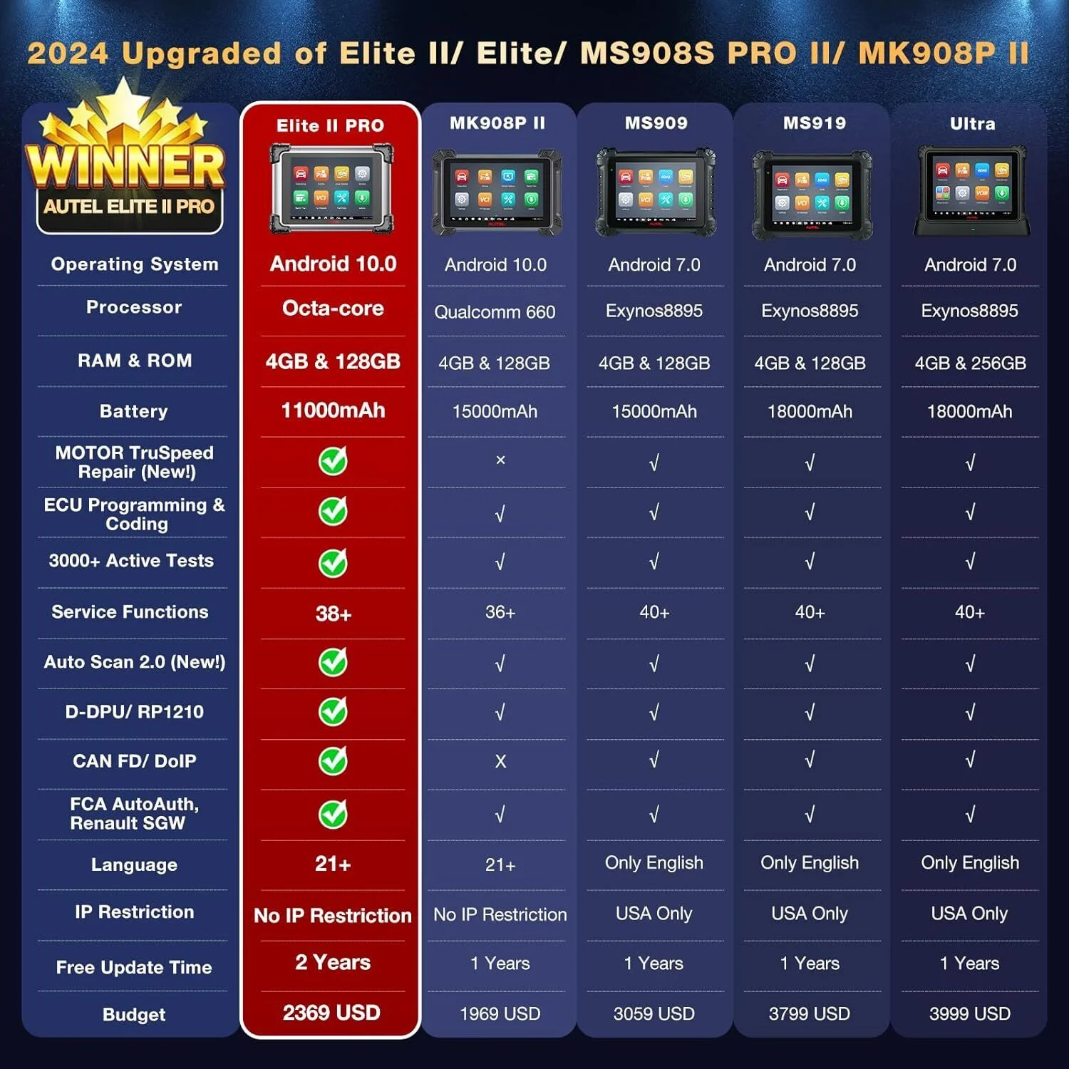 [8X Faster AutoScan 2.0 & 10+ Advanced Functions ] As Autel's most cost-effective device, Elite II Pro combines 10+ high-end features (such as power balance, guided functions, pre&post scan, etc.)