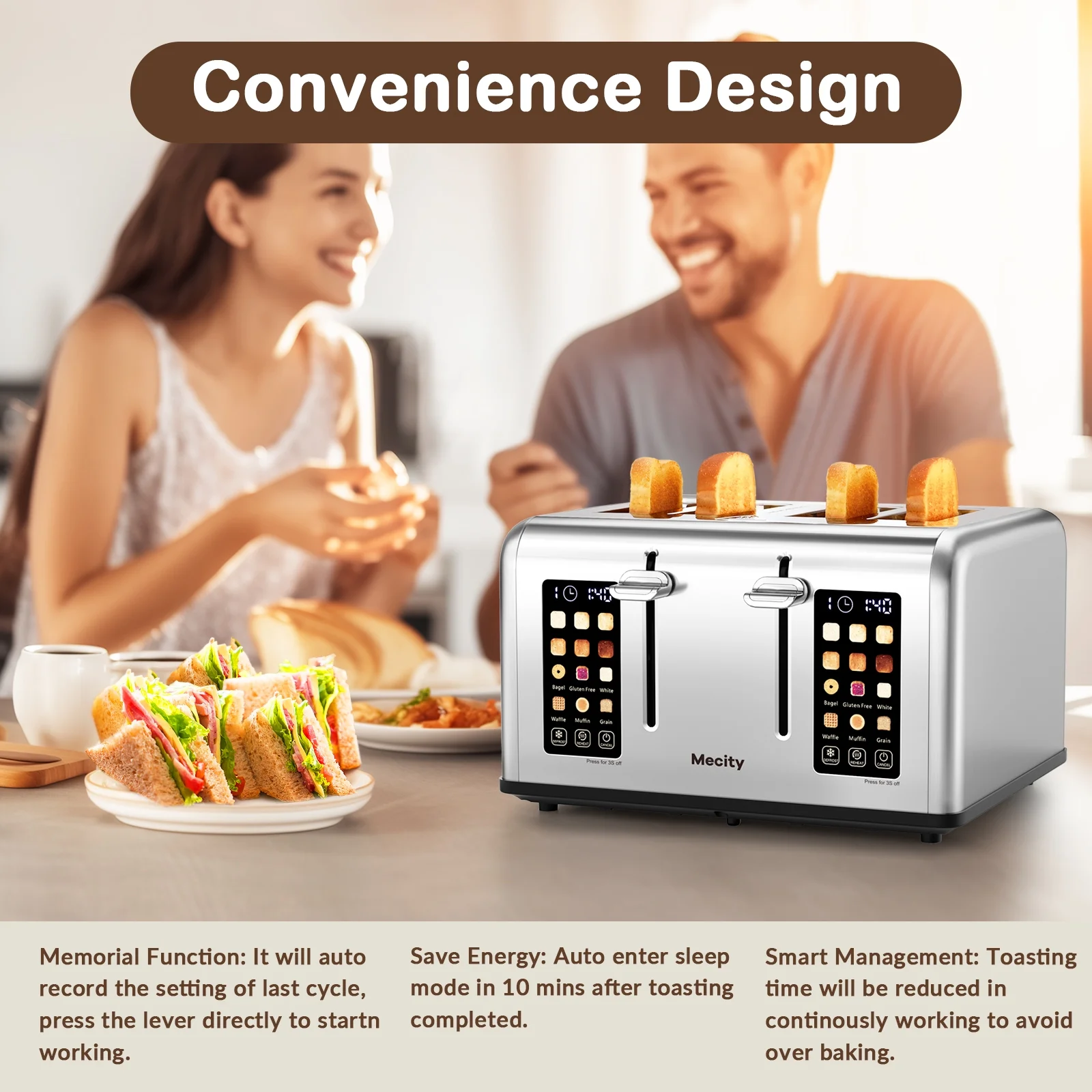- Auto Centering: make sure the bread in the center of slots, ensures a evenly browning.