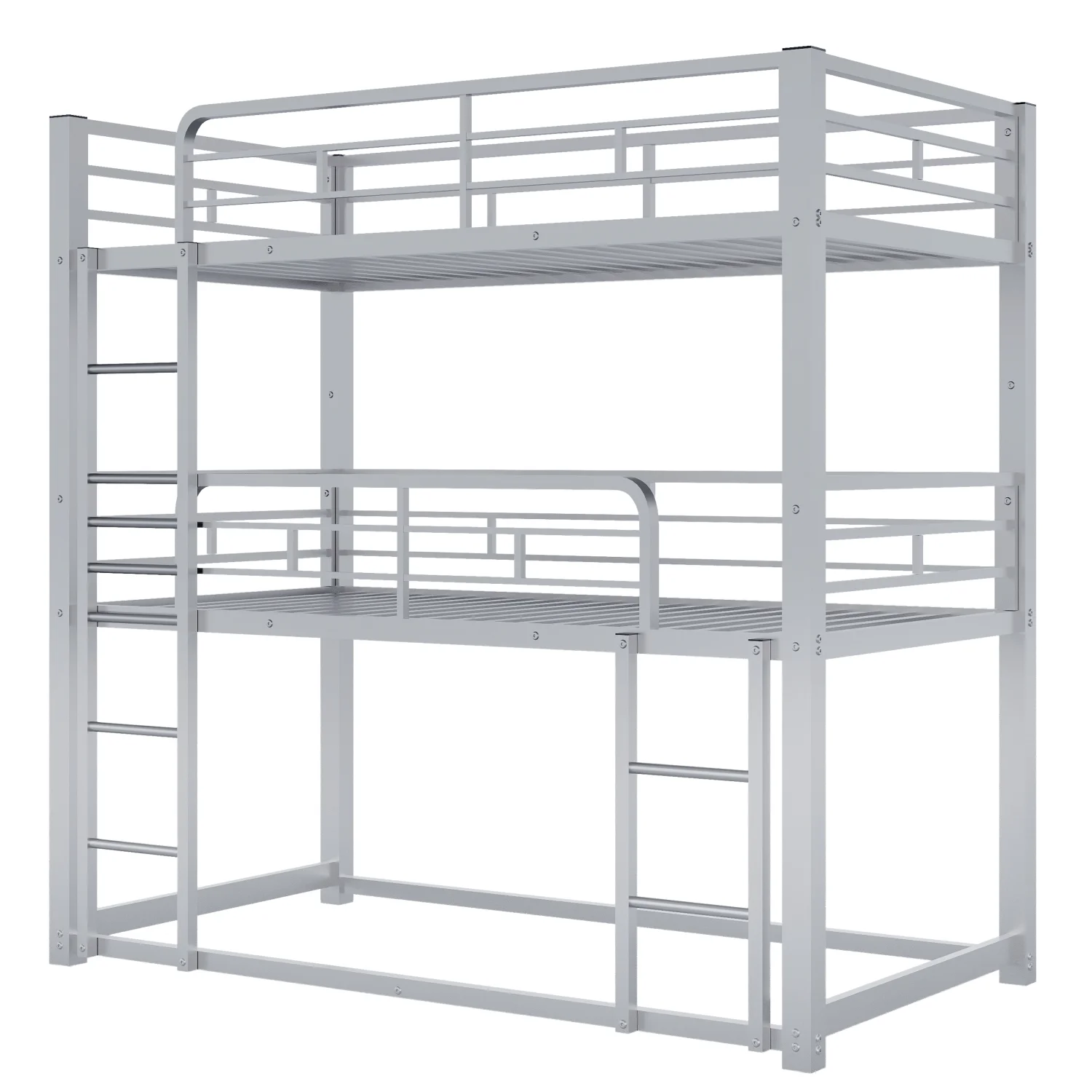 - ??��Space-saving 3 Bunk Beds in 1 Design��: Unique triple bunk bed features 3 beds for three kids while take up little floor space which especially suitable for rooms with compact space. The ultimate space saver for small rooms, the metal triple bunk bed will be the best addition for your sweet home. Accommodates standard twin size mattresses (sold separately).