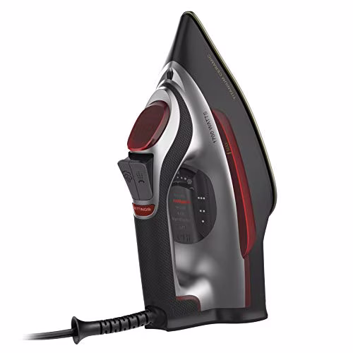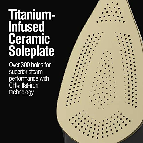 - PREMIUM MATERIALS WITH MODERN STYLE. The titanium-infused ceramic soleplate is ultra-strong and scratch-resistant. Matte chrome accents and a sleek design give this clothing iron a polished look.