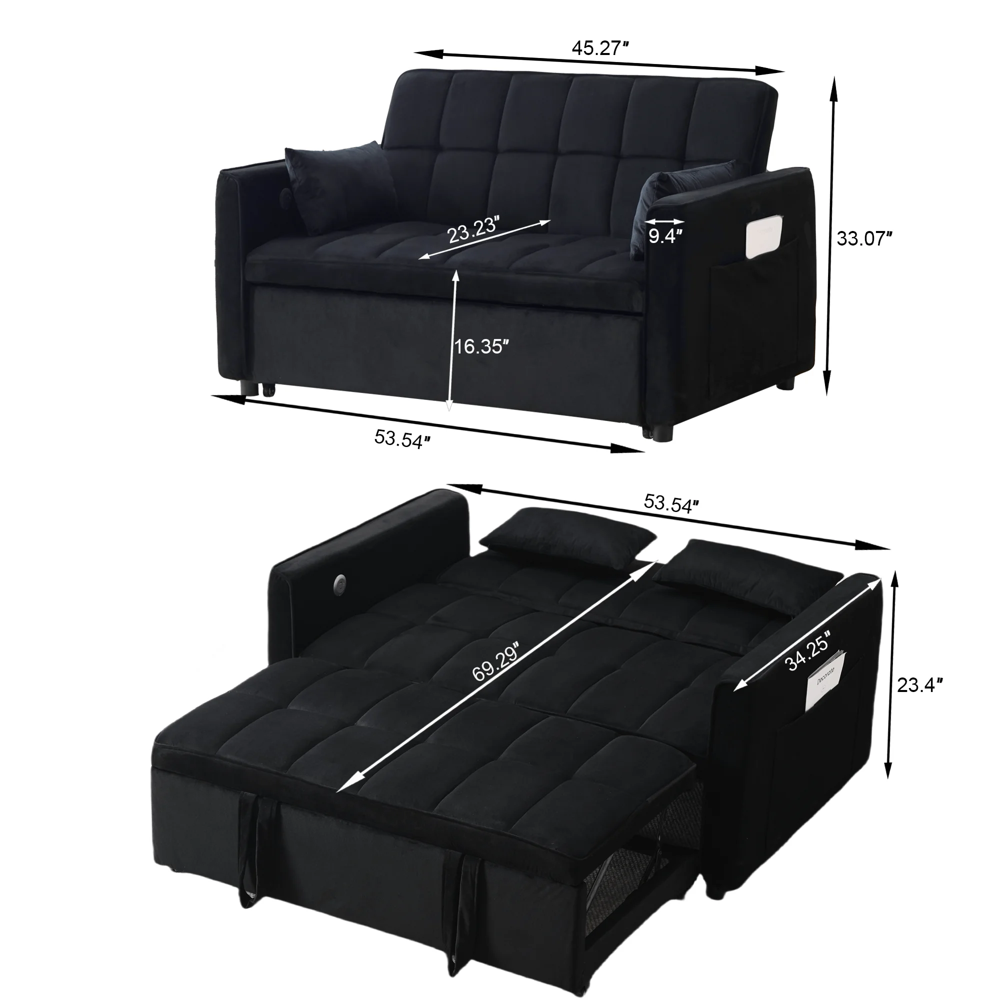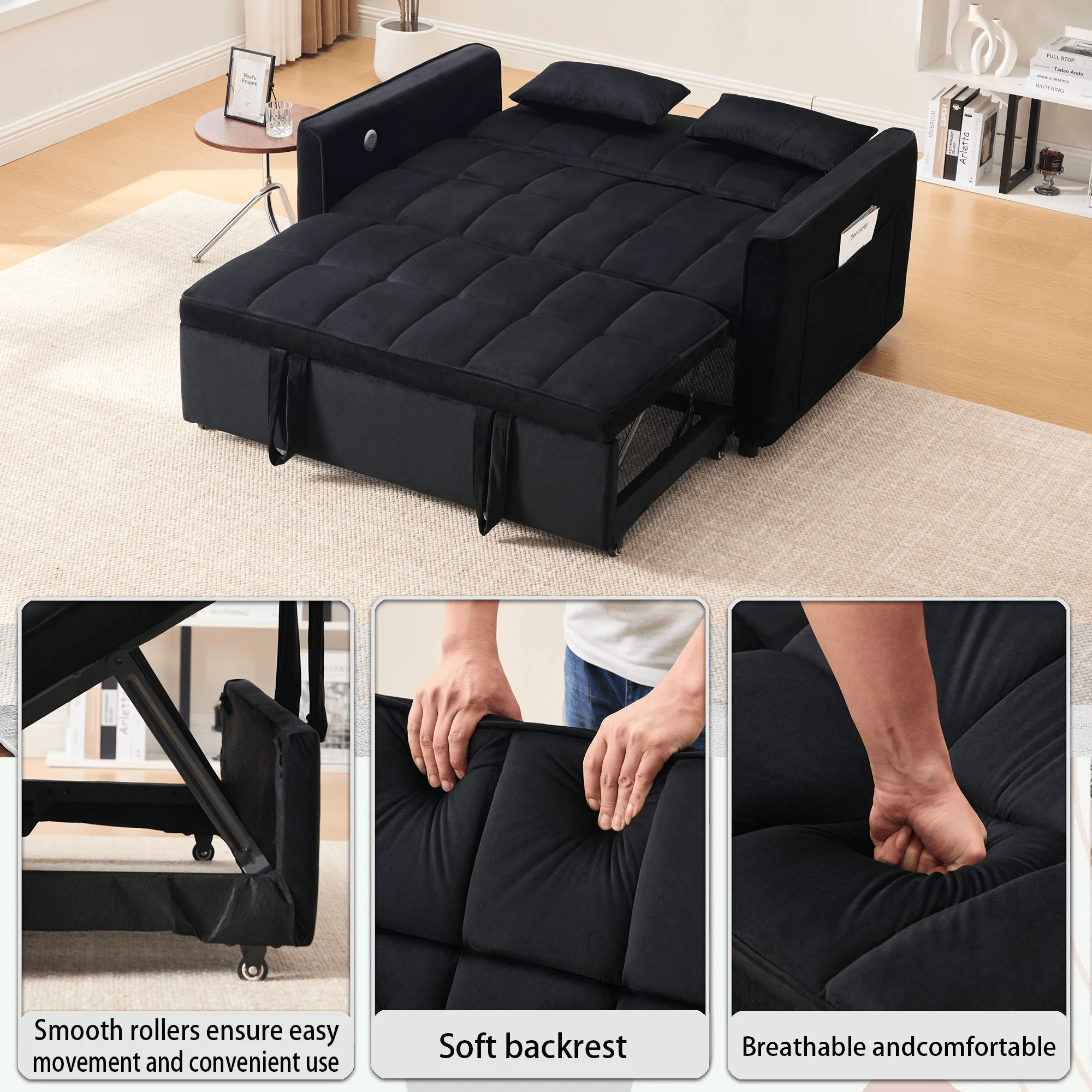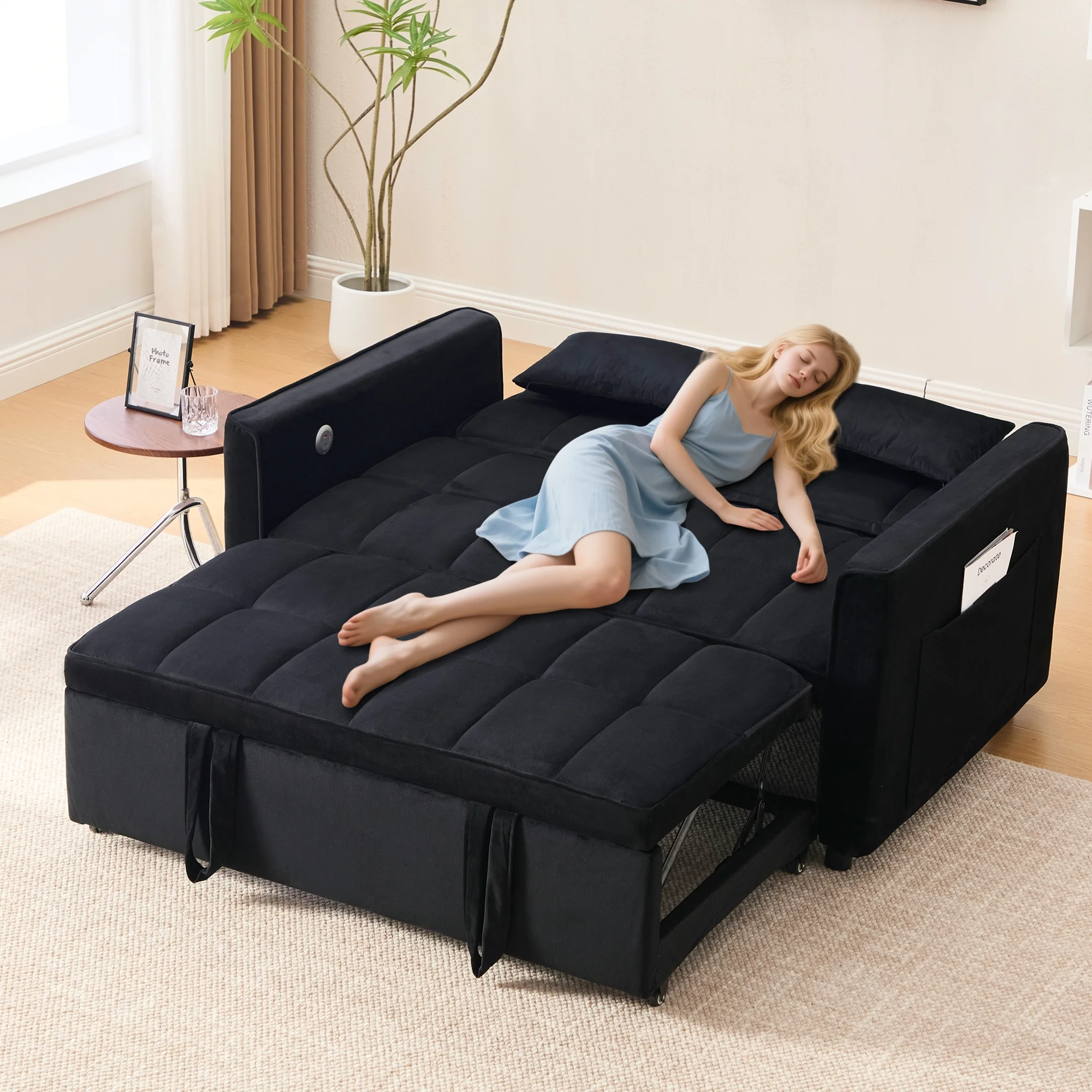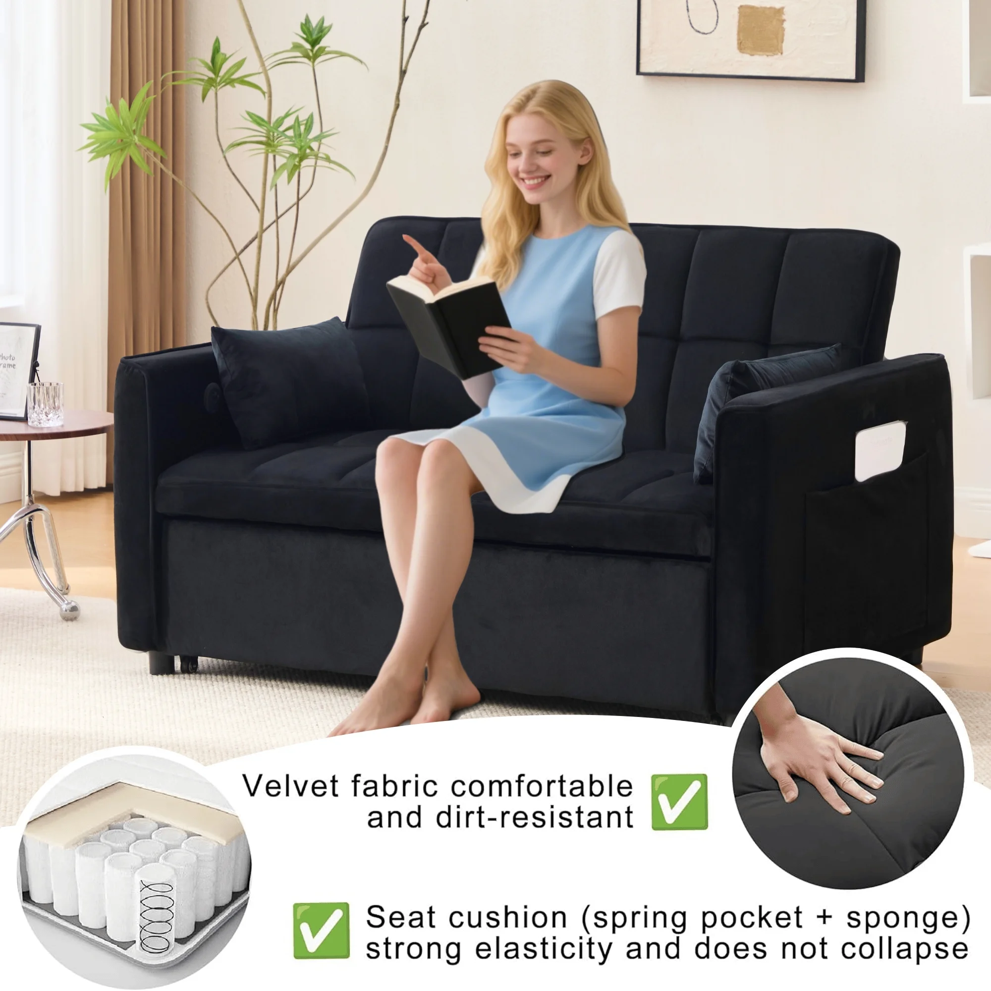 - ��Newly upgraded convertible sofa bed��: Larger in size than the previous model, with added USB and TYPE-C charging port functions.