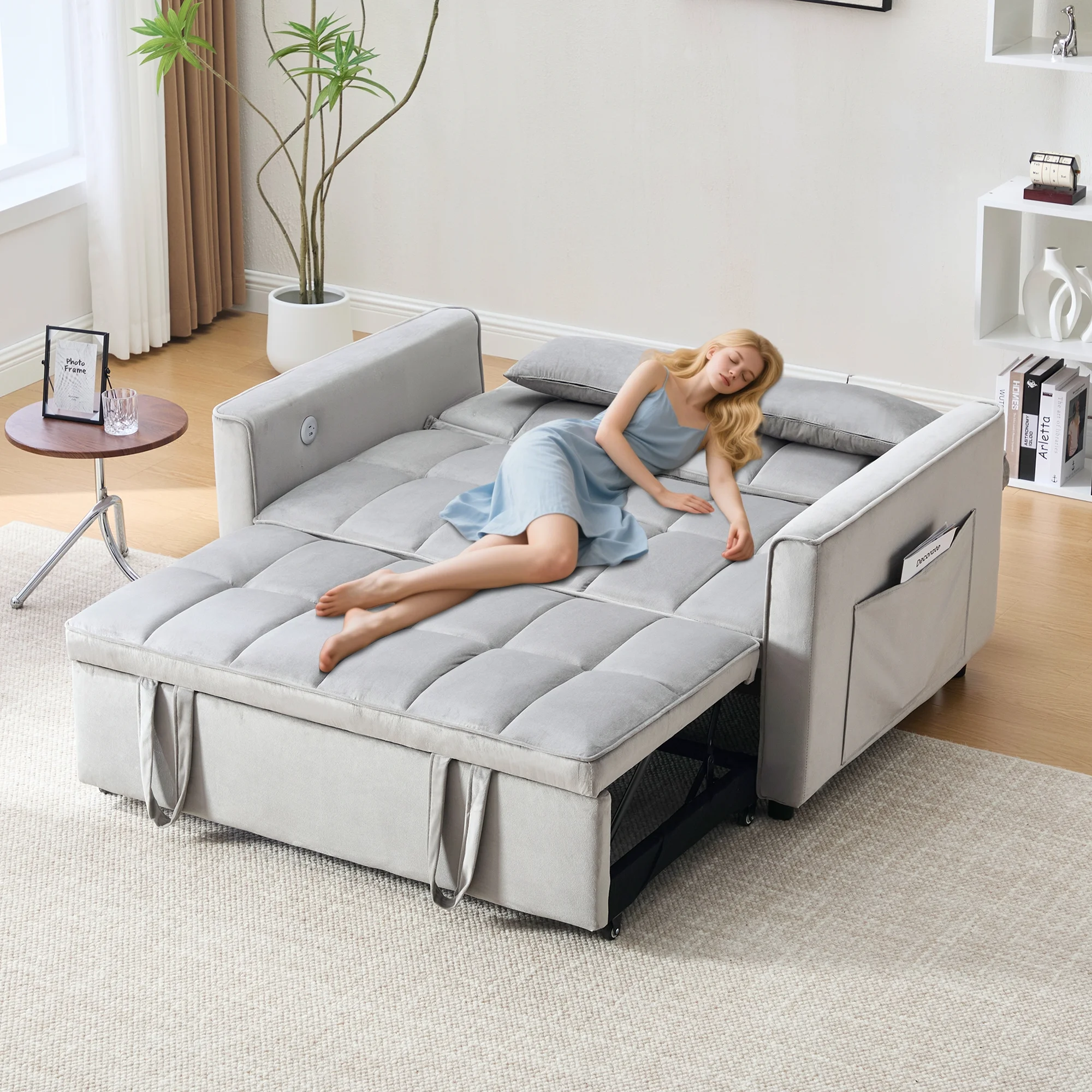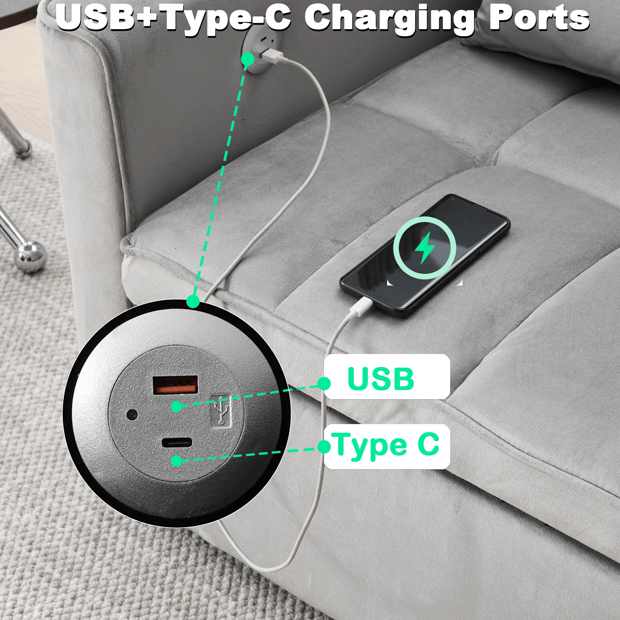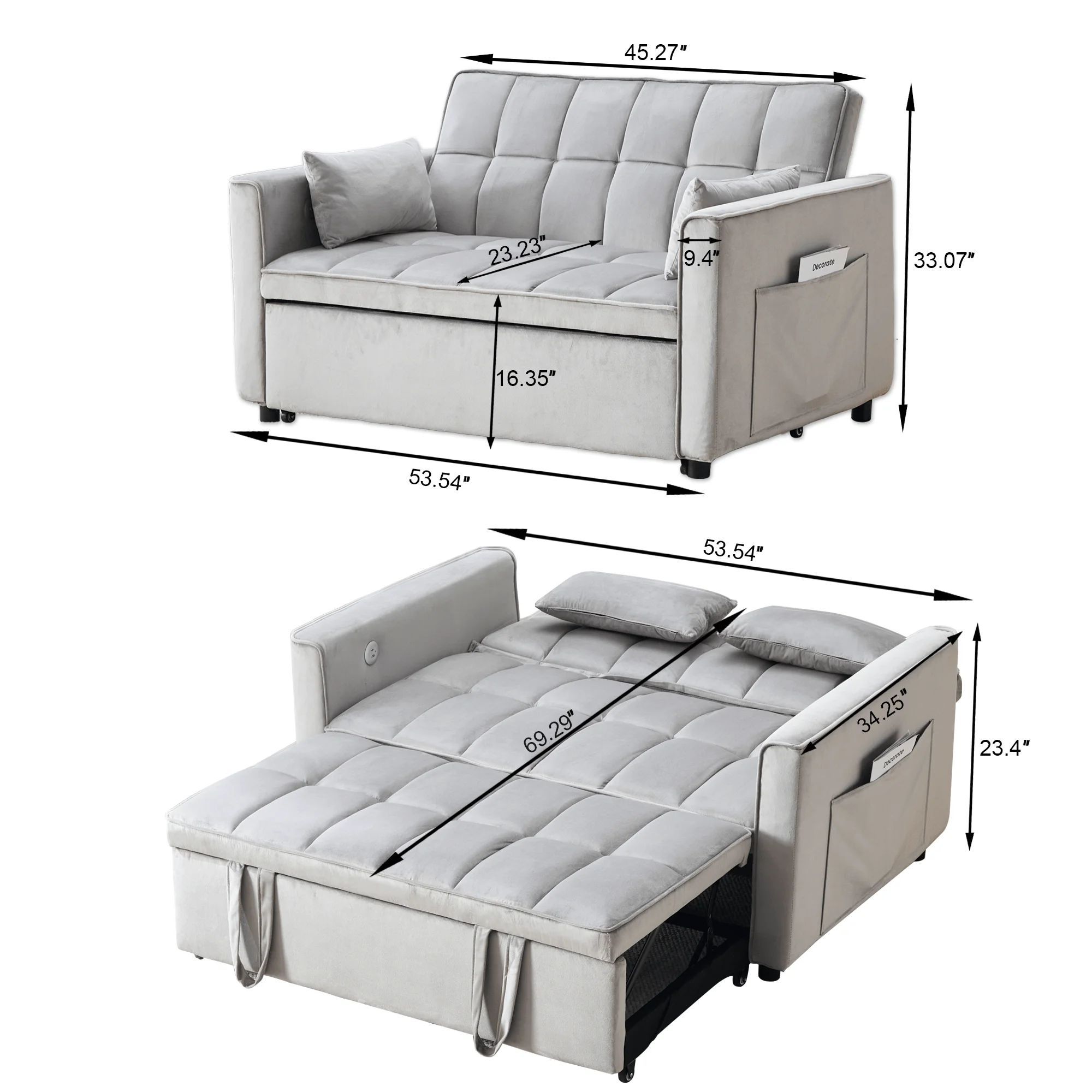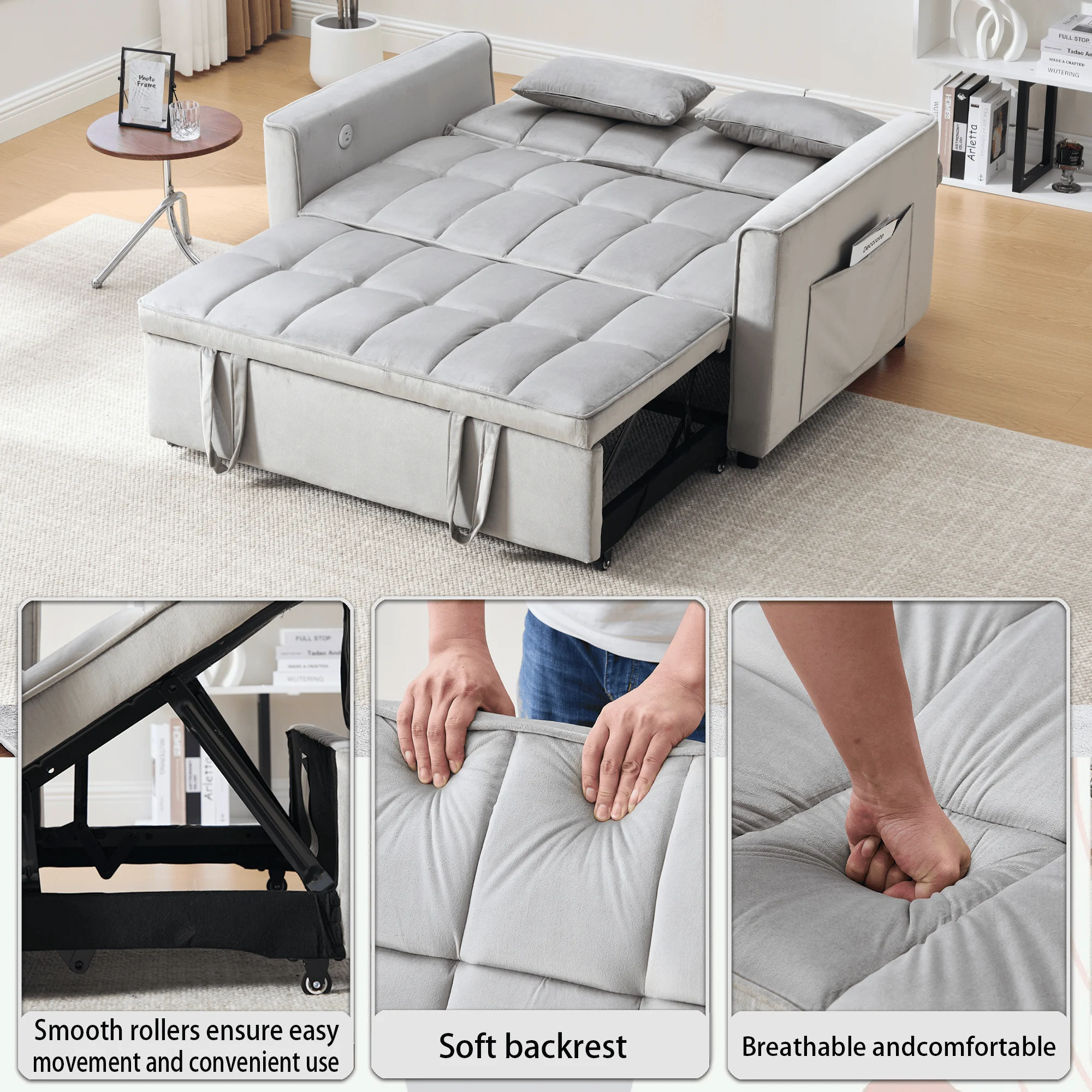 - ��Newly upgraded convertible sofa bed��: Larger in size than the previous model, with added USB and TYPE-C charging port functions.