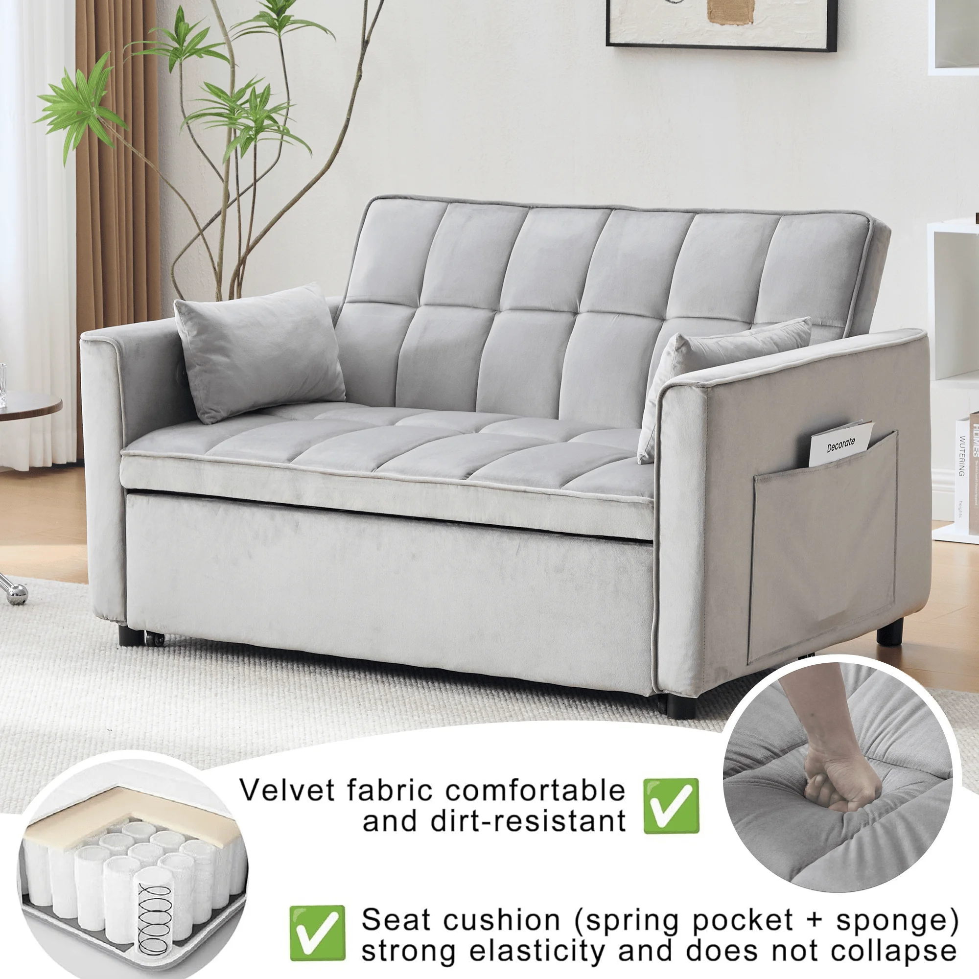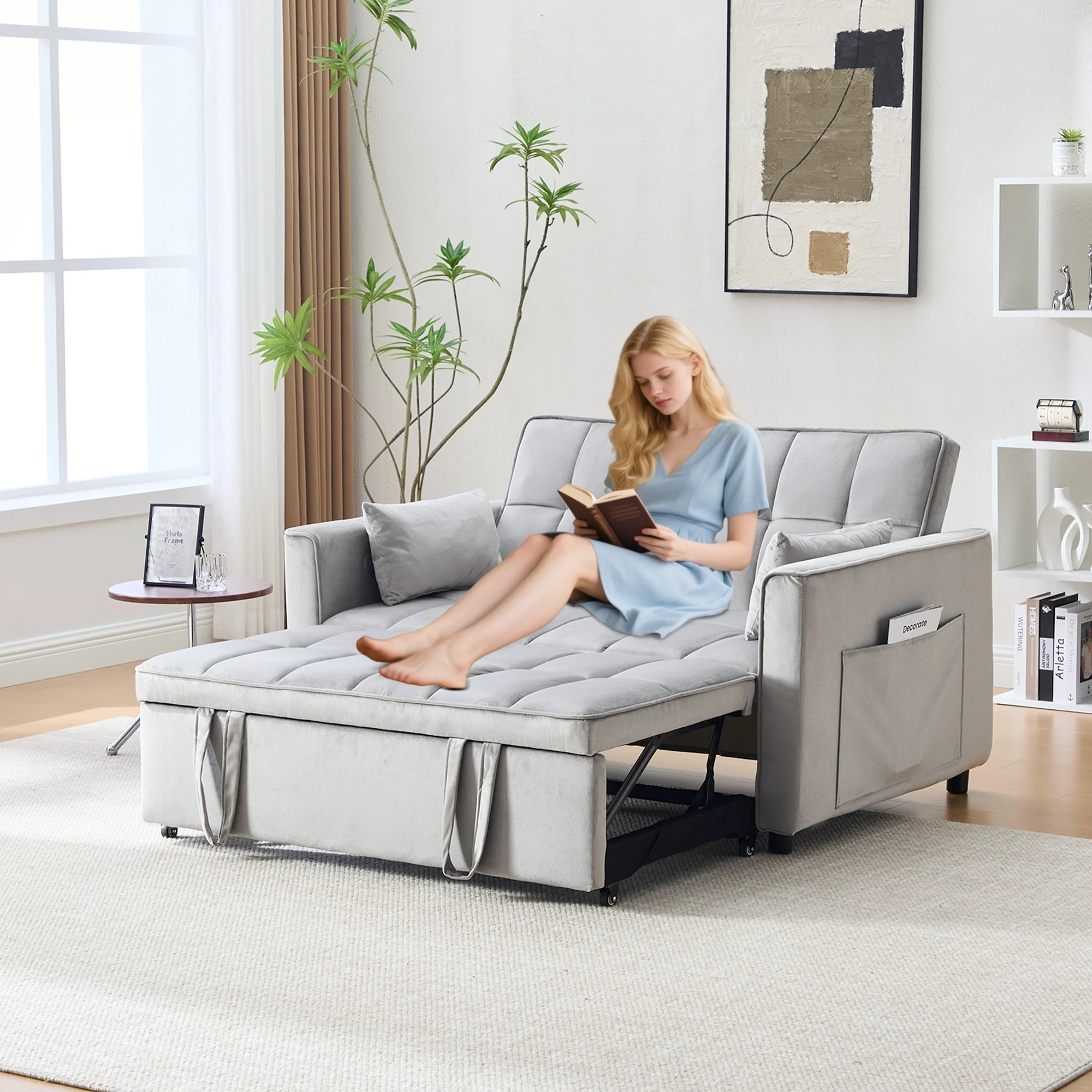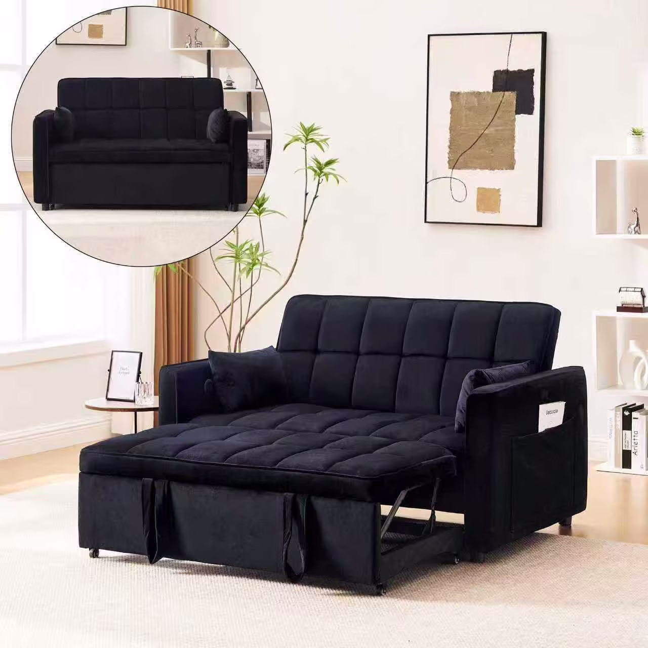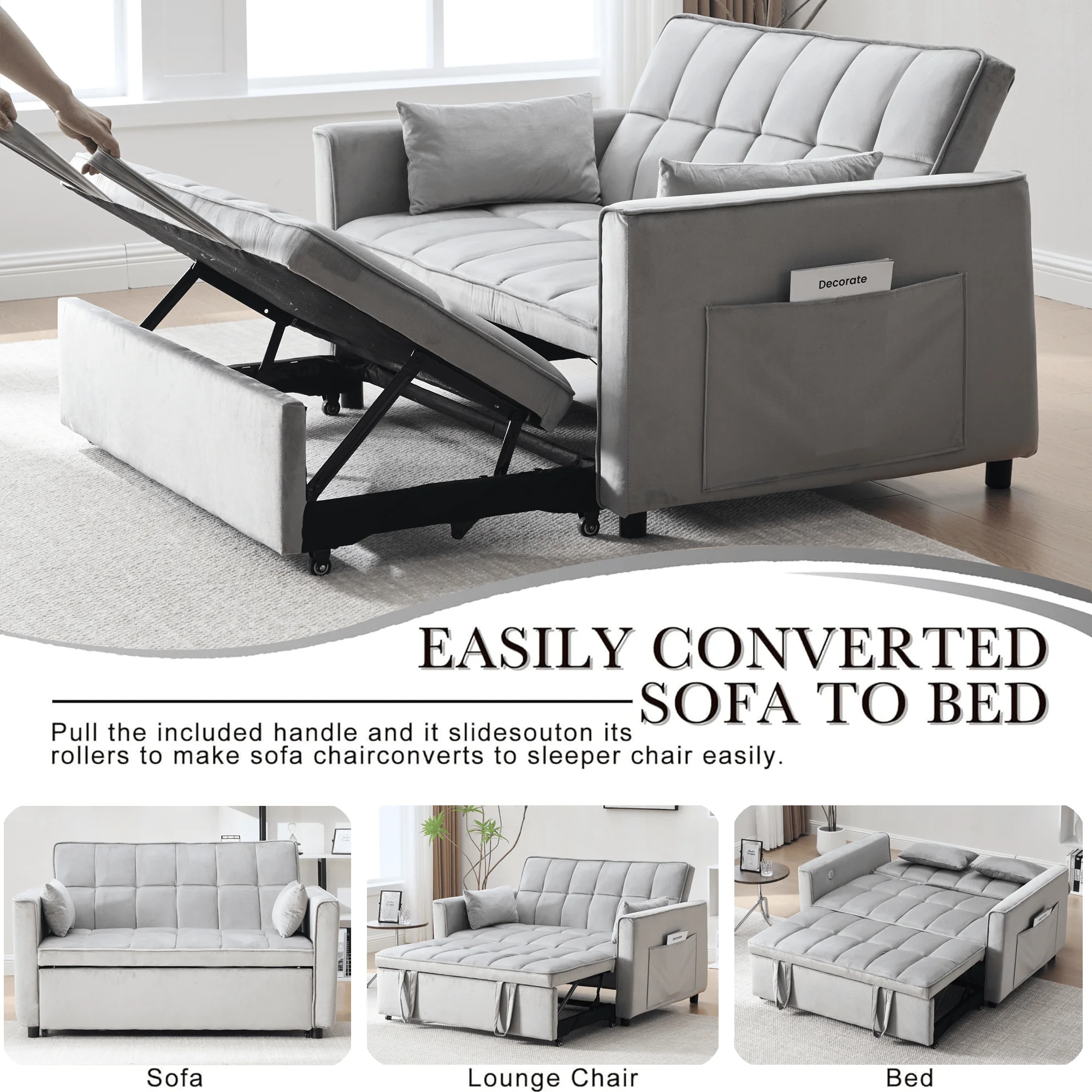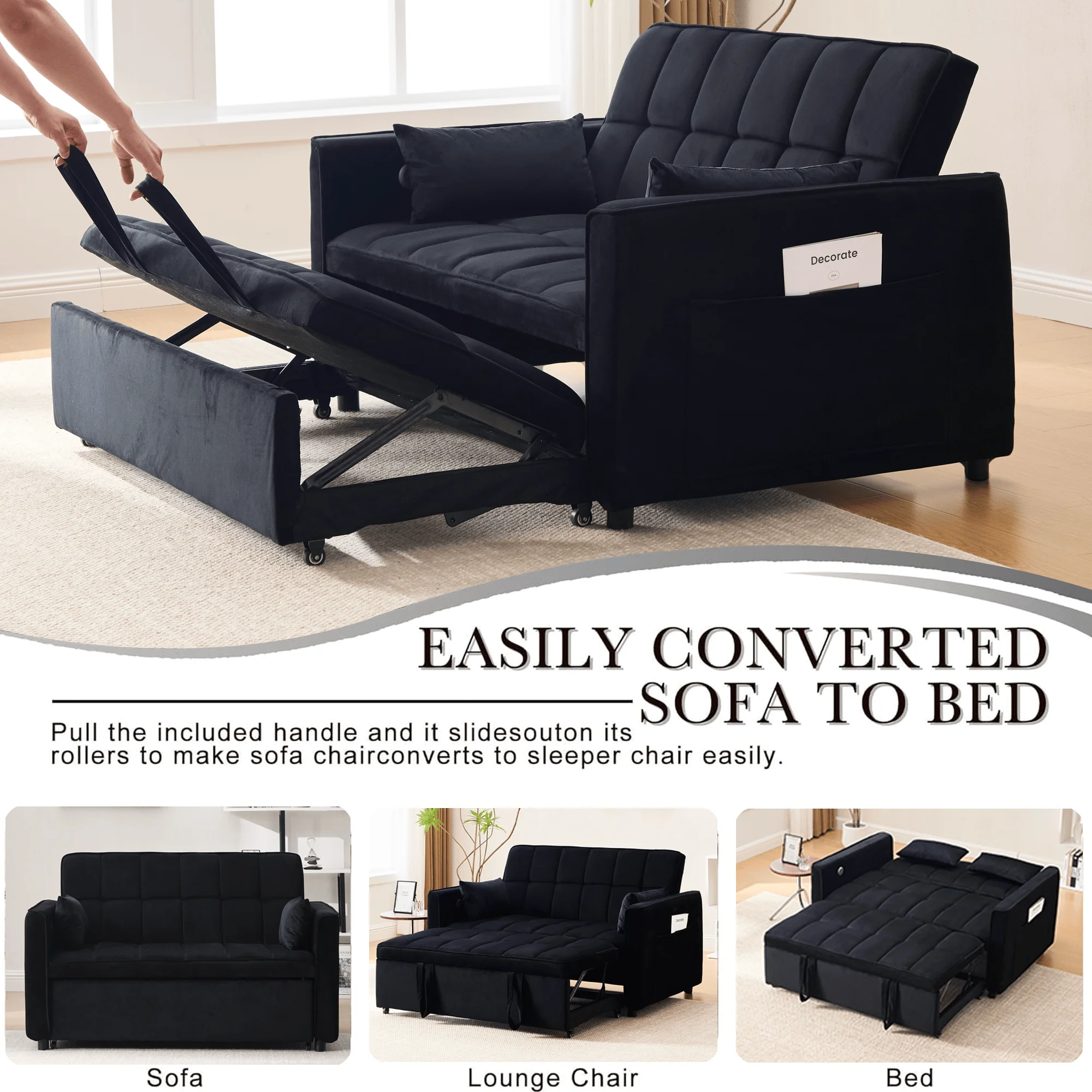 - �� Loveseat Convertible Sofa Bed��:Pull the included handle and it slides out on its rollers to make loveseat sofa converts to sleeper bed easily, No matter what room it is, whether it is a large room or a small room, this is your best choice! The twin-sized sleeper bed can accommodate your overnight guests.
