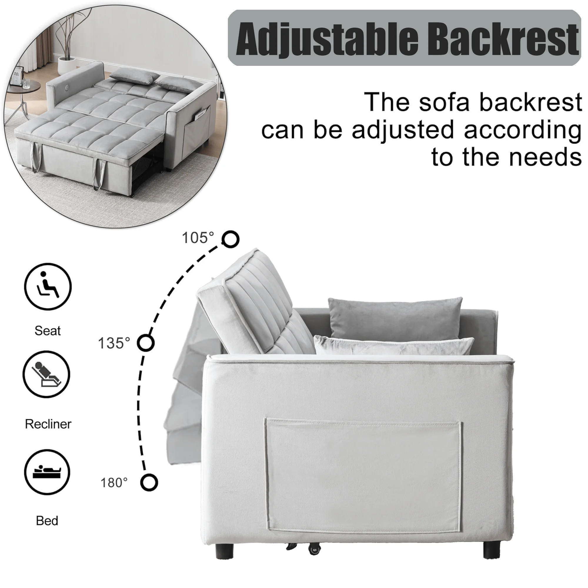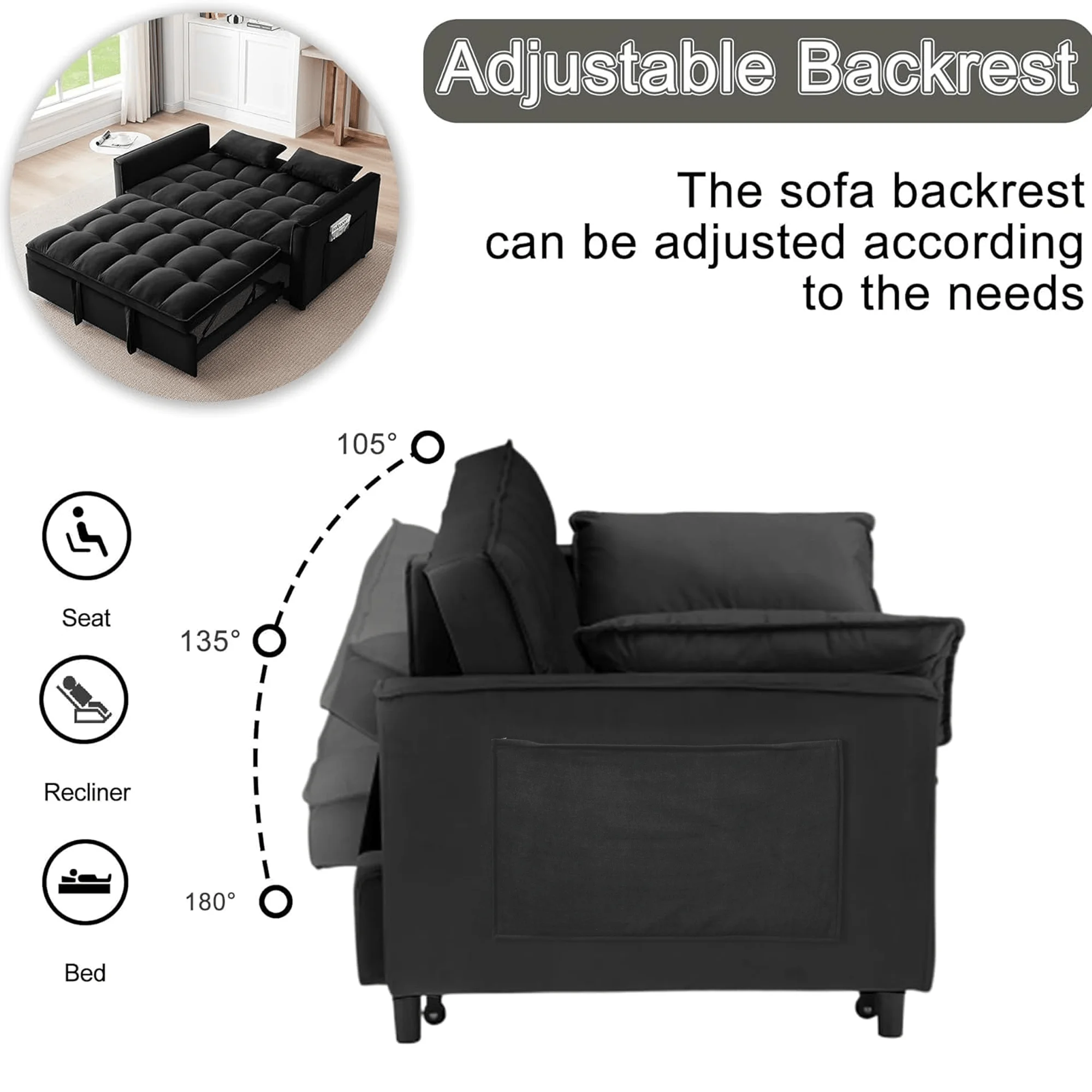 - ��3 Level Asjustable Backrest��:This convertible sofa meets your various needs.So easy to make loveseat converts to bed. Nice to sitting,laying and sleeping,it can be easily converted into chaise lounge or a sleeper bed for small apartment,living room,studio,home office,etc.