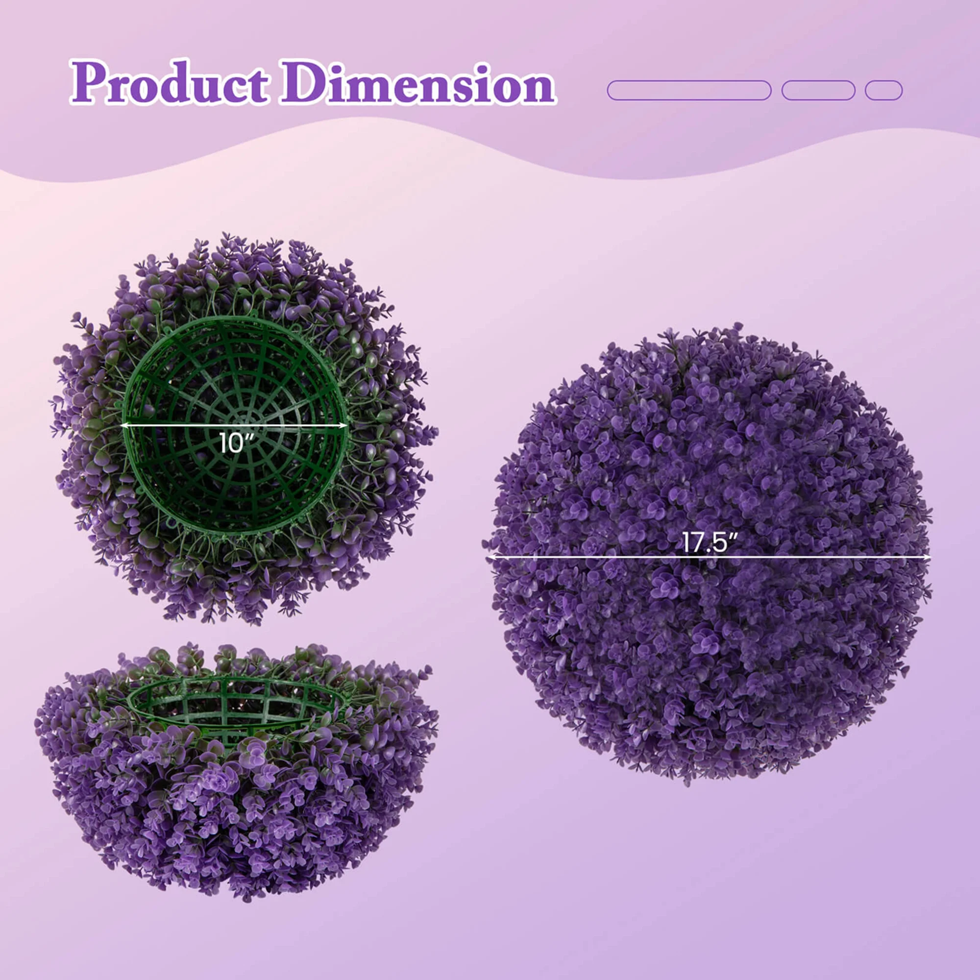 - Lush & Charming Appearance: The 2 pack eucalyptus balls feature 7-layer leaves, presenting a stunningly dense appearance. What��s more, the 17.5" garden sphere with unique purple color will stand out compared to others with dull colors, creating a striking scene wherever it is displayed.