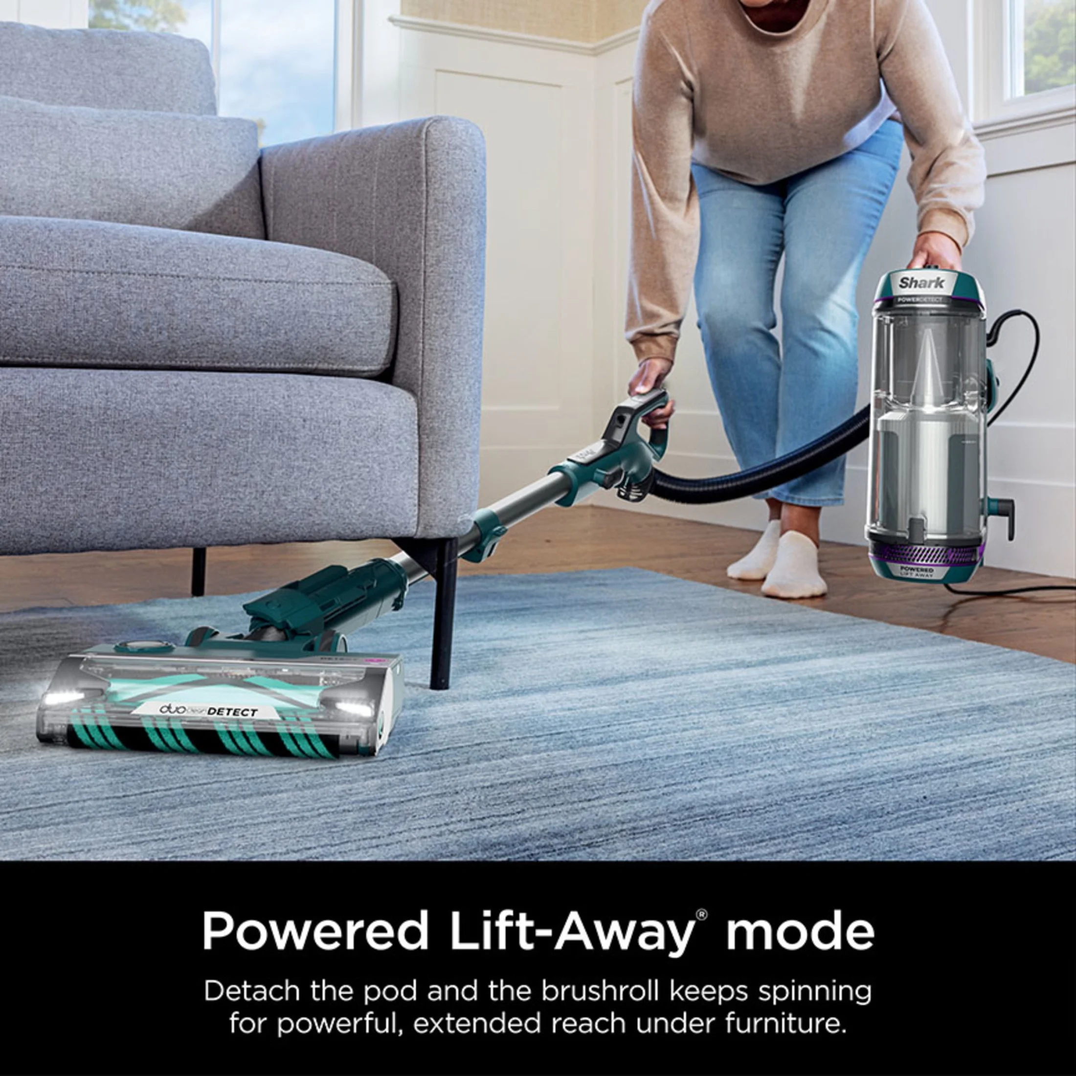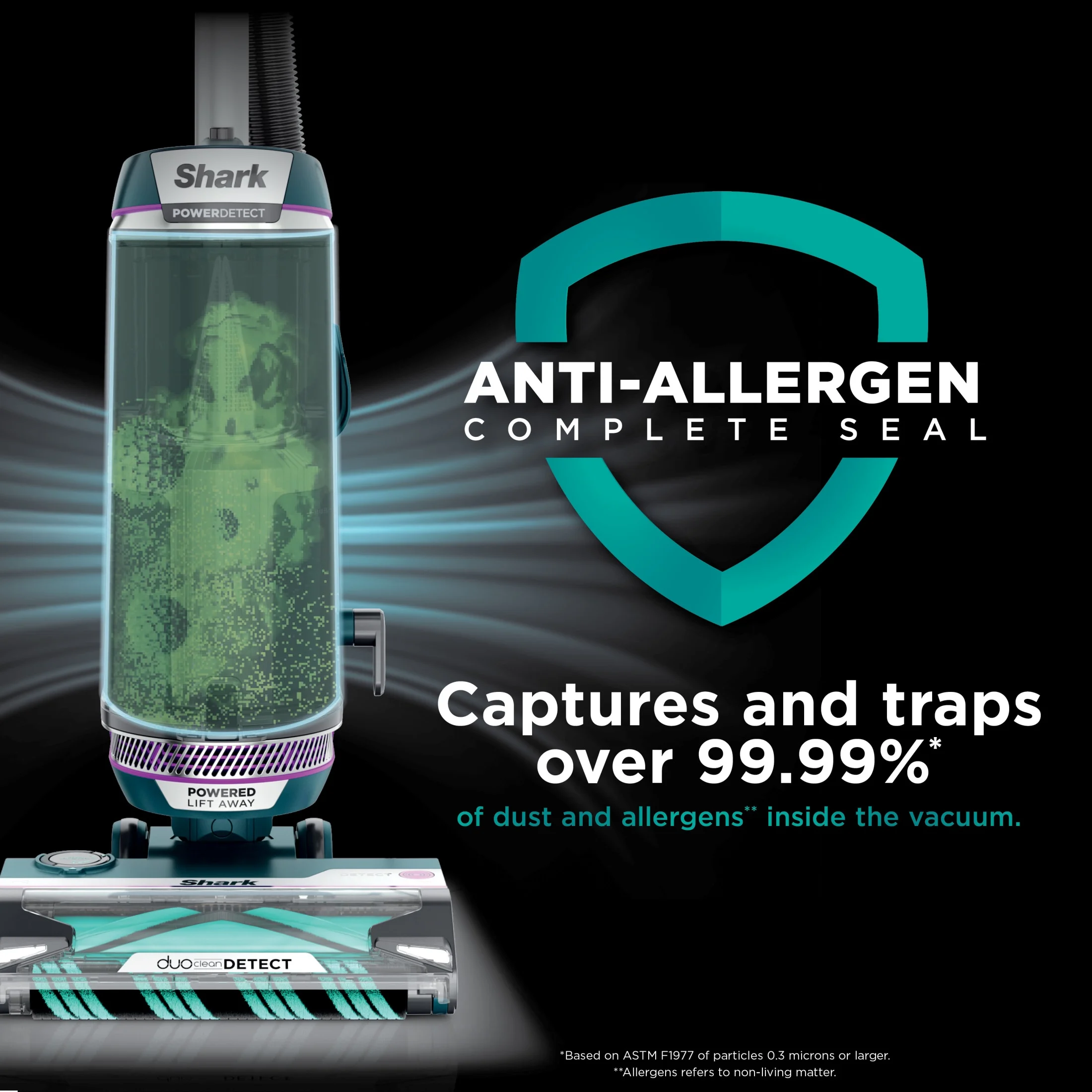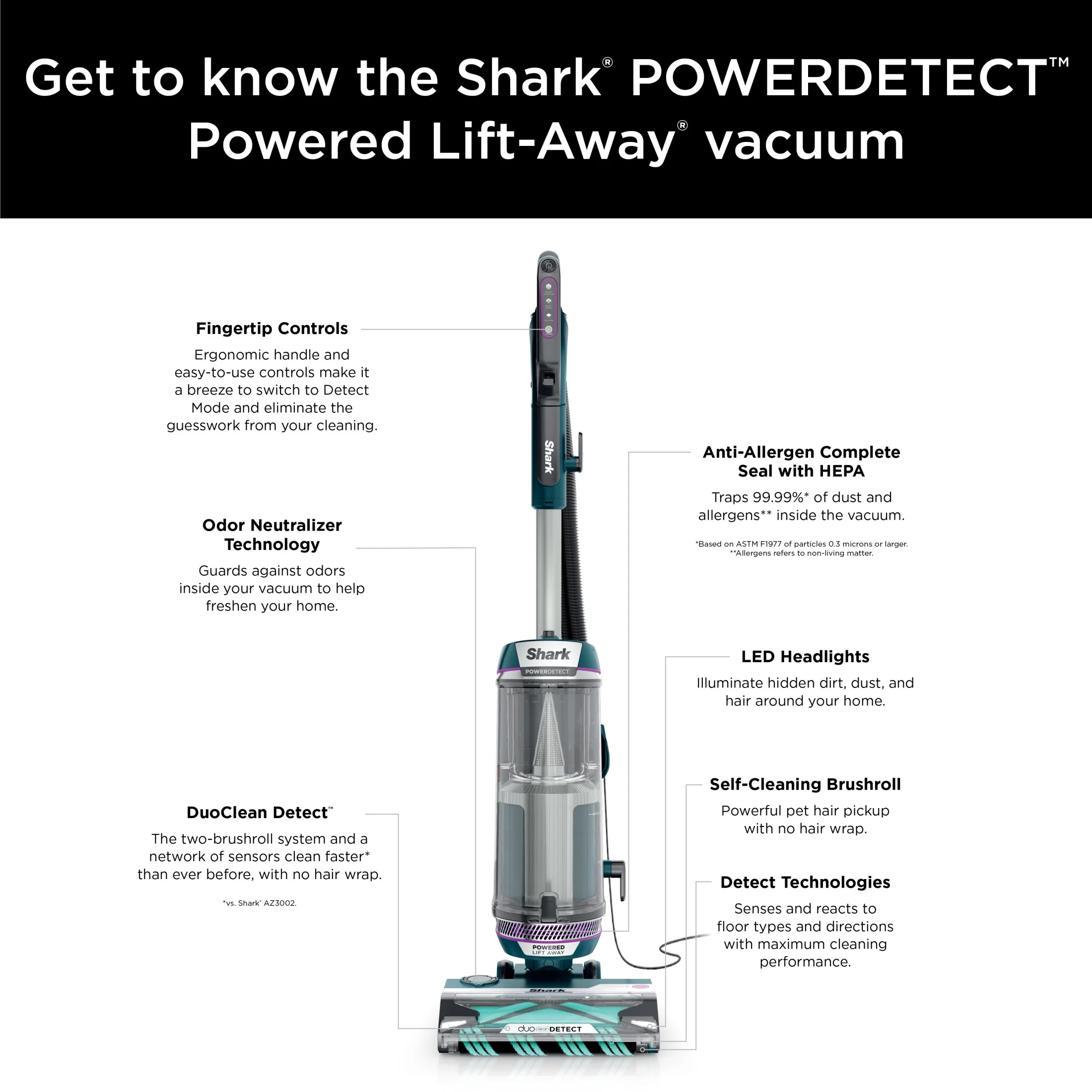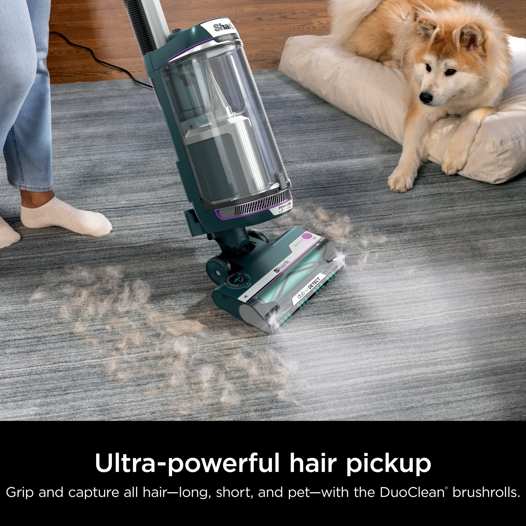 Shark POWERDETECT Upright Vacuum, Pet - Friendly, Two Brushroll System, Powerful Suction, Duoclean Detect, Self - Cleaning Brushroll, Odor Neutralizer, LED Lights, AZ4000 Black/Teal