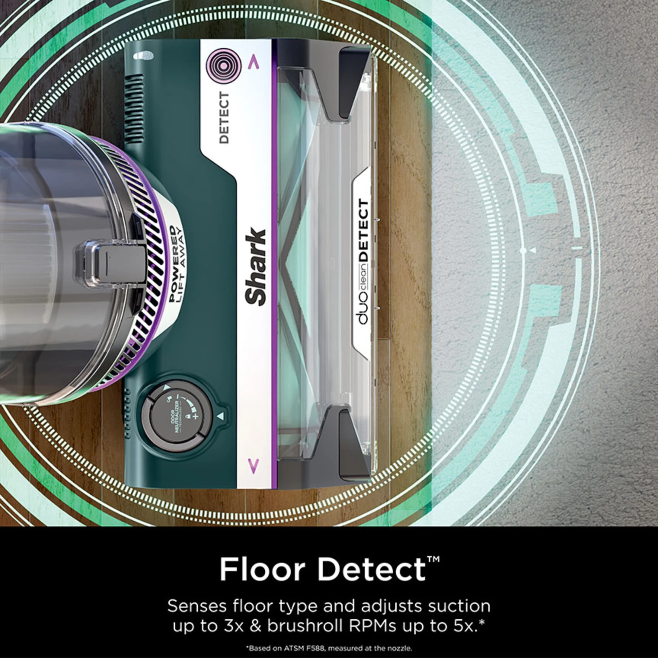 - FLOOR DETECT: The Intelli-Sense ultra-sonic sensor detects what floor type its on, and the POWERDETECT reacts by automatically adapting its suction and brushroll speed, for optimal performance on ALL surfaces