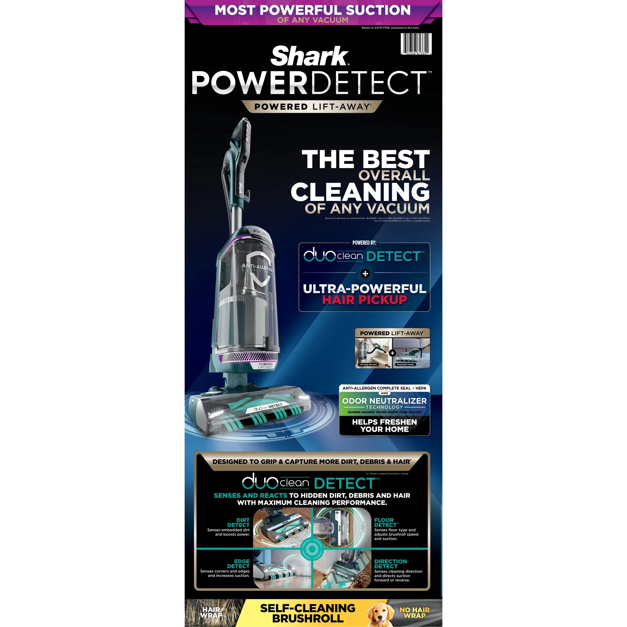 - BEST OVERALL CLEANING OF ANY VACUUM*: Most powerful suction** and most advanced cleaning technology of any vacuum***. *Based on a geomean of combined tests -IEC62885-2 Sec 5.3 FWD, IEC62885-2 Sec 5.3 REV, IEC62885-2 Sec 5.5 FWD, IEC62885 Sec 5.5 REV vs. upright market" **Based on ASTM F558, measured at the hose. ***Based on the number of features that autonomously alter cleaning performance.