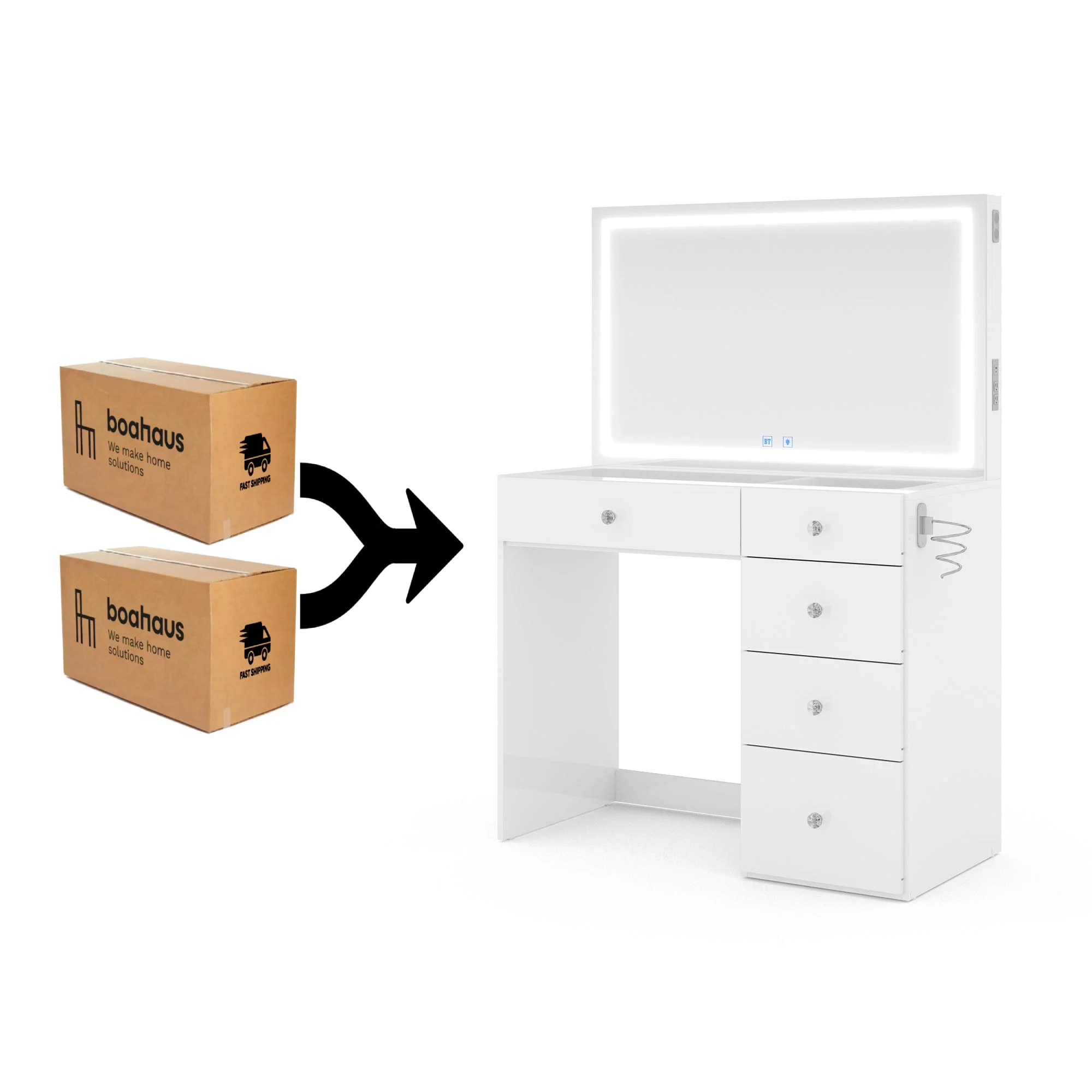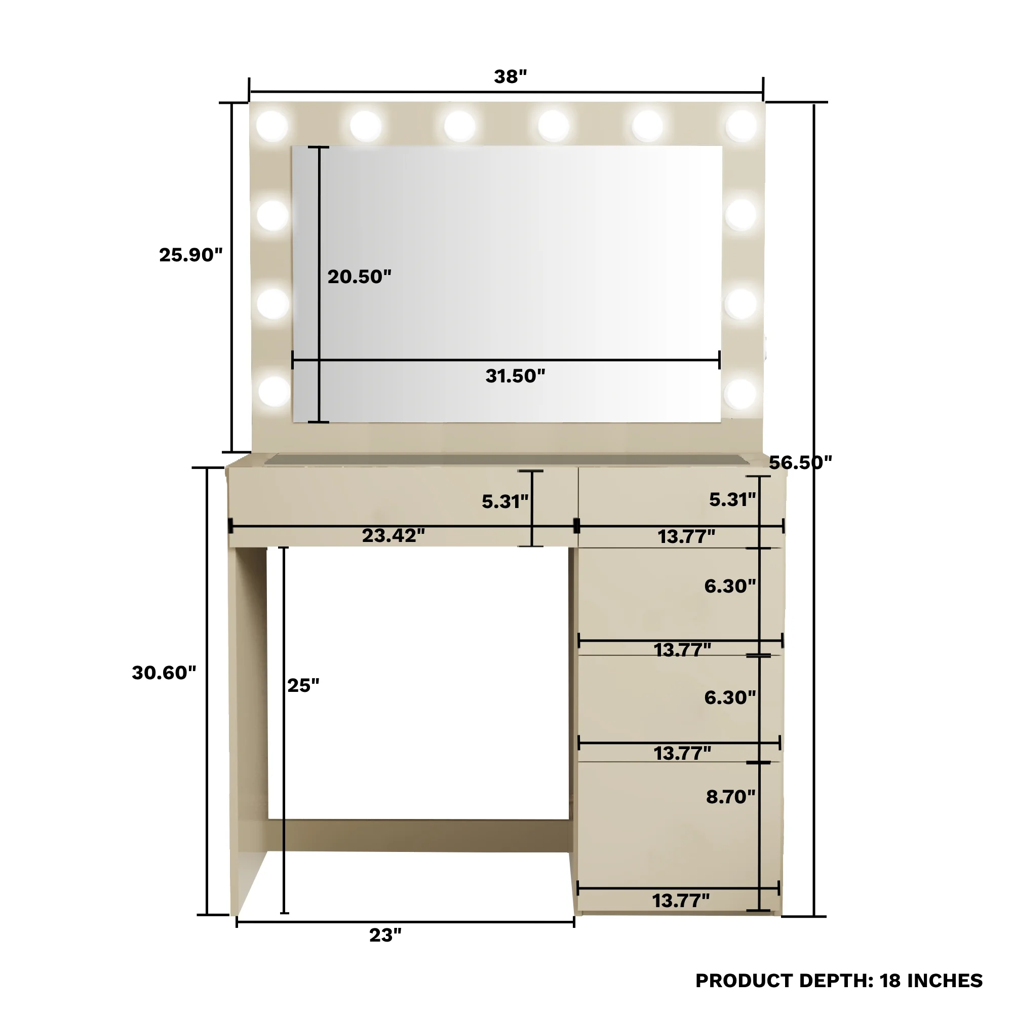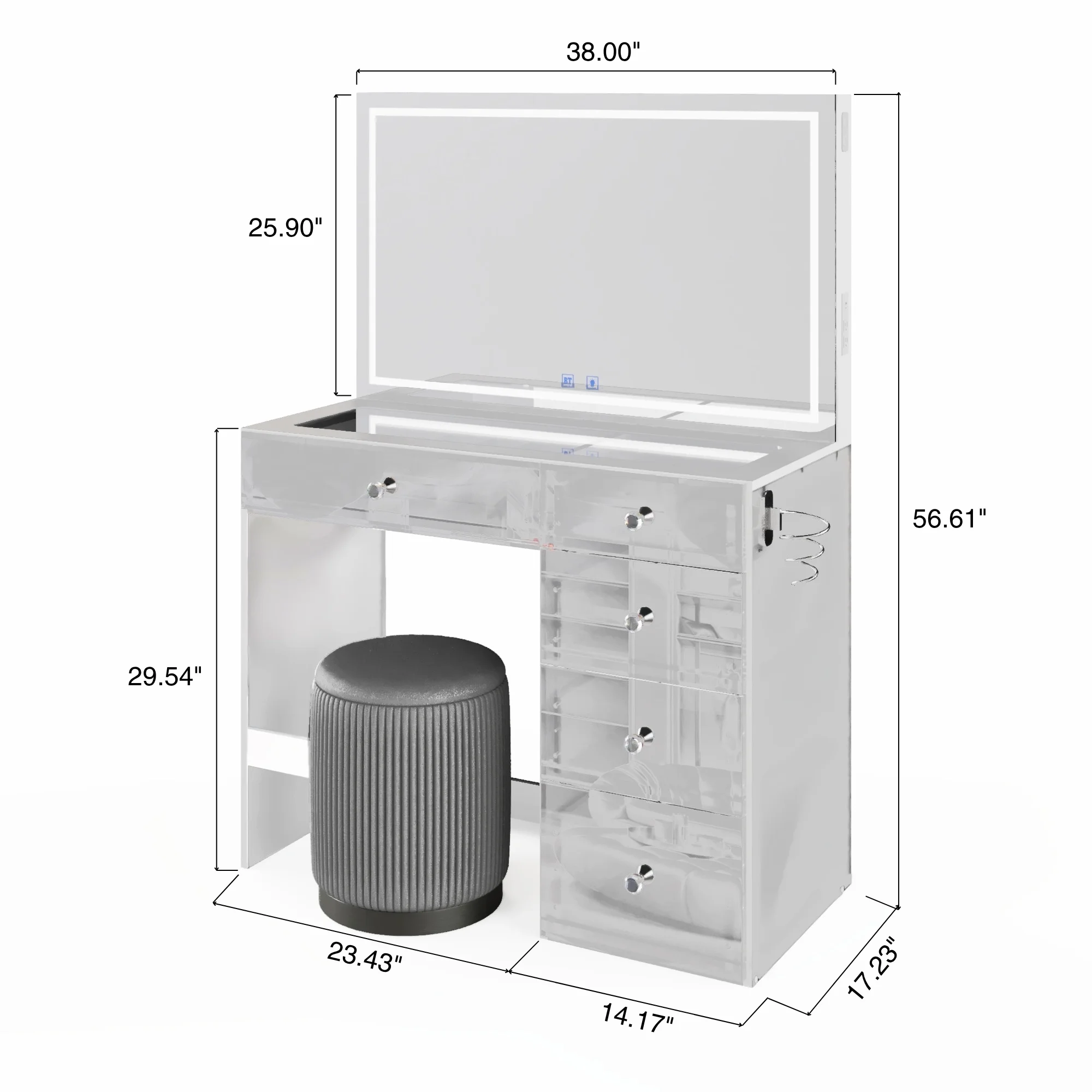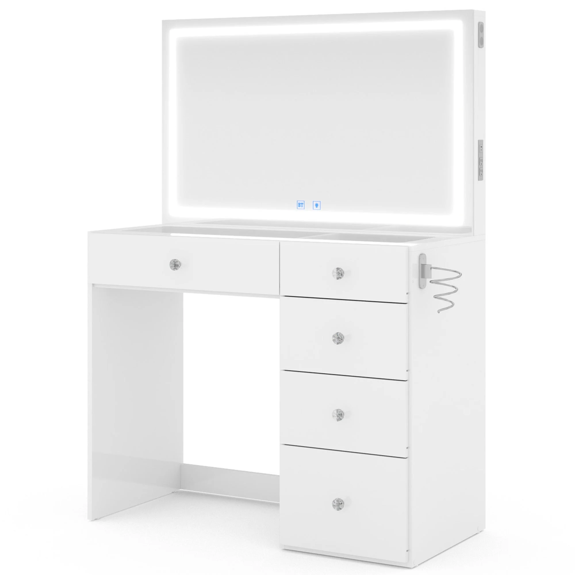 - 5 spacious drawers keep makeup, cosmetics, and tools organized