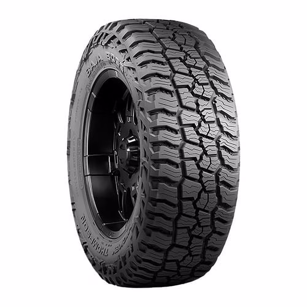 The Mickey Thompson Baja Boss A/T is the ultimate all-terrain tire, delivering top-tier performance on and off the road. Engineered for SUVs, light trucks, and Jeeps, this aggressive yet refined tire features an asymmetrical tread design for superior handling, reduced road noise, and exceptional all-weather traction. Its silica-reinforced compound enhances wet grip, braking performance, and resistance to cuts and chips, while the PowerPly XD construction provides added puncture resistance, improved handling, and quicker steering response.