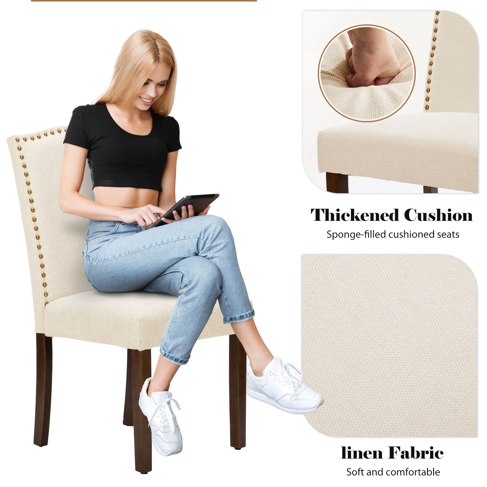 ��Excellent Armless Side Chair��Our Dining room chairs have soft padded cushion seats covered in linen fabric which is breathable and comfortable, and easy to clean. Thick sponge filling of the backrest of the seat offers a comfortable sitting experience.